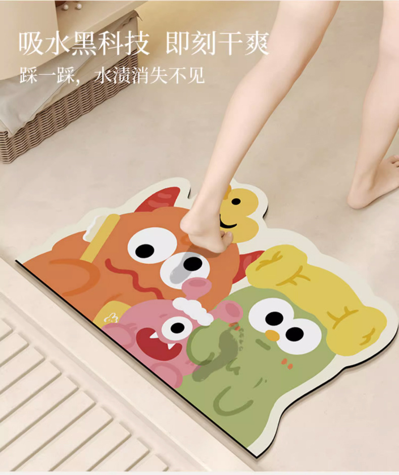 만화 괴물 규조류 진흙 욕실 특수 모양의 바닥 매트 화장실 흡수성 매트 화장실 문 미끄럼 방지 발 매트스토어 가기