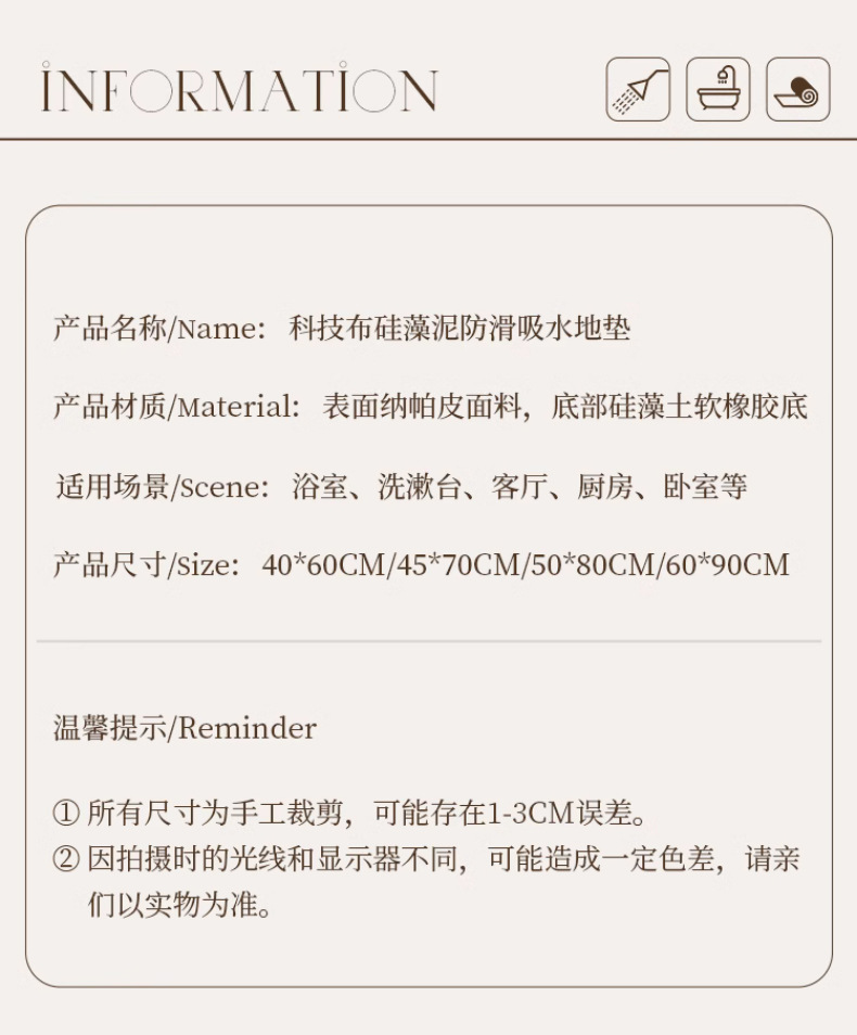 • 60*90cm (규조진흙 흡수성, 미끄럼 방지)