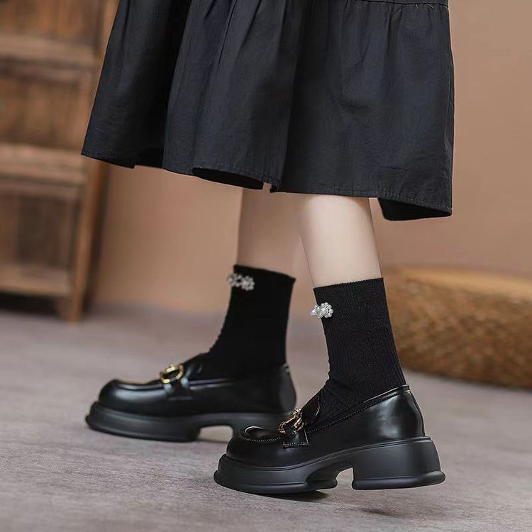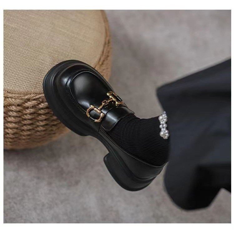 2024 년 가을을위한 사각 굽 영국 스타일의 가죽 신발 jk 신발 두꺼운 밑창 로퍼 원스텝 여성용 신발스토어 가기