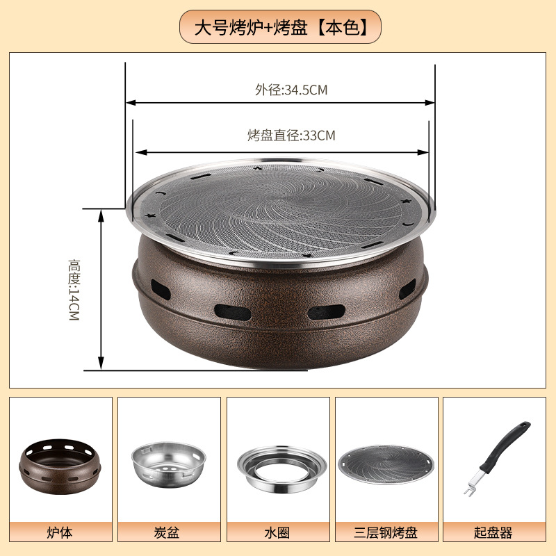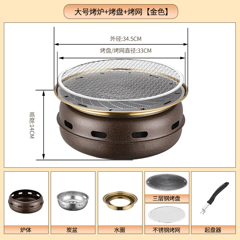 • 35cm 레드 브론즈 워터 링 스토브 + 3층 스틸 베이킹 팬 + 그릴 그리드