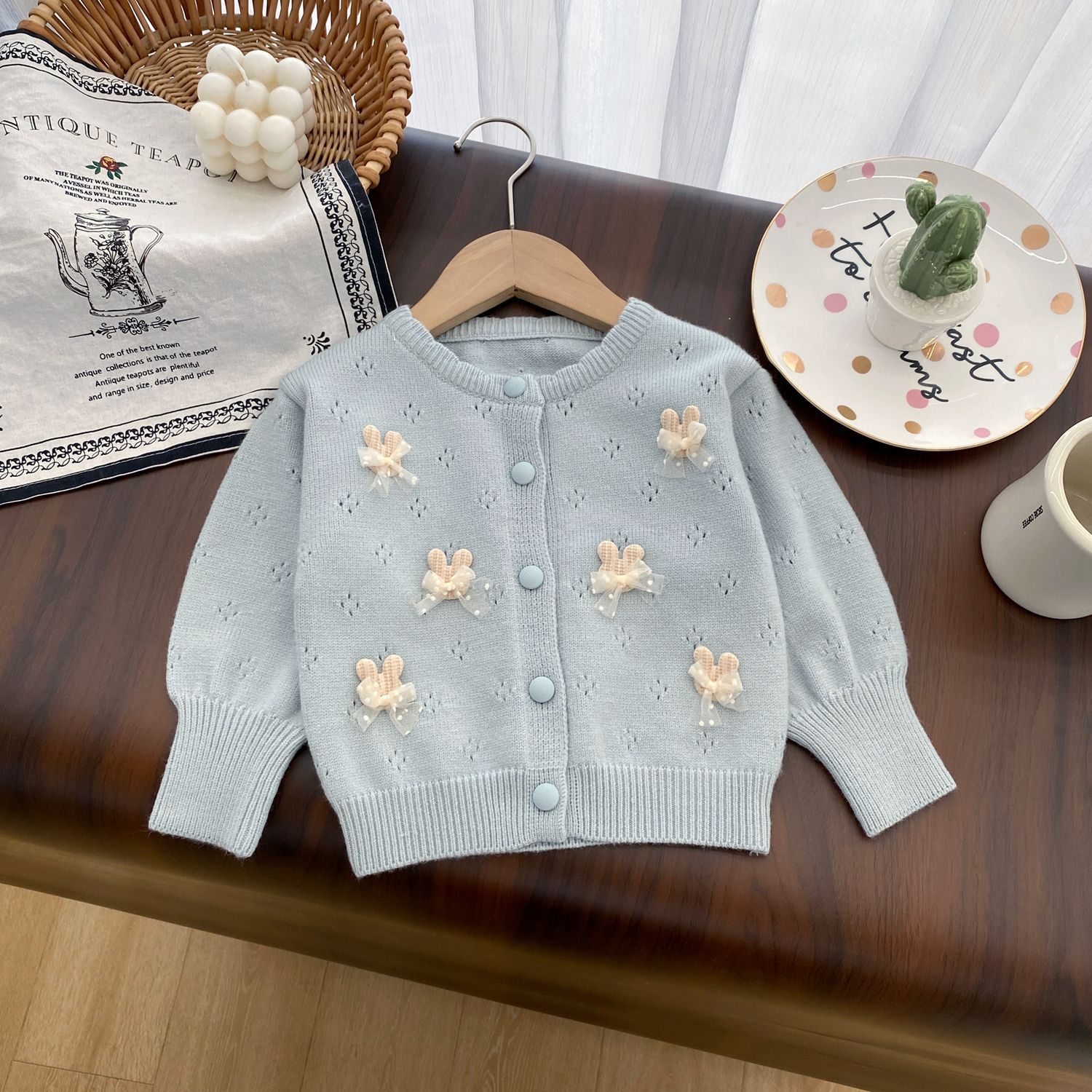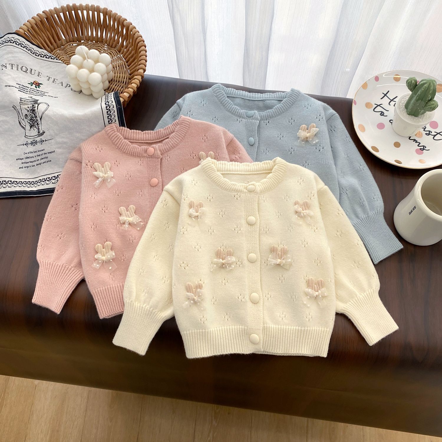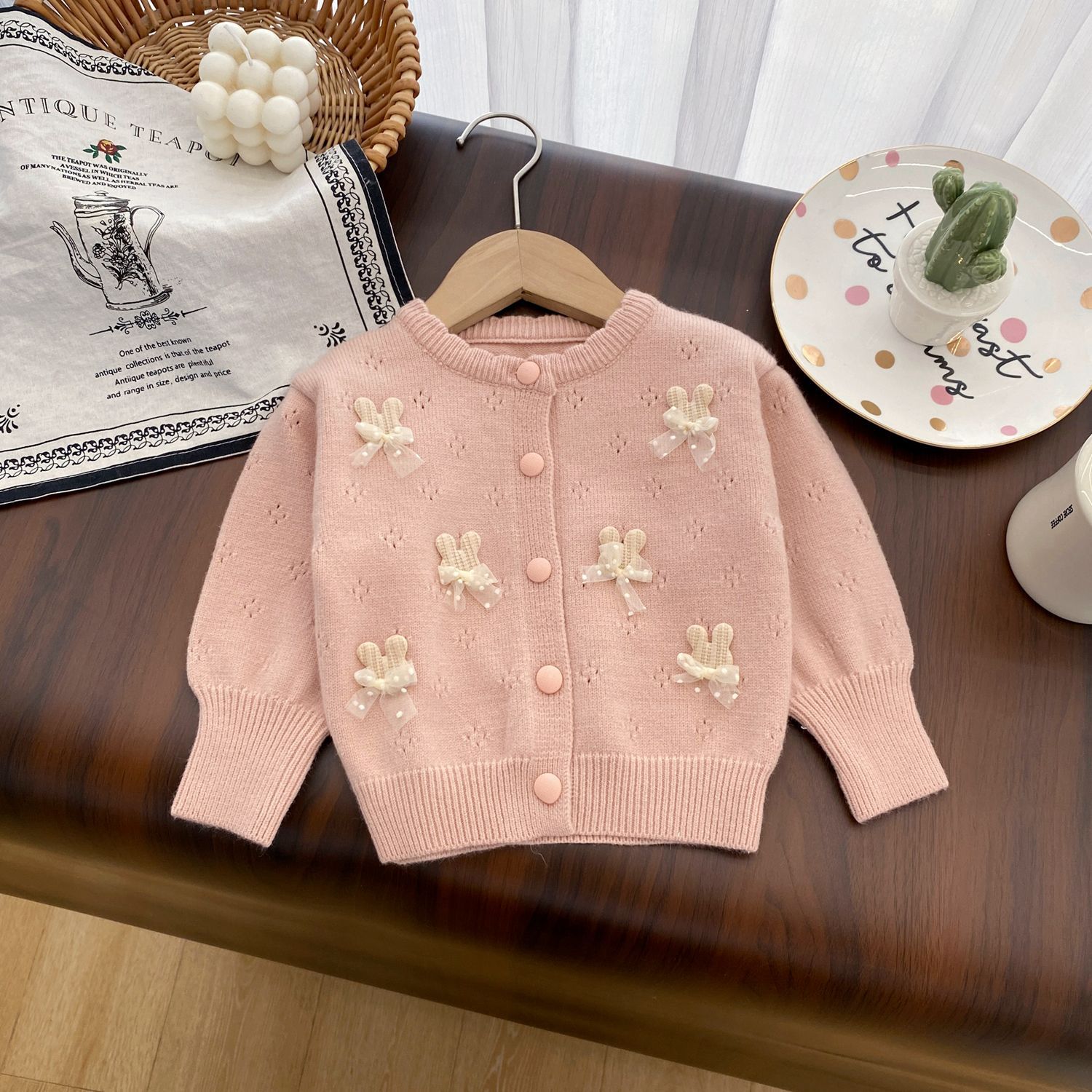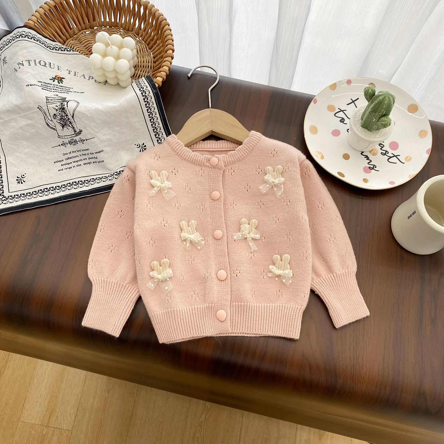 여자 스웨터 조끼 2024 새로운 스타일 오픈 러브 활 토끼 어린이 니트 카디건 베이비 걸스 스웨터 코트