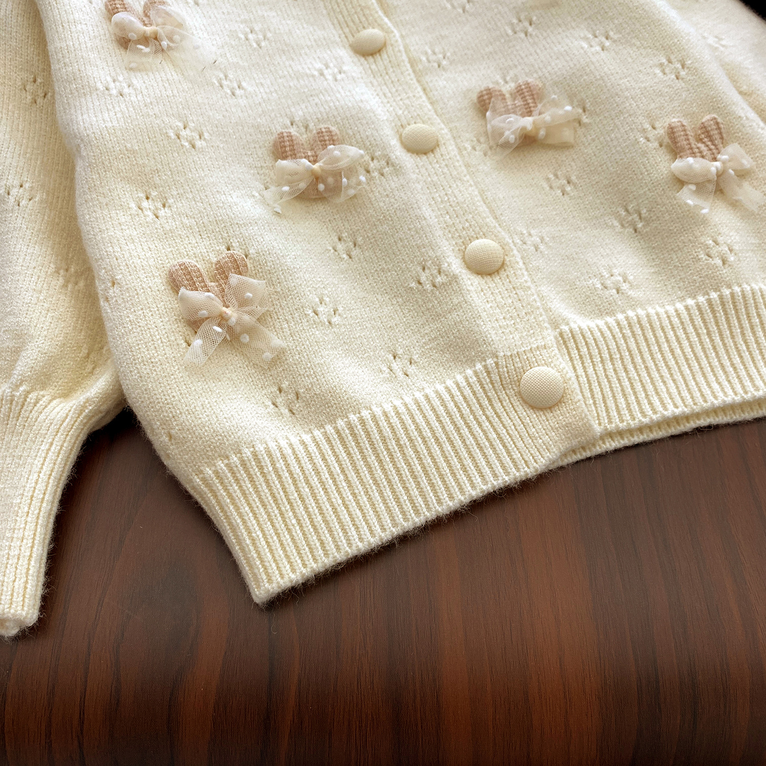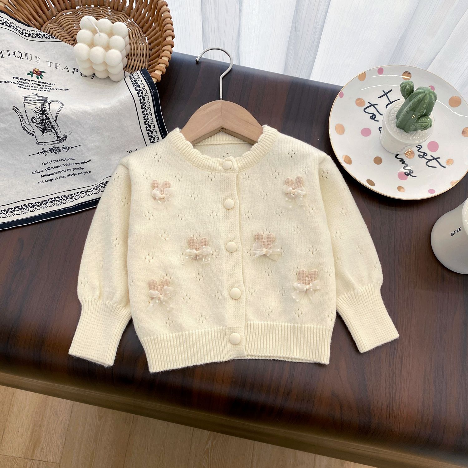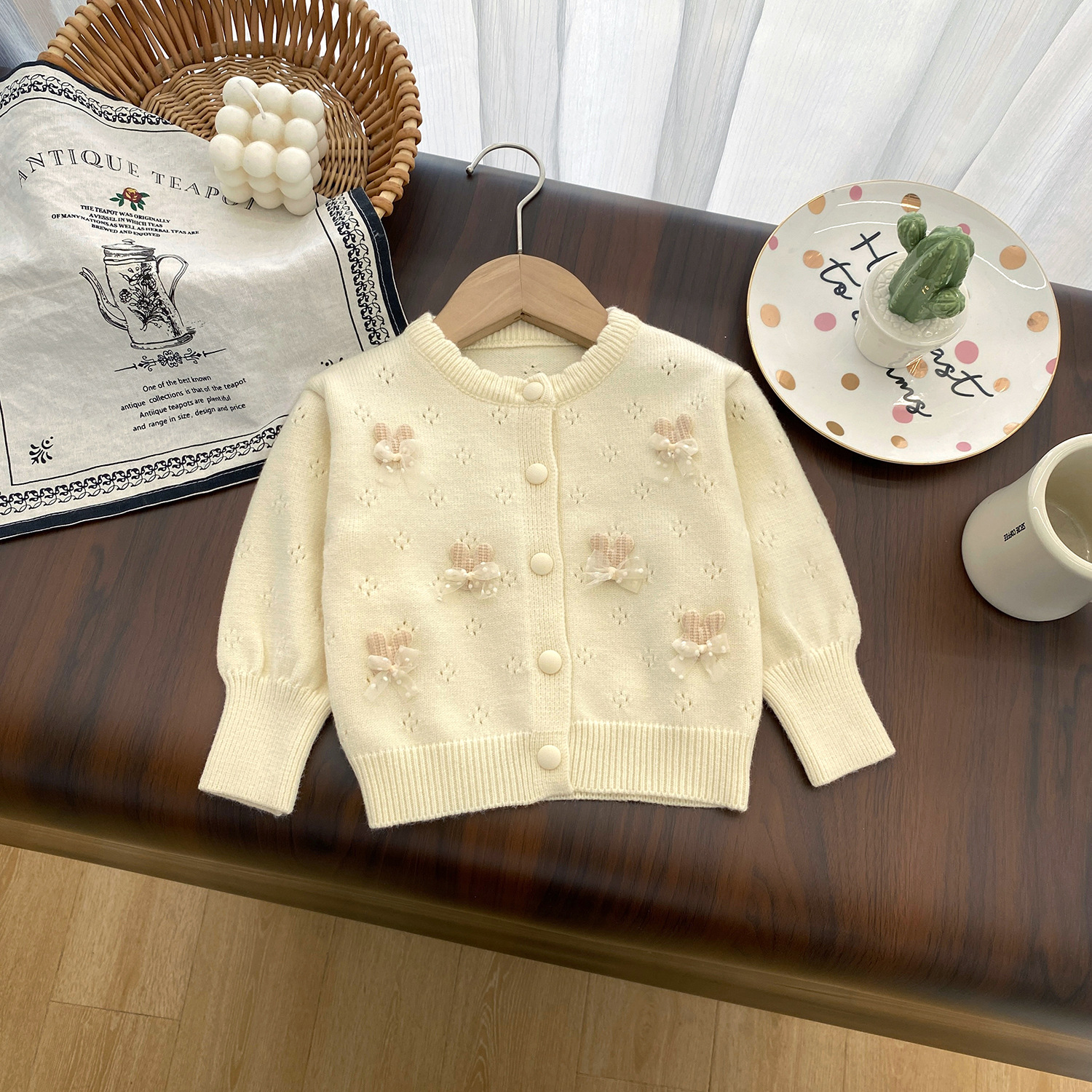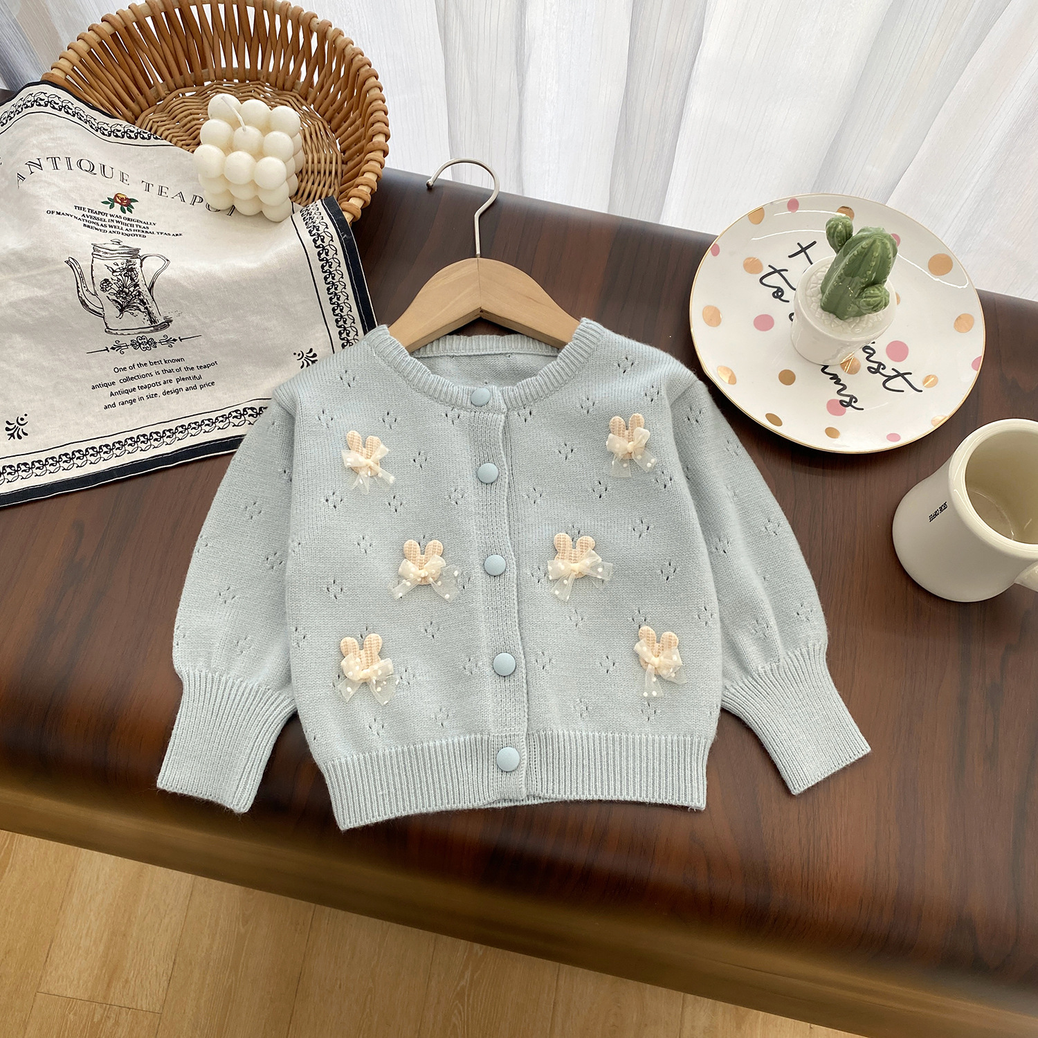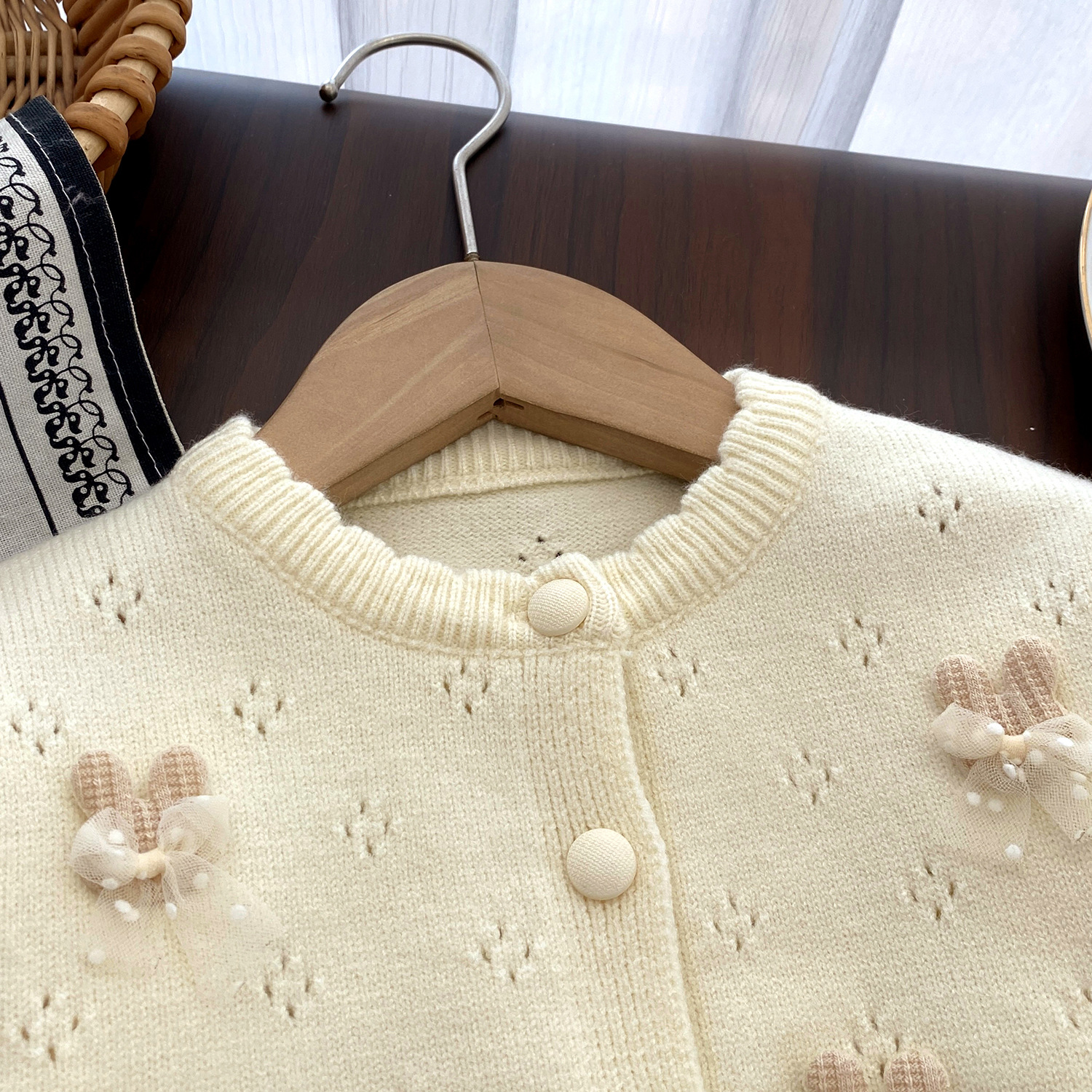 여자 스웨터 조끼 2024 새로운 스타일 오픈 러브 활 토끼 어린이 니트 카디건 베이비 걸스 스웨터 코트
