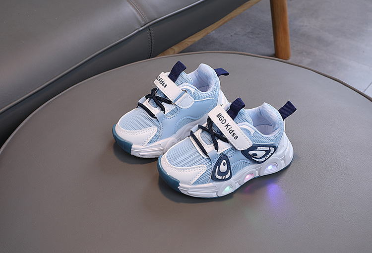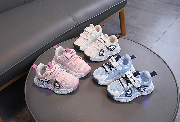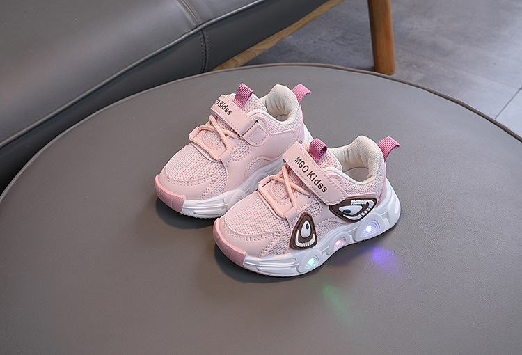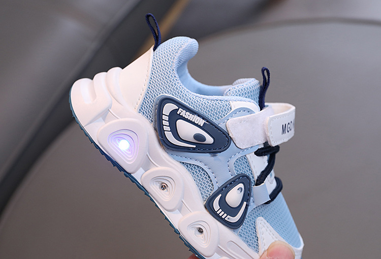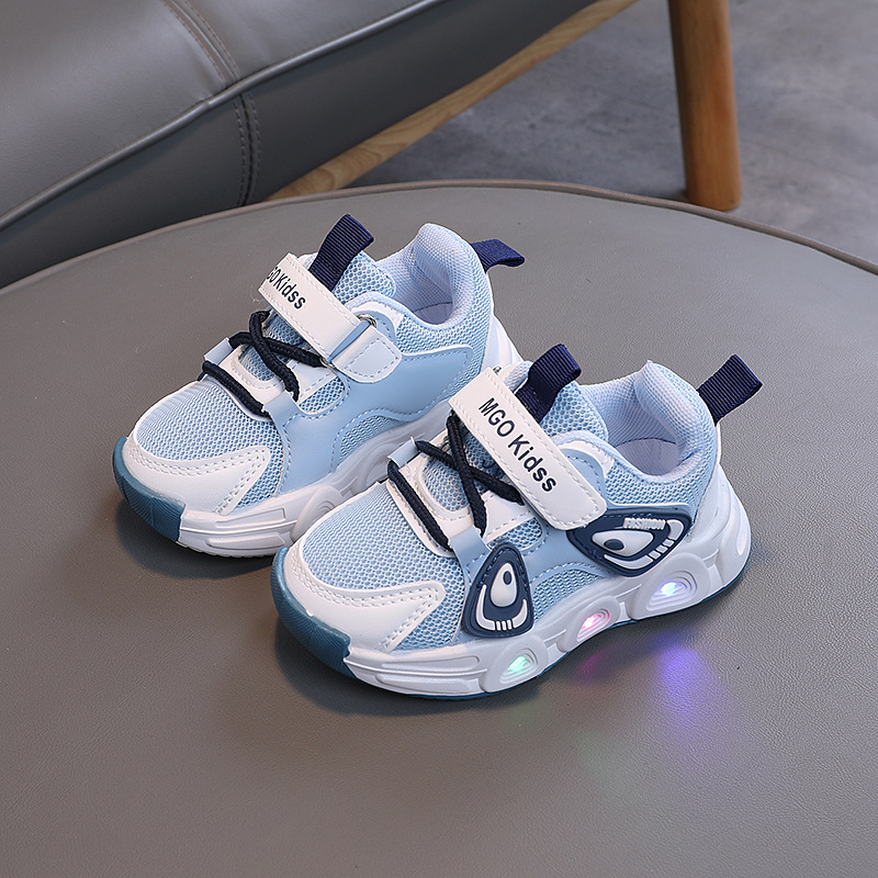어린이 빛나는 운동화 2024 가을 소년 메쉬 통기성 러닝 슈즈 아기 귀여운 소프트 단독 미끄럼 방지 신발스토어 가기