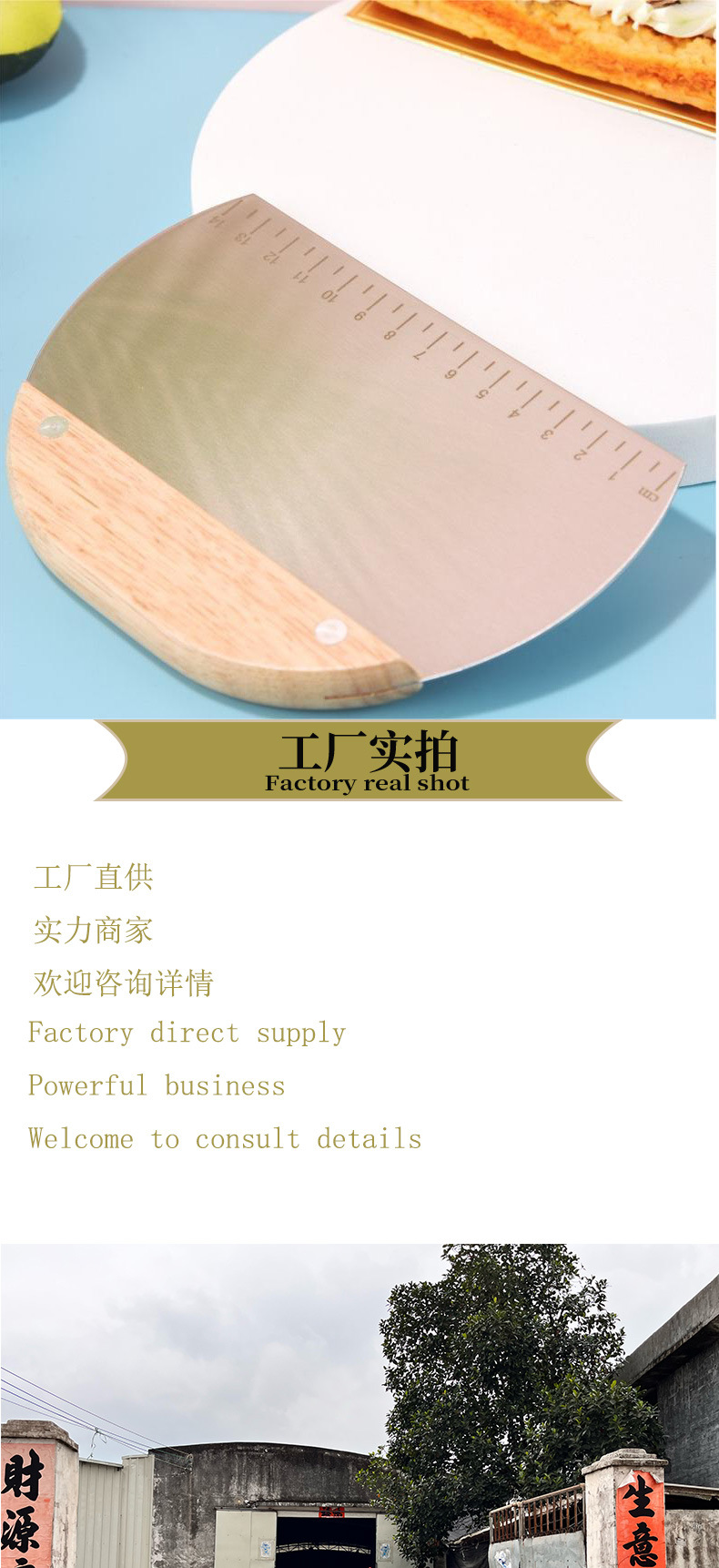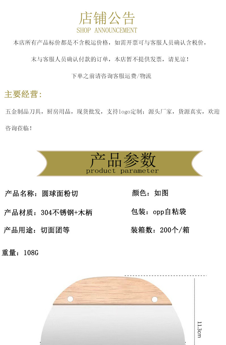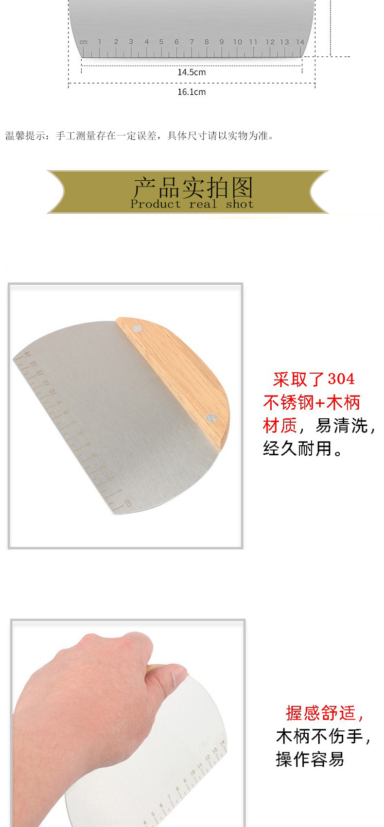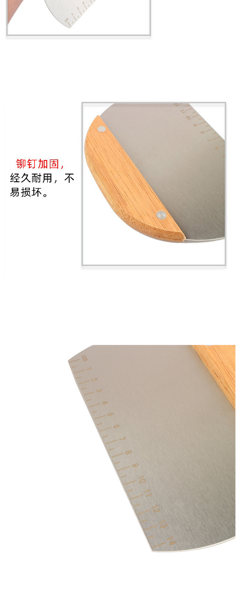 스테인레스 스틸 오크 손잡이 밀가루 절단 반원 얼굴 절단 칼 가늠자 반죽 절단 칼 가구 긁기 도구