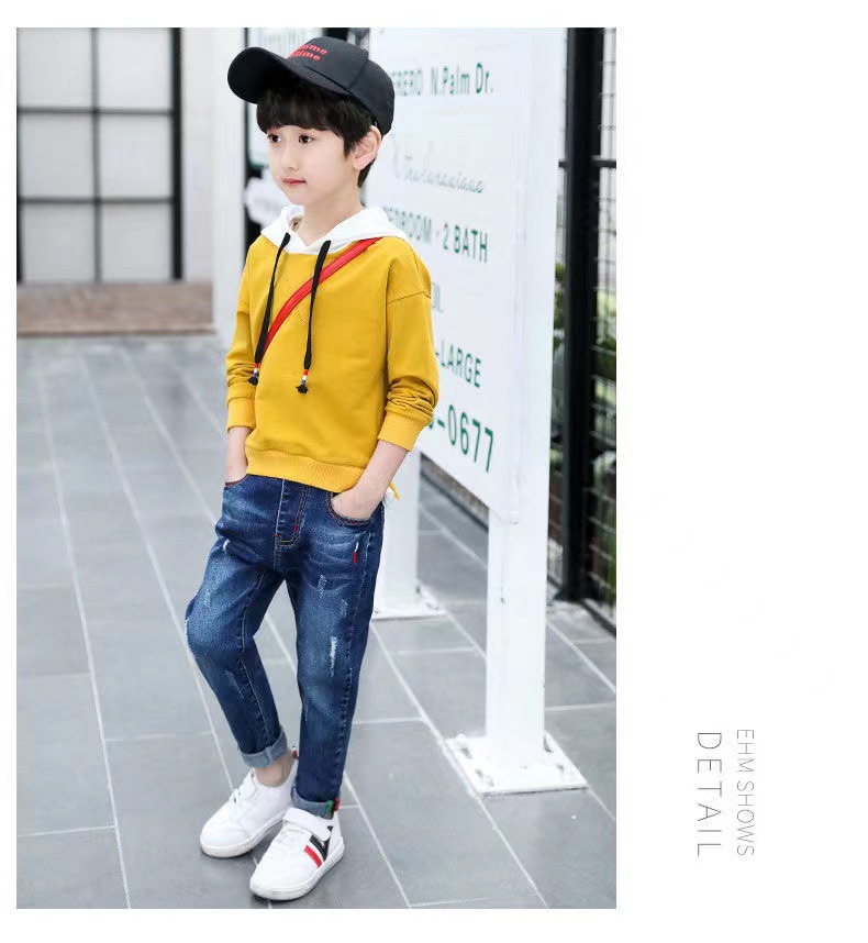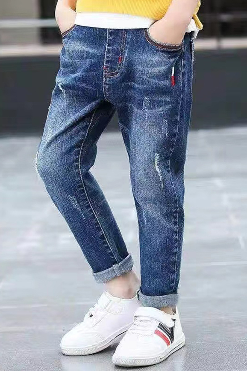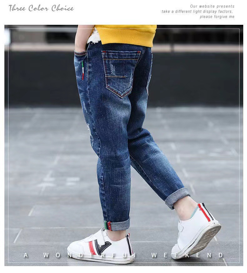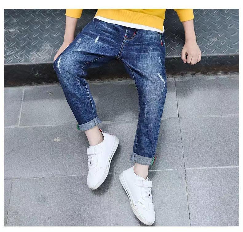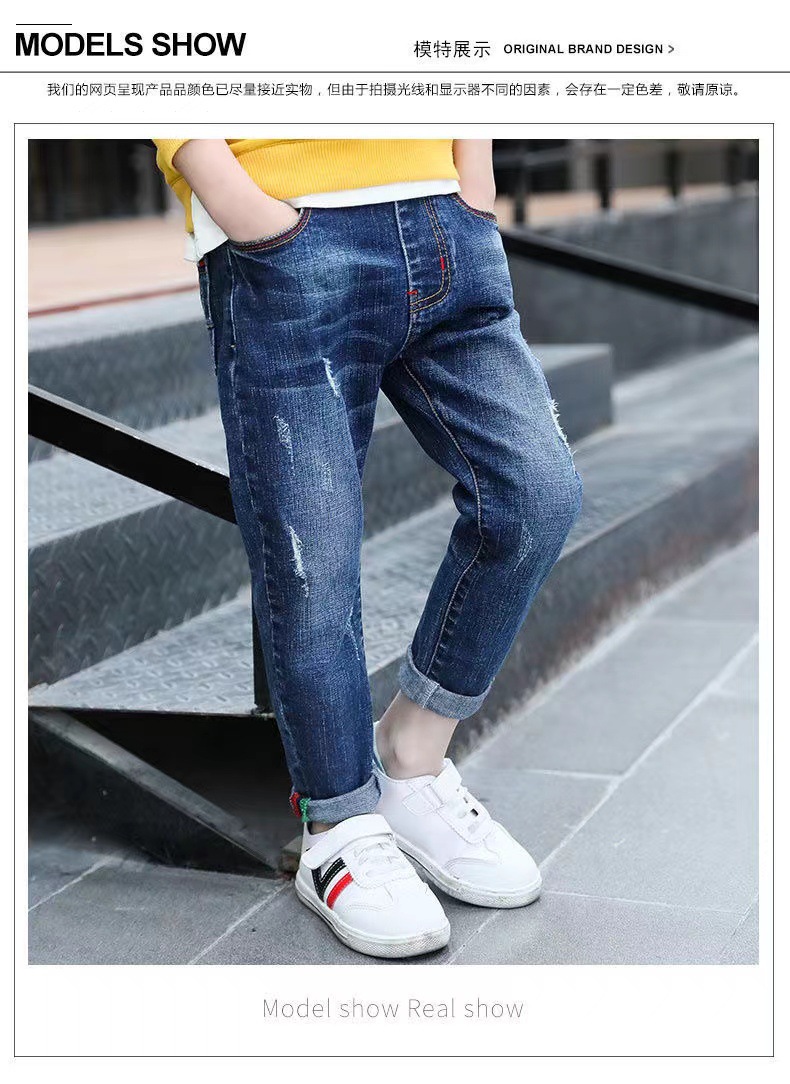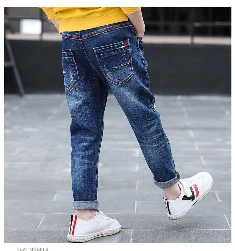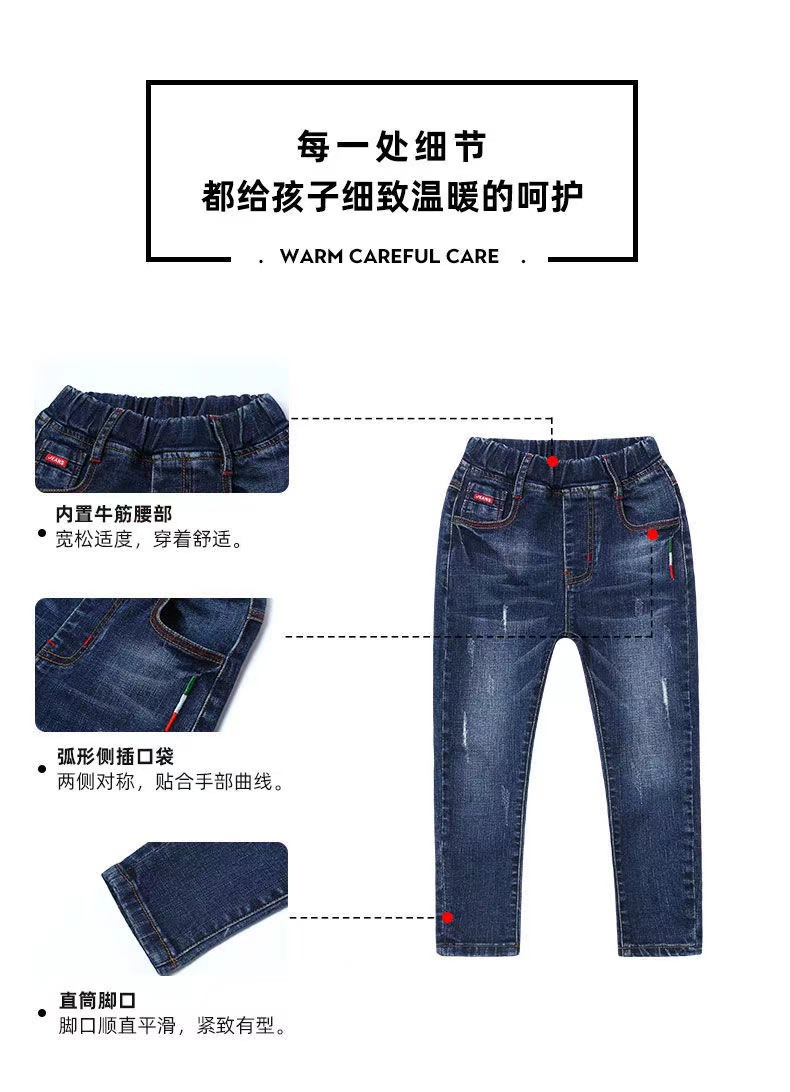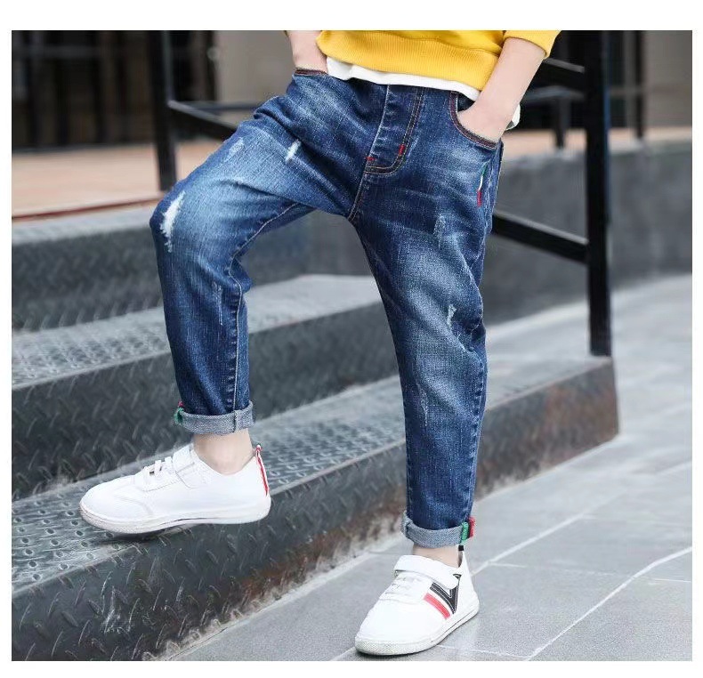 남아용 청바지 트렌디한 봄 가을 바지 외출용 바지 중대형 아동용 청바지 스트레이트 팬츠 리얼 포켓 패션 스트라이프스토어 가기