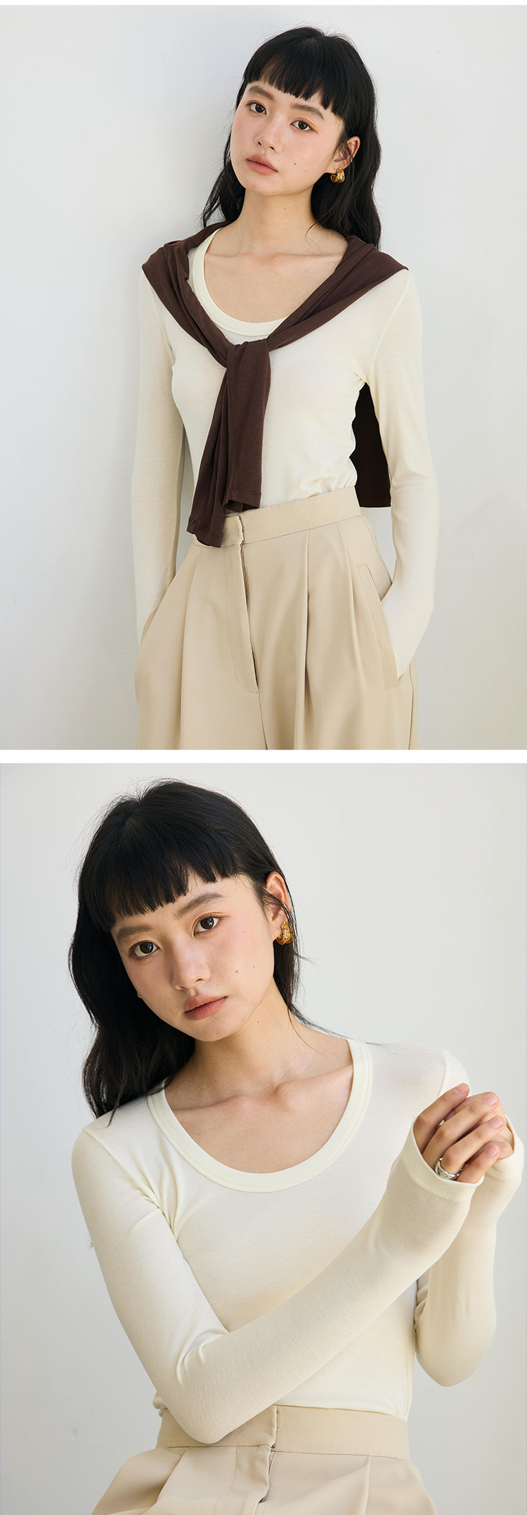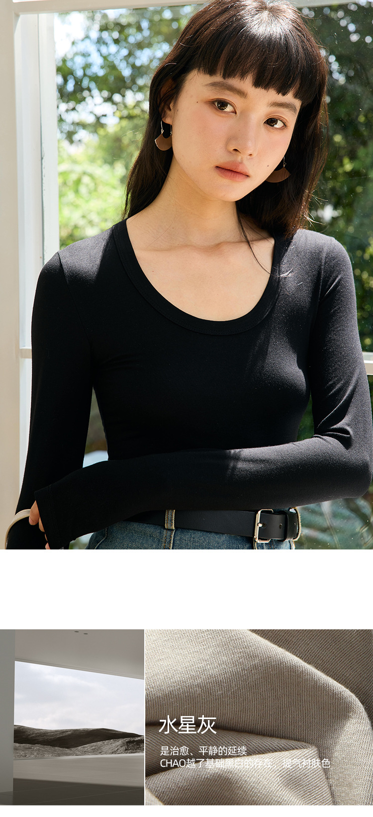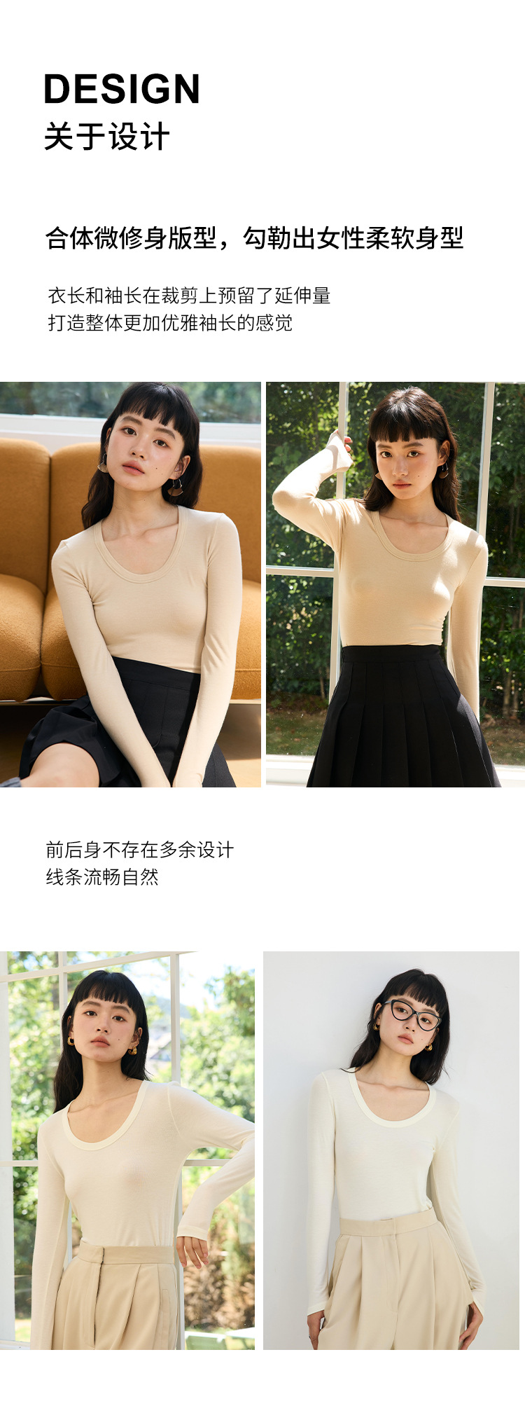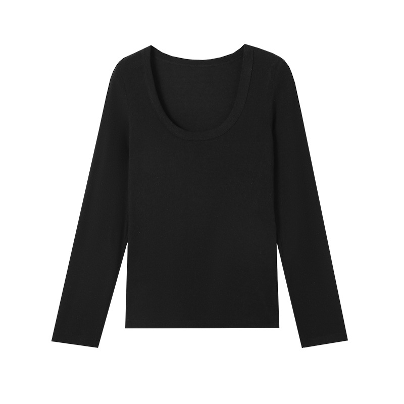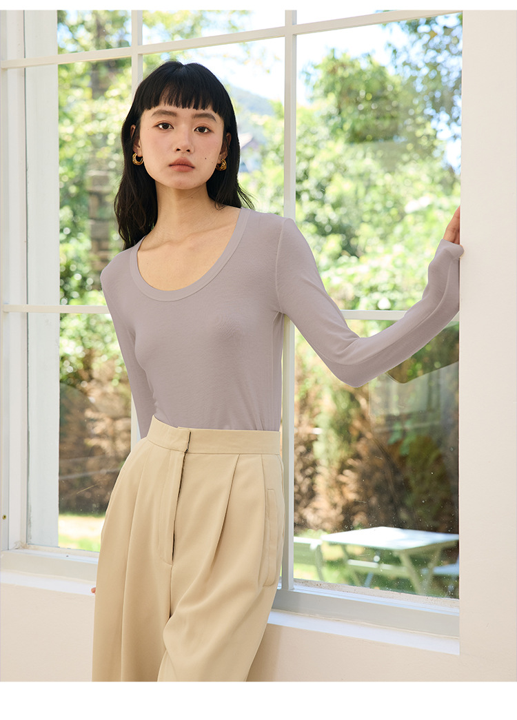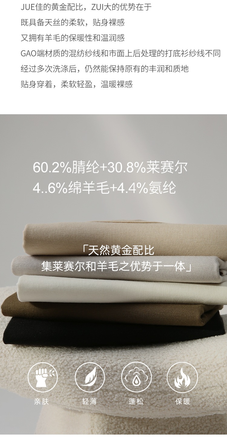 가을과 겨울 메이야비 텐셀베이스 셔츠 여성용 솔리드 컬러 울 라운드 넥 올 매치 심플 니트 셔츠 새로운 내부 탑