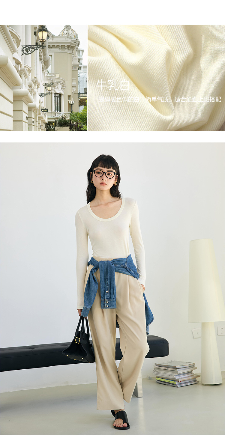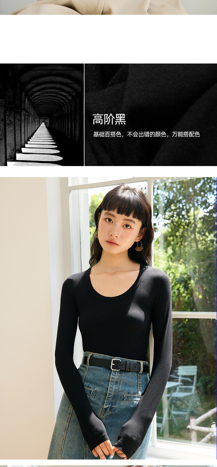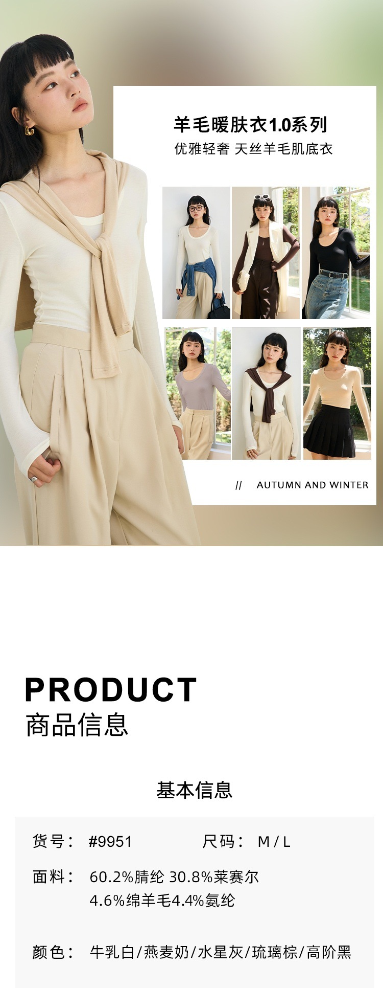 가을과 겨울 메이야비 텐셀베이스 셔츠 여성용 솔리드 컬러 울 라운드 넥 올 매치 심플 니트 셔츠 새로운 내부 탑스토어 가기
