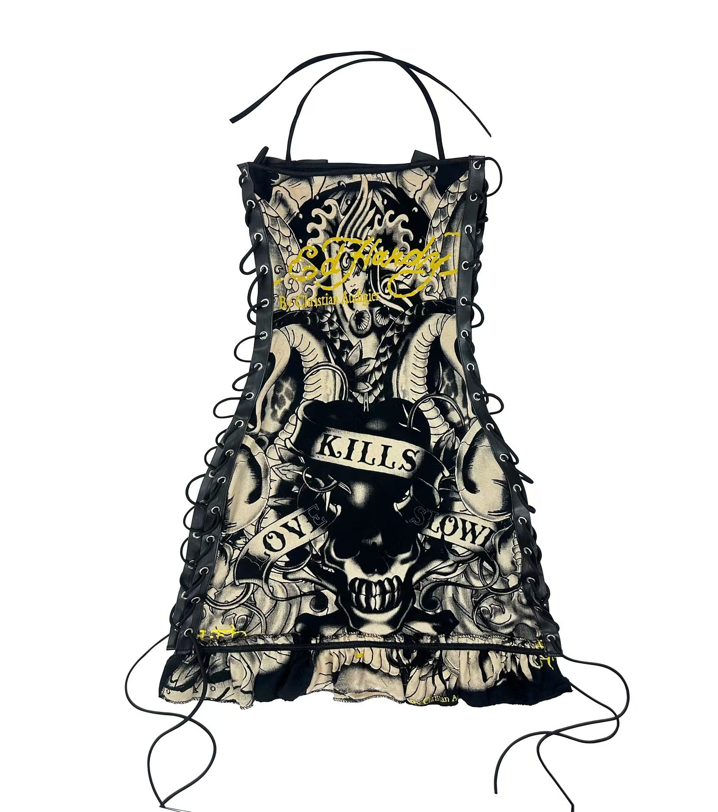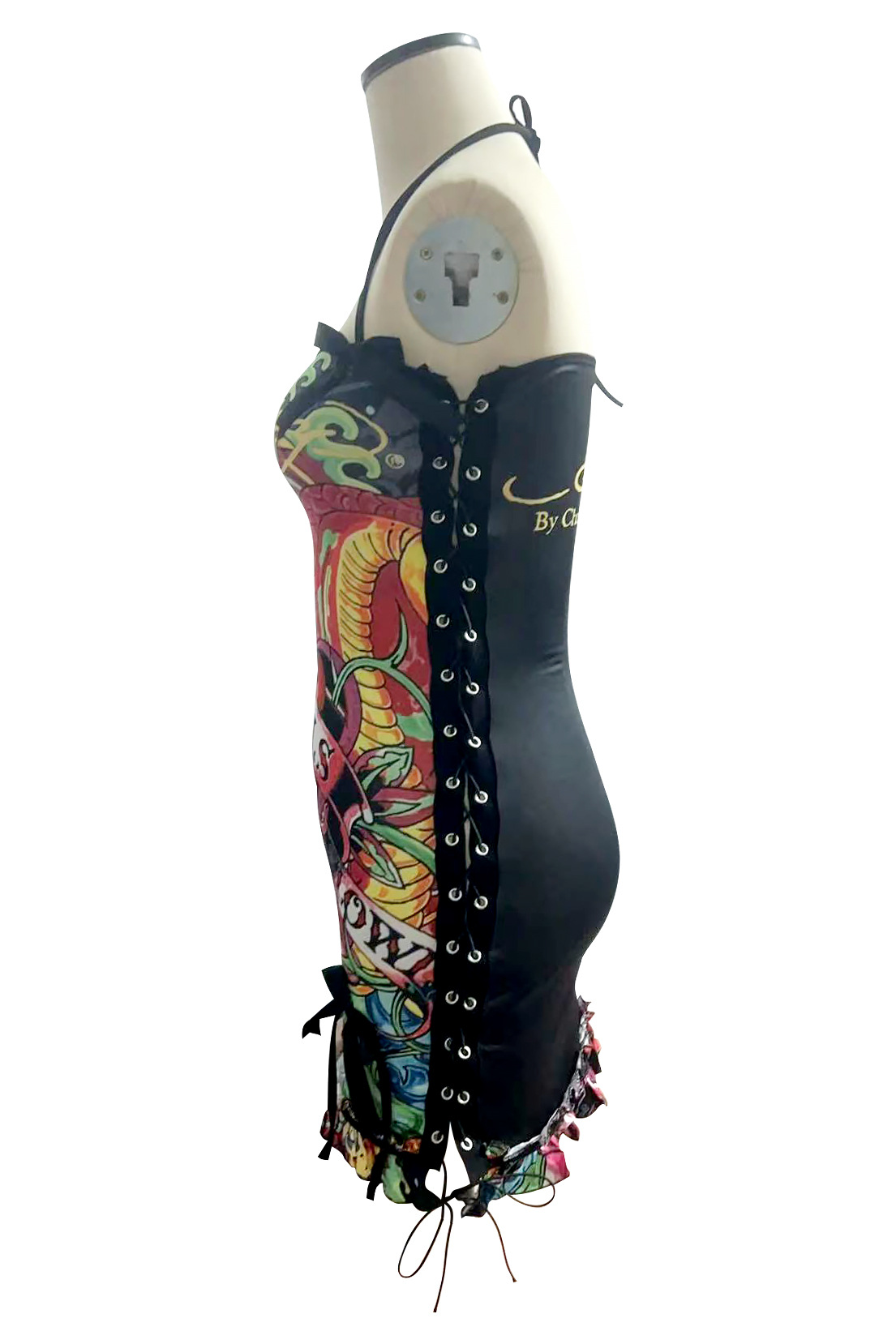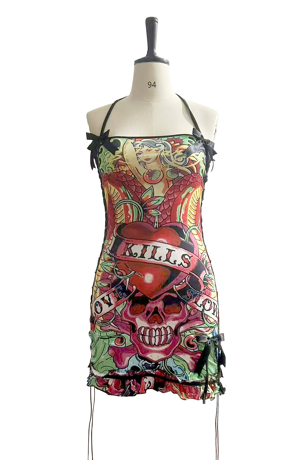 FC1288 유럽과 미국의 패션 크로스 보더 레트로 할로윈 해골 포지셔닝 인쇄 유화 서랍 튜브 가슴 슬링 원피스스토어 가기