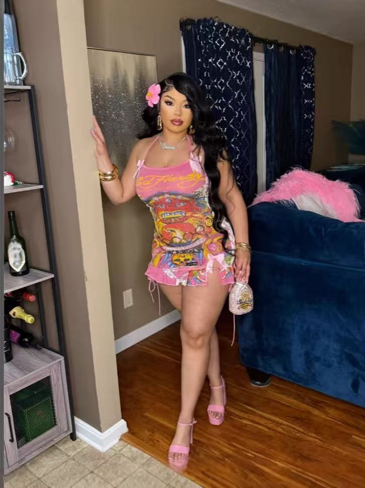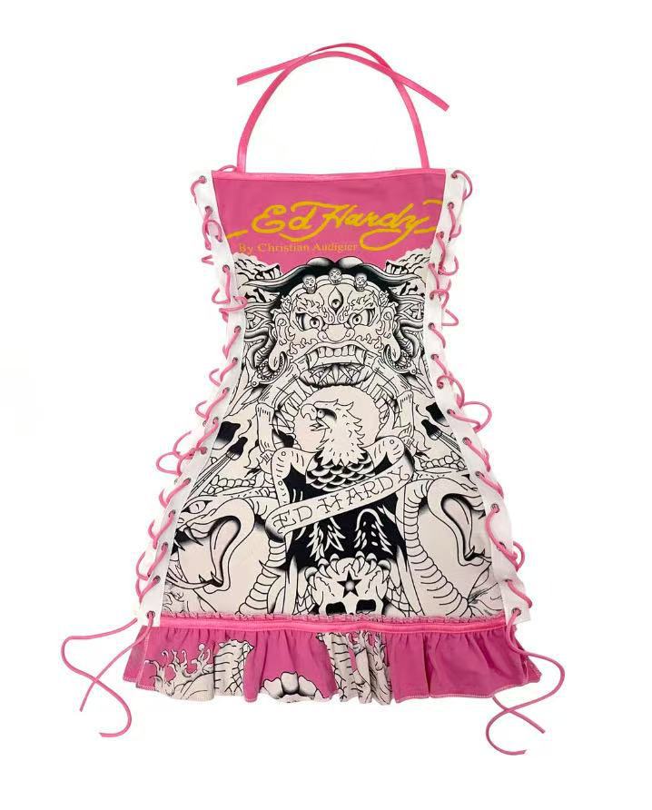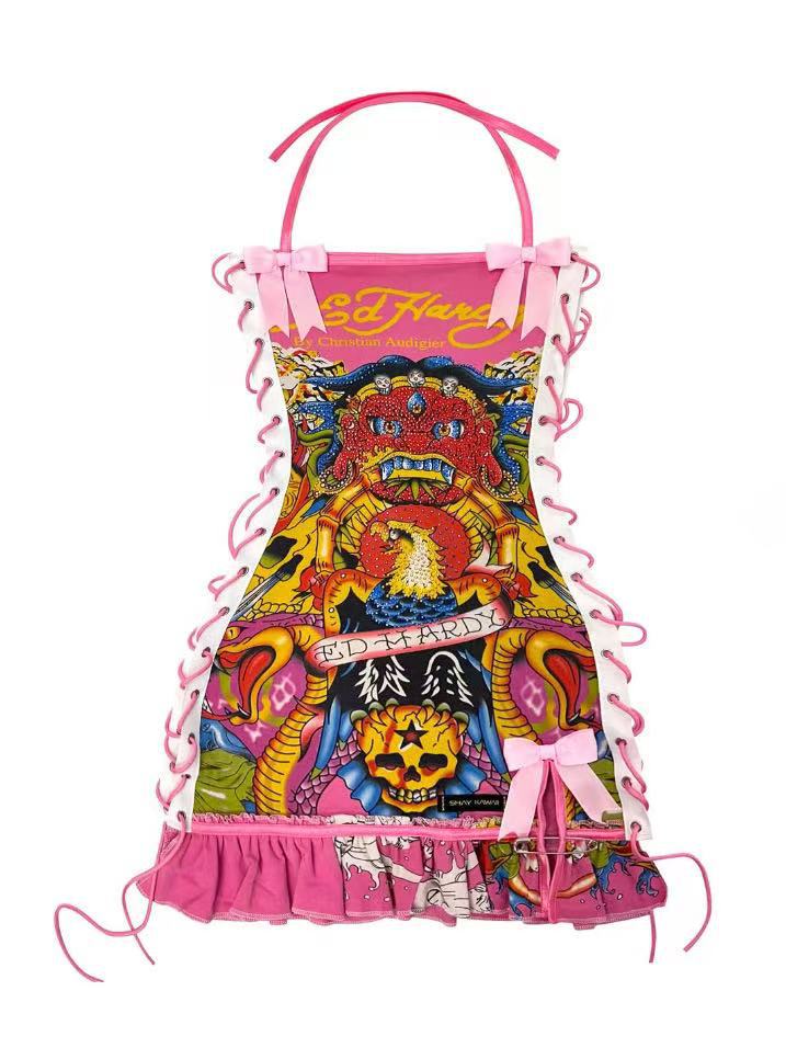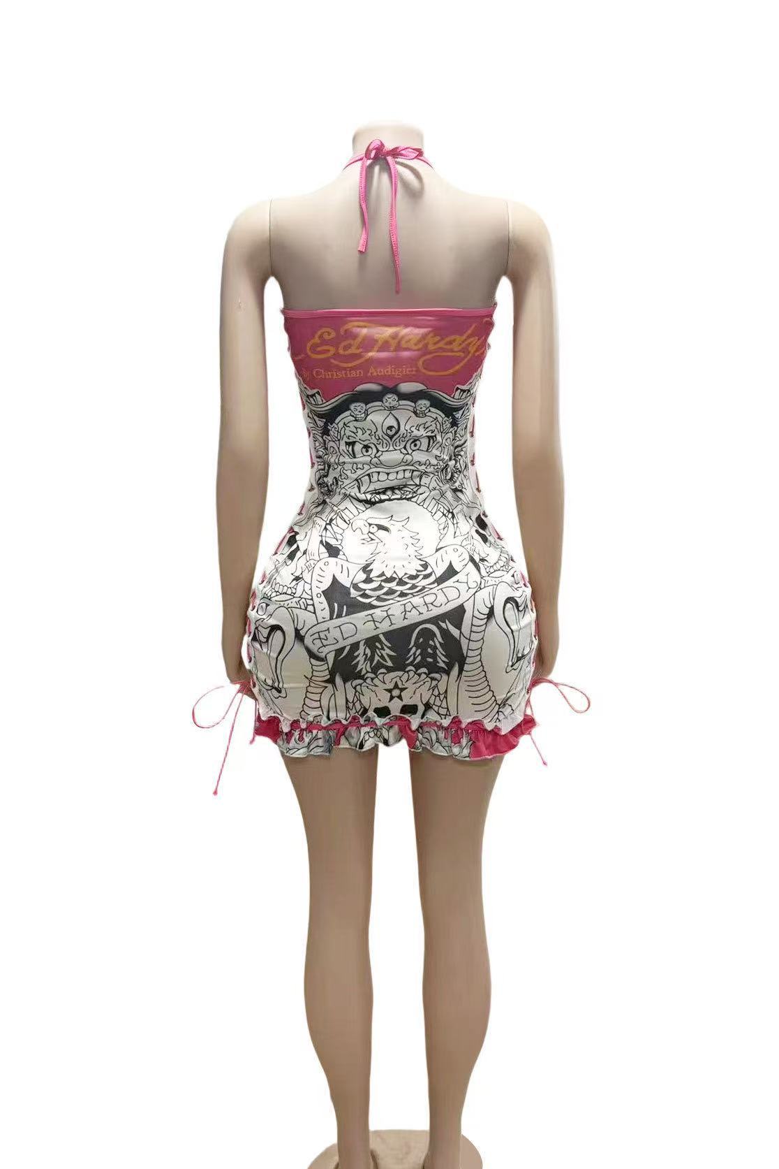 FC1288 유럽과 미국의 패션 크로스 보더 레트로 할로윈 해골 포지셔닝 인쇄 유화 서랍 튜브 가슴 슬링 원피스
