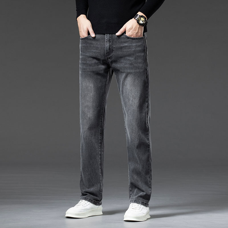 스트레이트 레그 청바지 남성용 블랙 그레이 도시 트렌디 미드 웨이스트 캐주얼 바지 2024 봄과 가을 새로운 청소년 편안한 바지