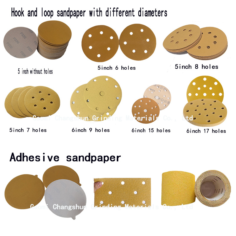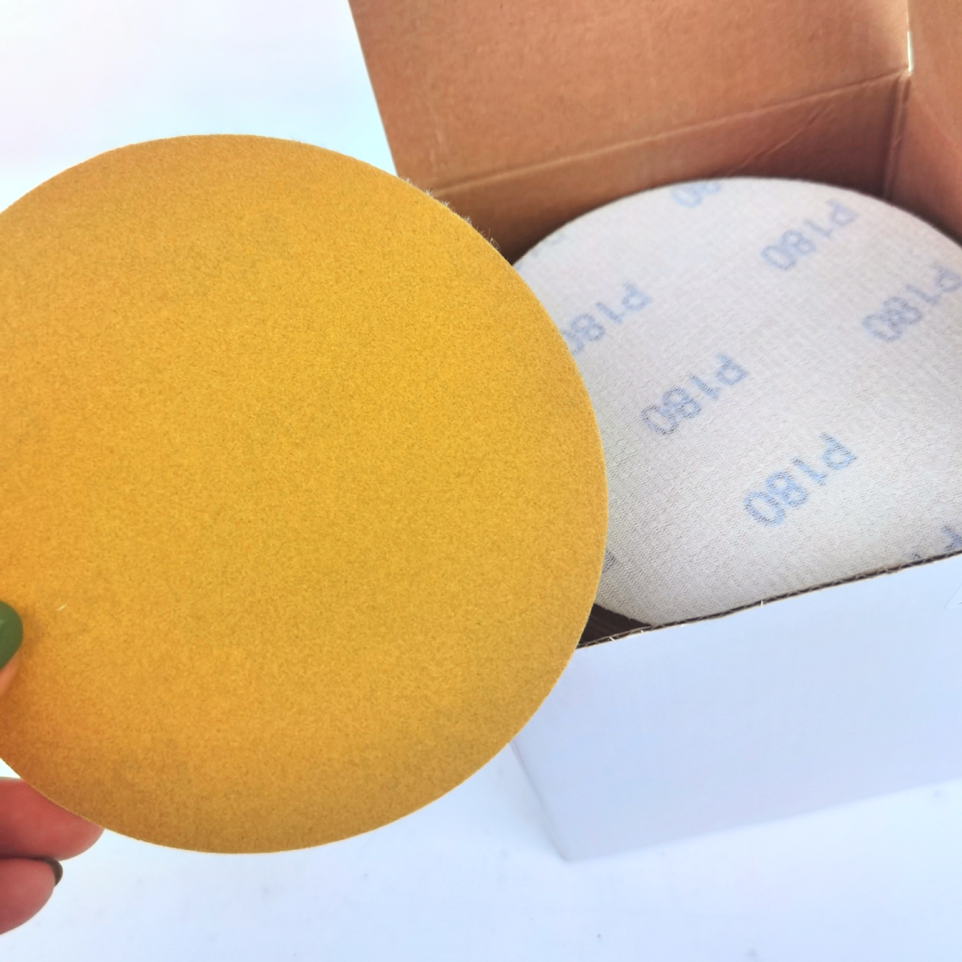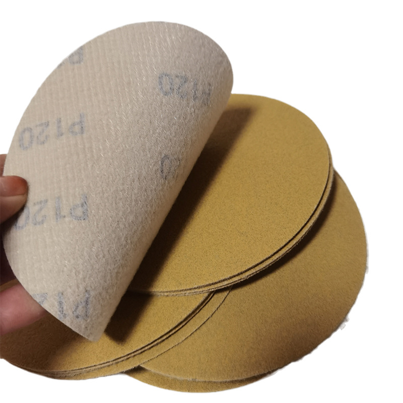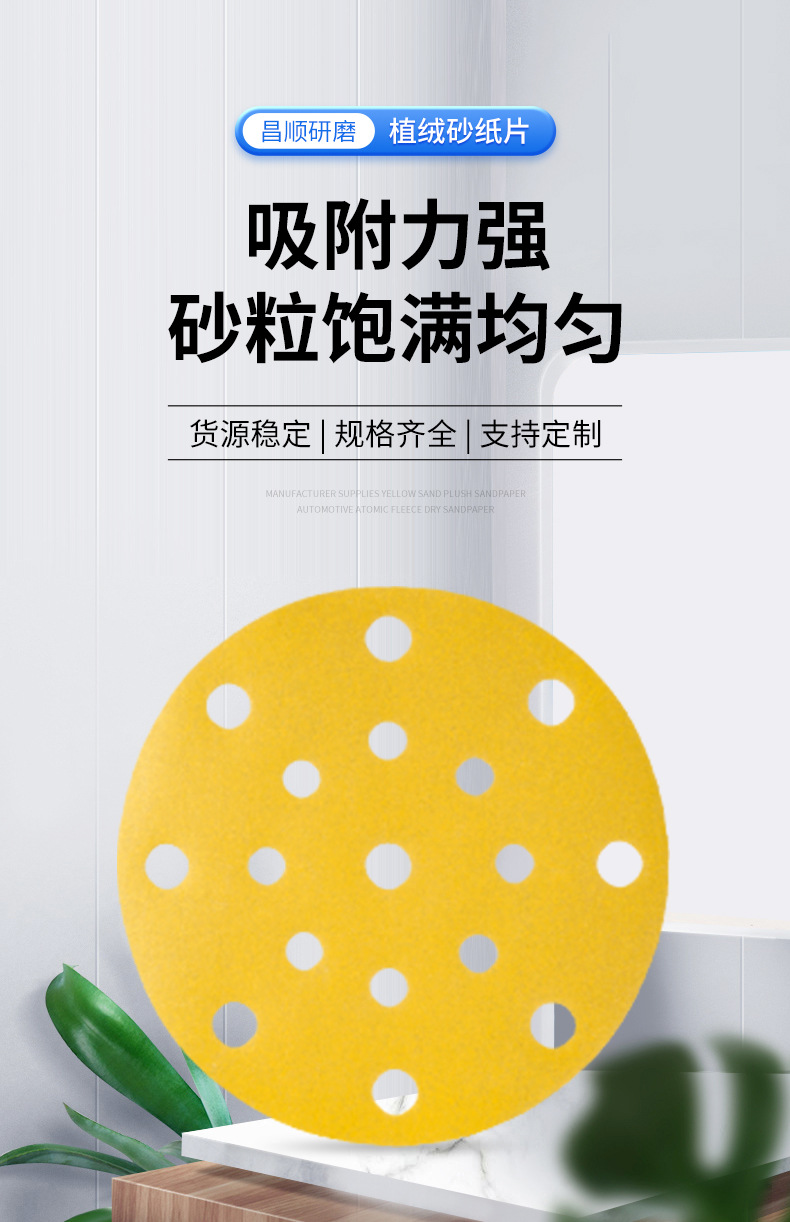 5寸黄砂植绒圆盘背胶背绒粘扣汽车抛光打磨片砂纸片砂纸厂家直供