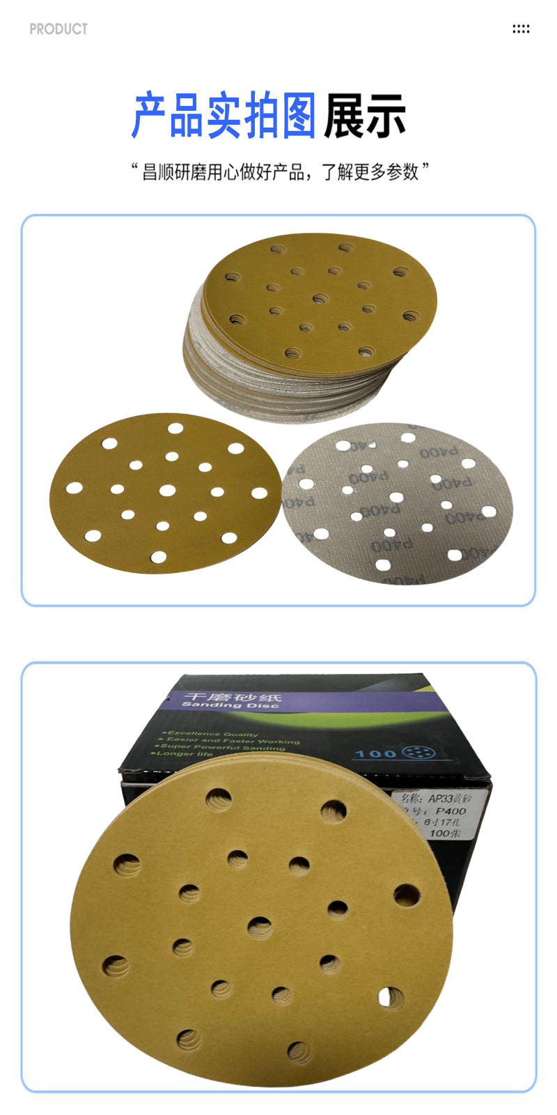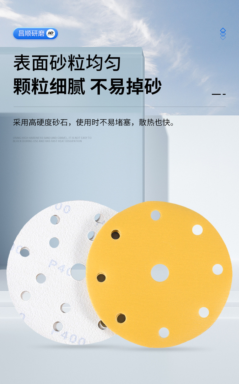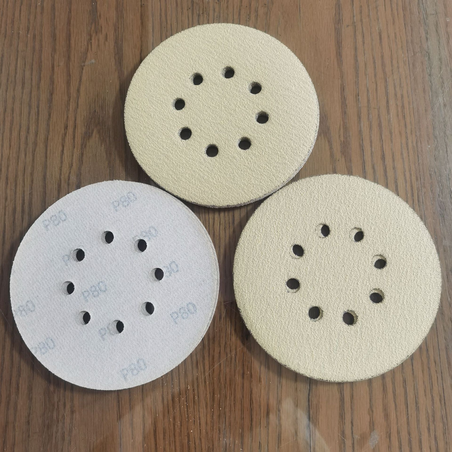 亚马逊外贸圆盘砂纸片植绒黄砂打磨片5寸125 8孔背绒黄砂纸