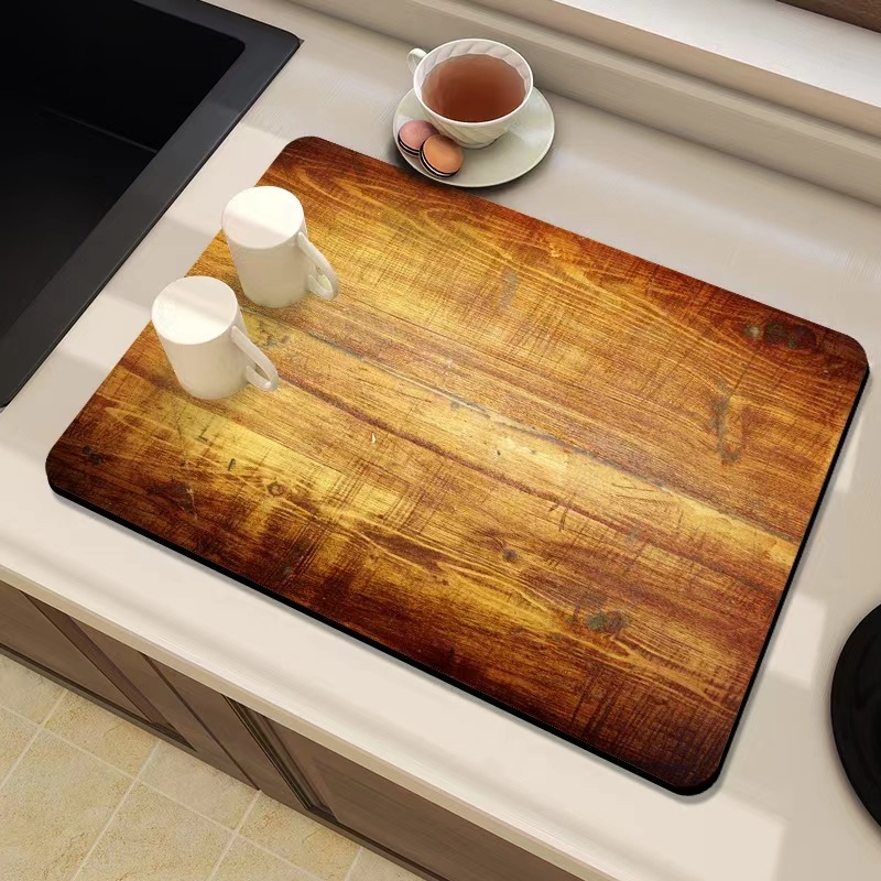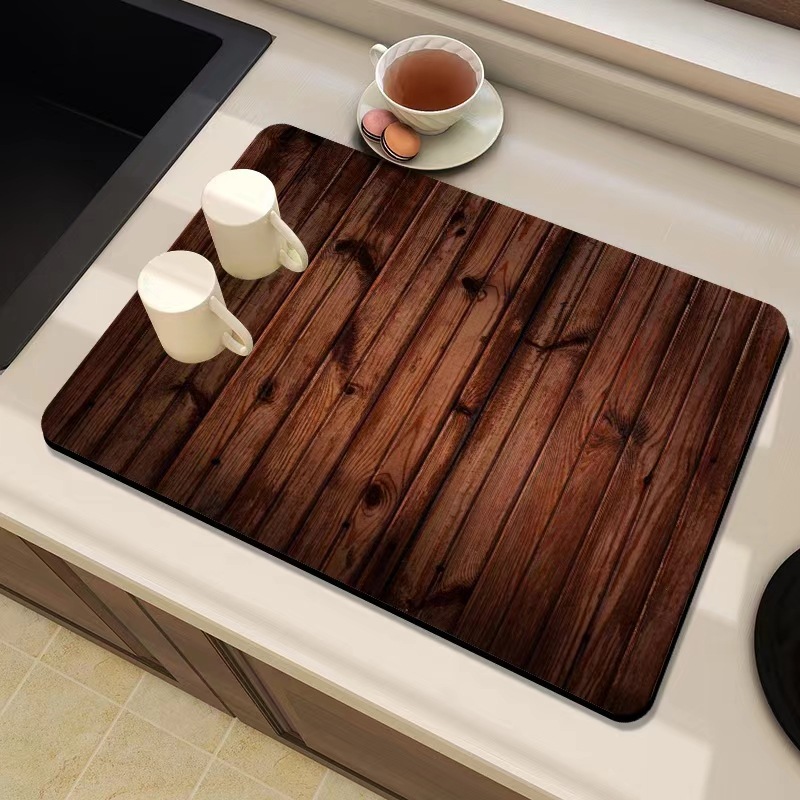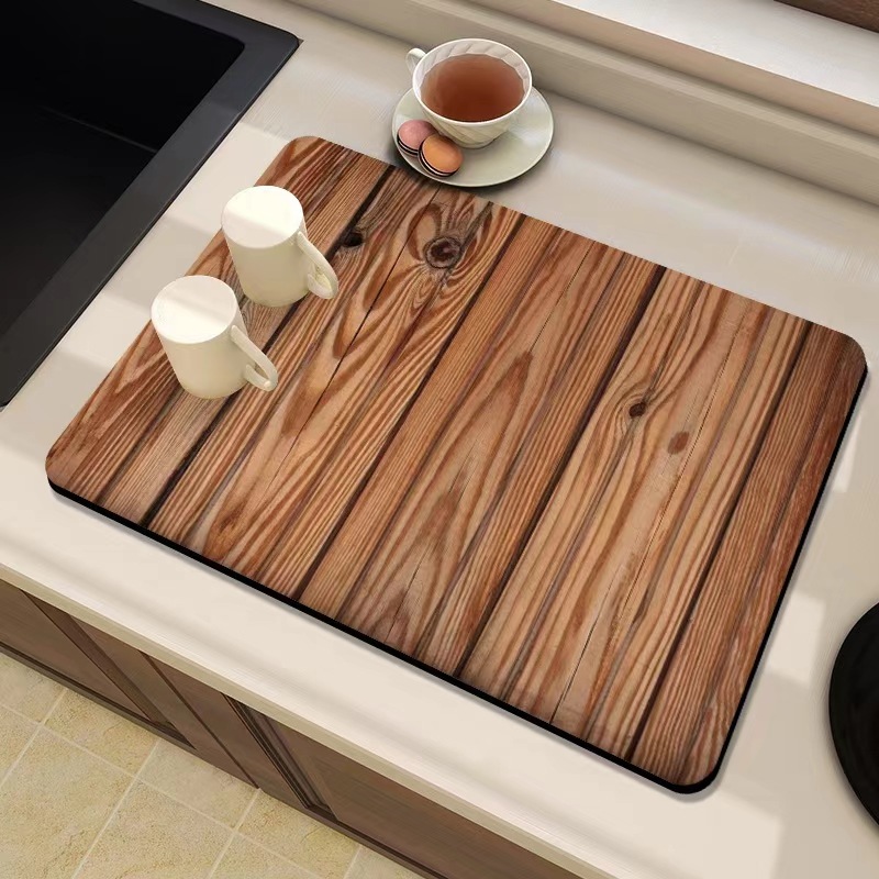 주방용 나무결 무늬 배수 매트 규조토 식탁매트 미끄럼 방지 기름 방지 단열 매트 흡수성 빠른 건조 오염 방지 매트 가정용스토어 가기