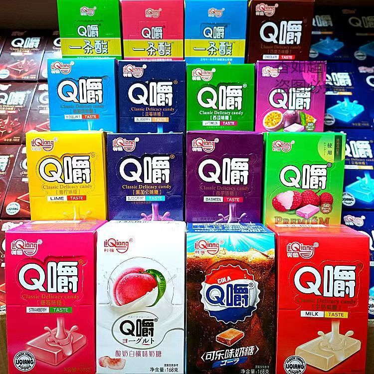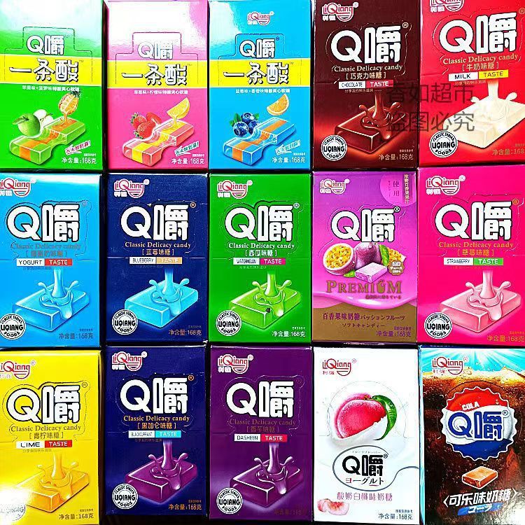 Li Qiang q 부드러운 사탕을 씹는 다양한 과일 맛 달콤하고 신맛 사탕 선물 가방 사탕 도매 전체 상자 168 g
