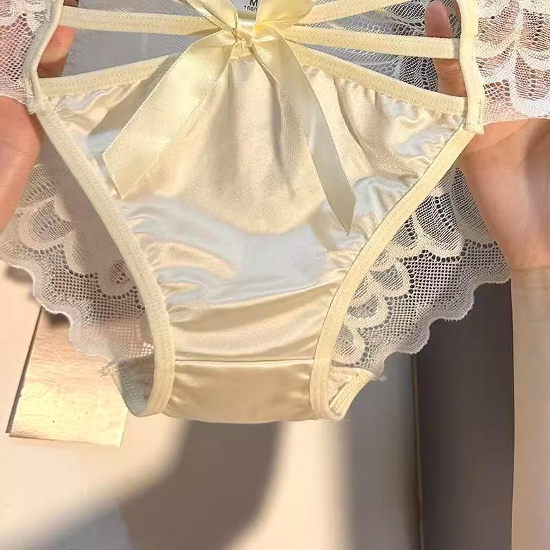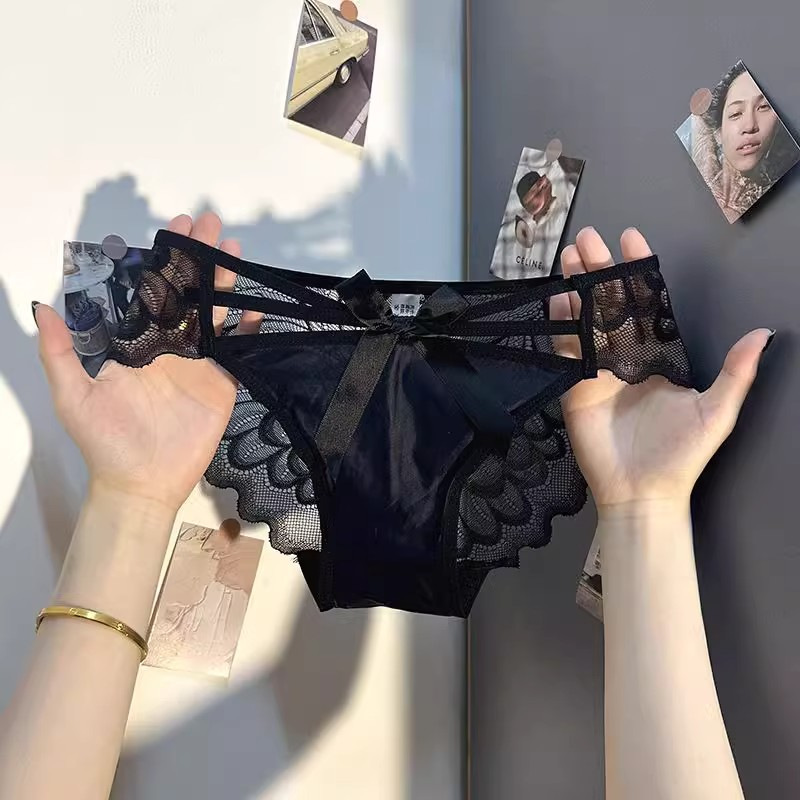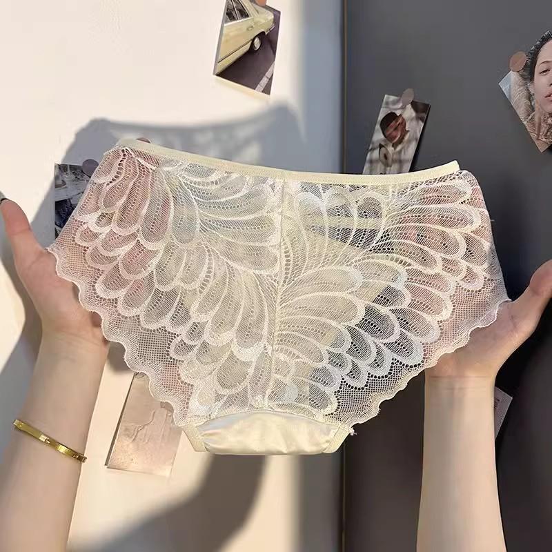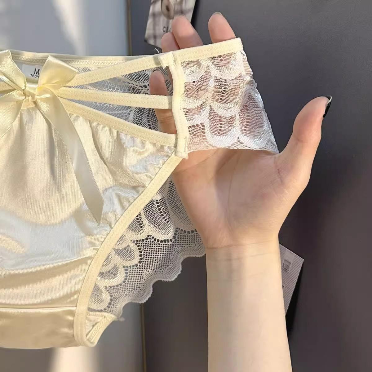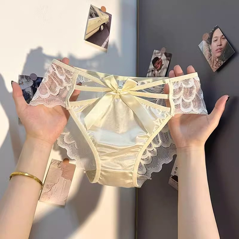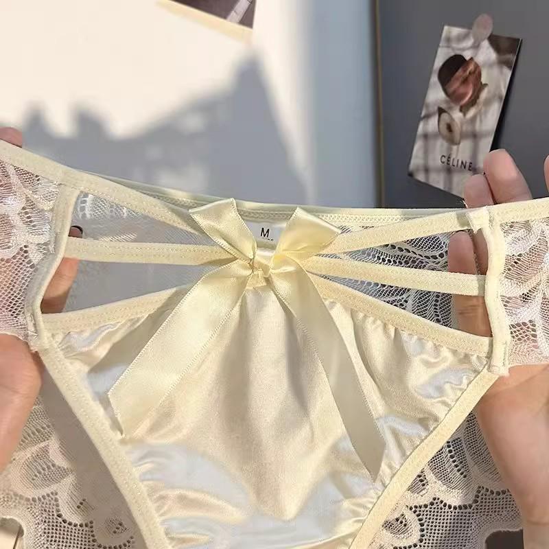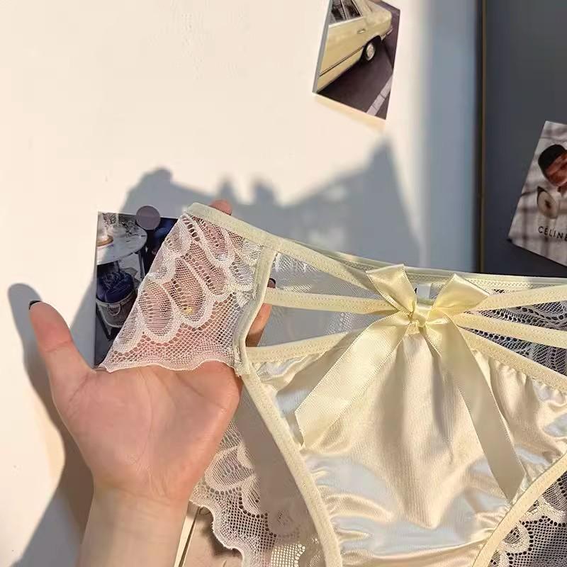 천사 날개 섹시한 레이스 새틴 코튼 크로트 속옷 여성의 순수한 욕망 활 엉덩이 리프터 통기성 여름 빈 낮은 허리스토어 가기