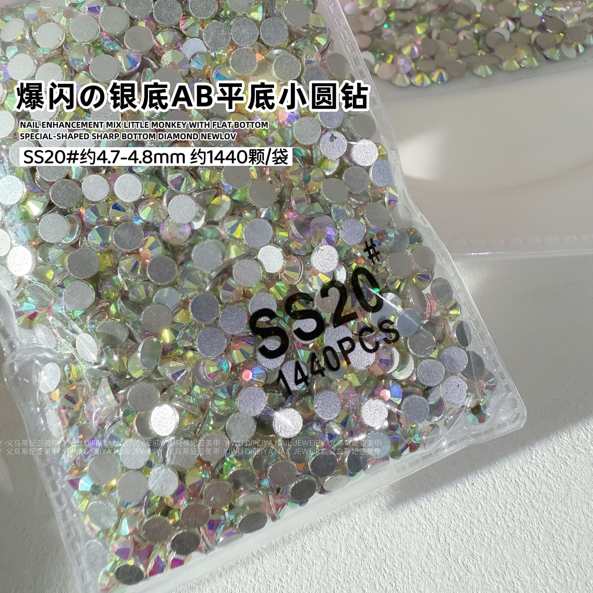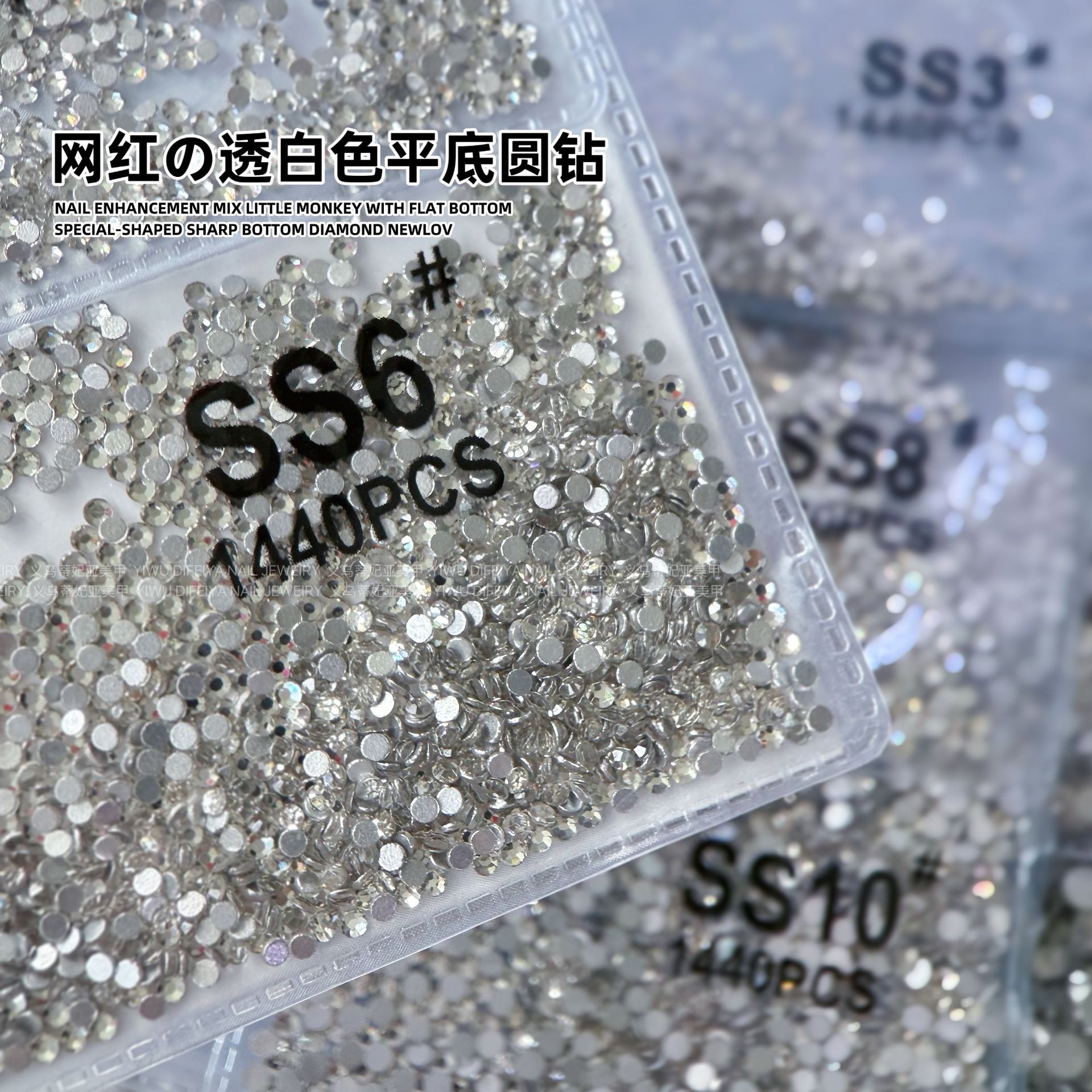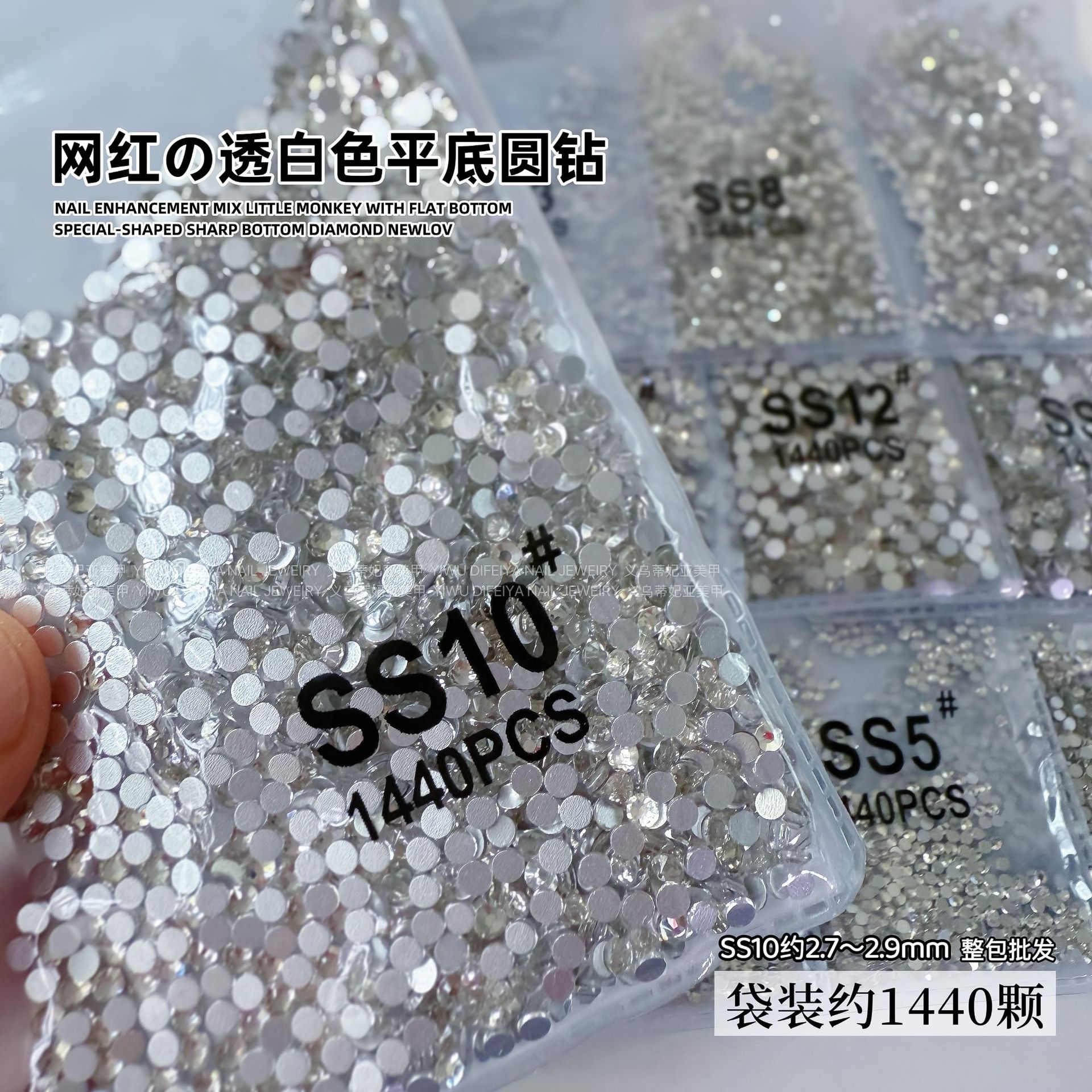 1440 플랫 바닥 작은 라운드 다이아몬드 네일 아트 다이아몬드 슈퍼 플래시 실버 바닥 투명 흰색 체코 유리 라인 석 네일 쥬얼리 도매스토어 가기