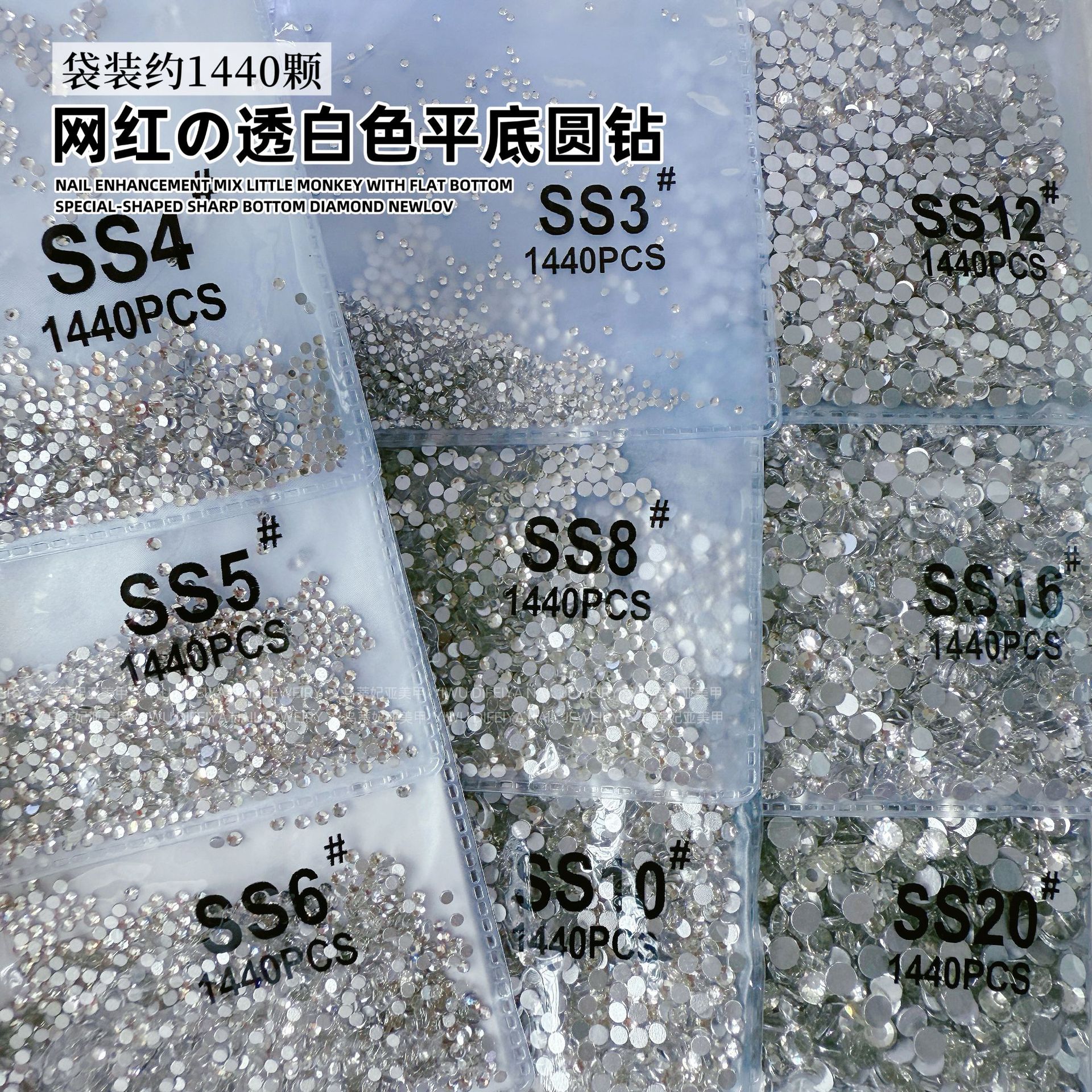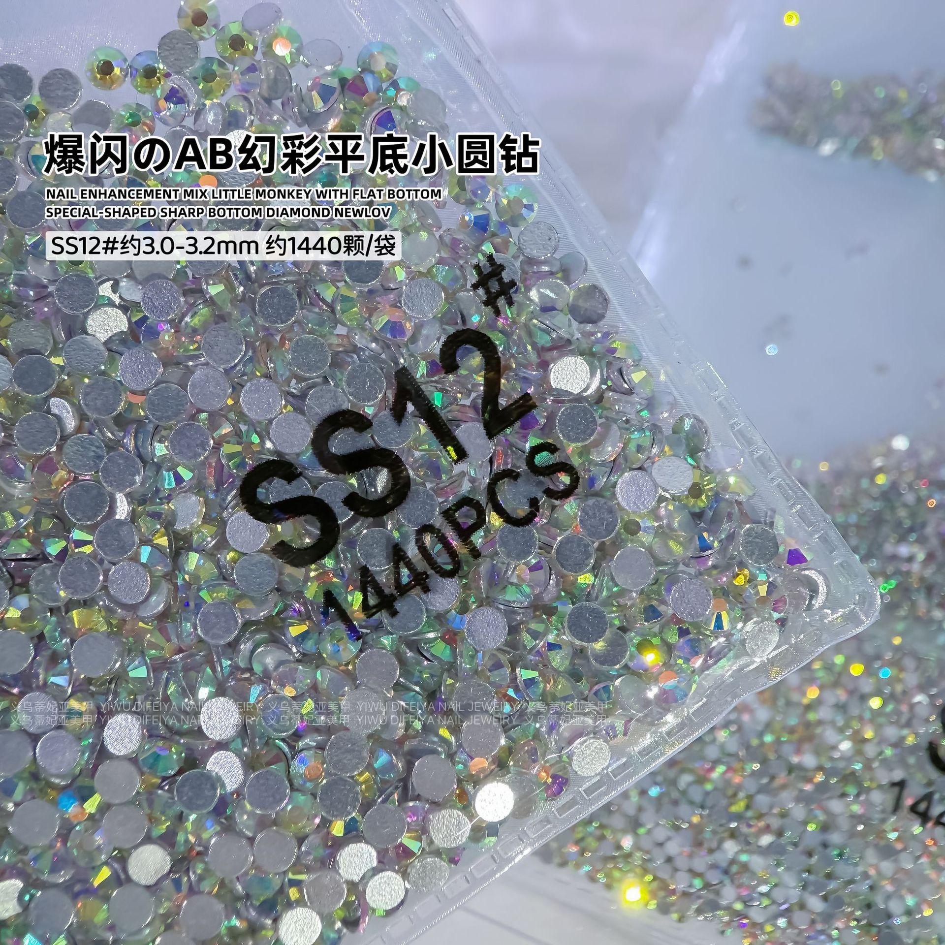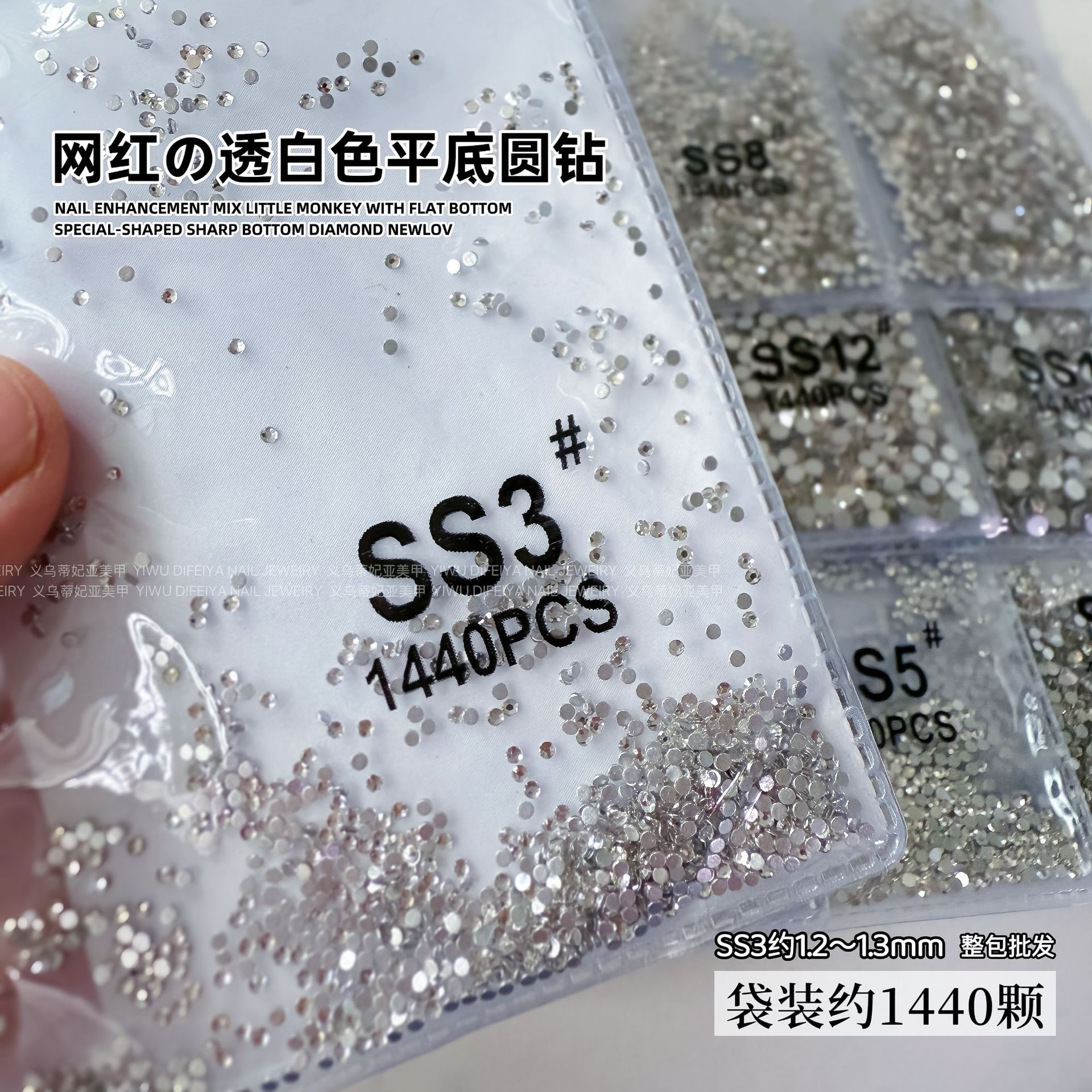 1440 플랫 바닥 작은 라운드 다이아몬드 네일 아트 다이아몬드 슈퍼 플래시 실버 바닥 투명 흰색 체코 유리 라인 석 네일 쥬얼리 도매스토어 가기