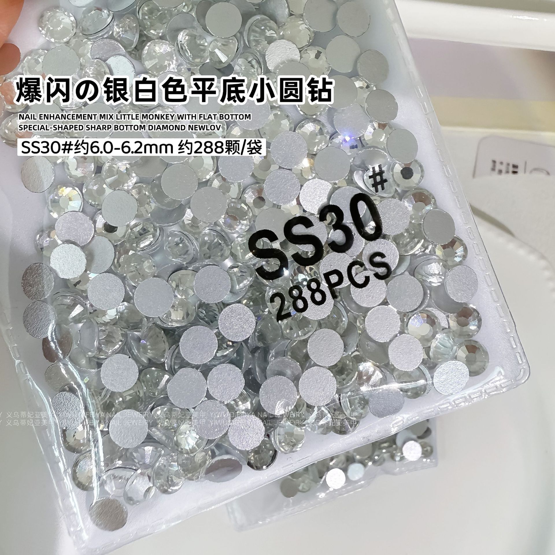 • 은색 바탕에 흰색 평면 원형 다이아몬드 SS6(2.0mm) 약 1440개