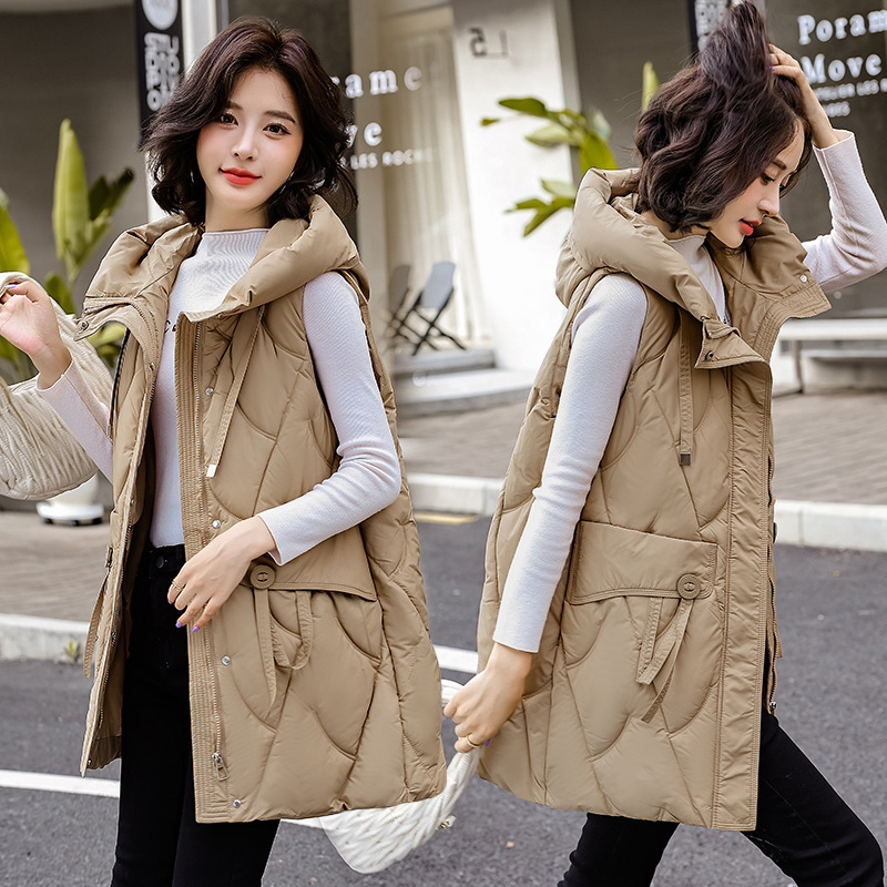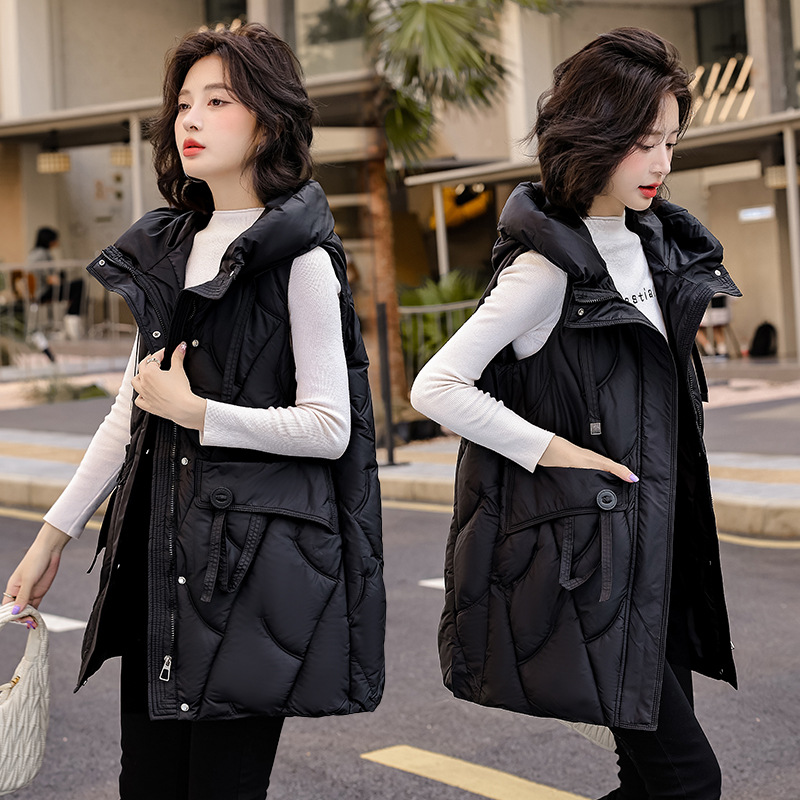 다운 코튼 조끼 여성 외부 2024 새로운 가을과 겨울 중간 길이의 유럽 상품 인기 온라인 핫 조끼 재킷스토어 가기