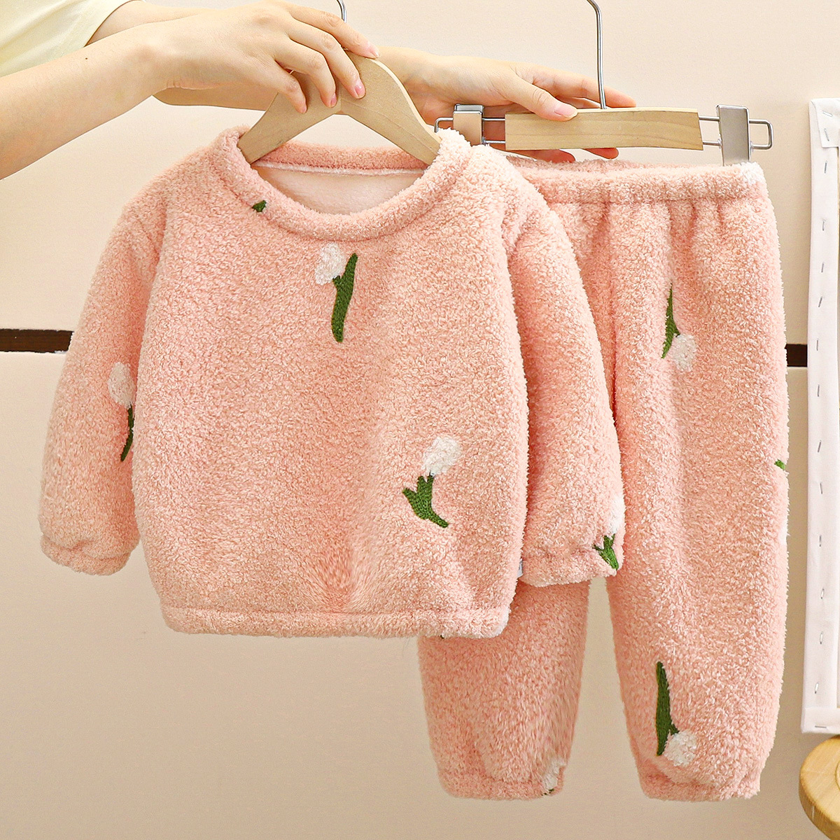 어린이 잠옷 세트 가을 새 소년 구름 벨벳 여아 홈 옷 아기 기모 두꺼운 아동복 엄격한 선택