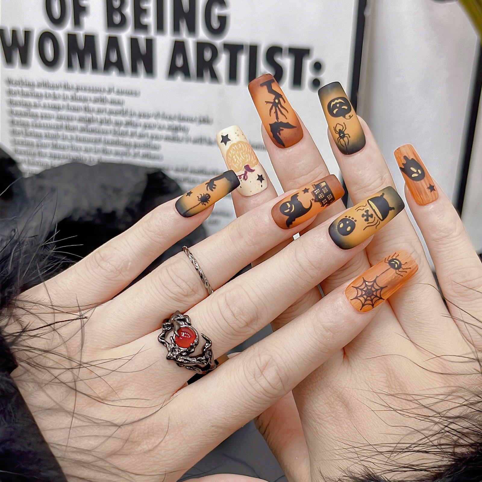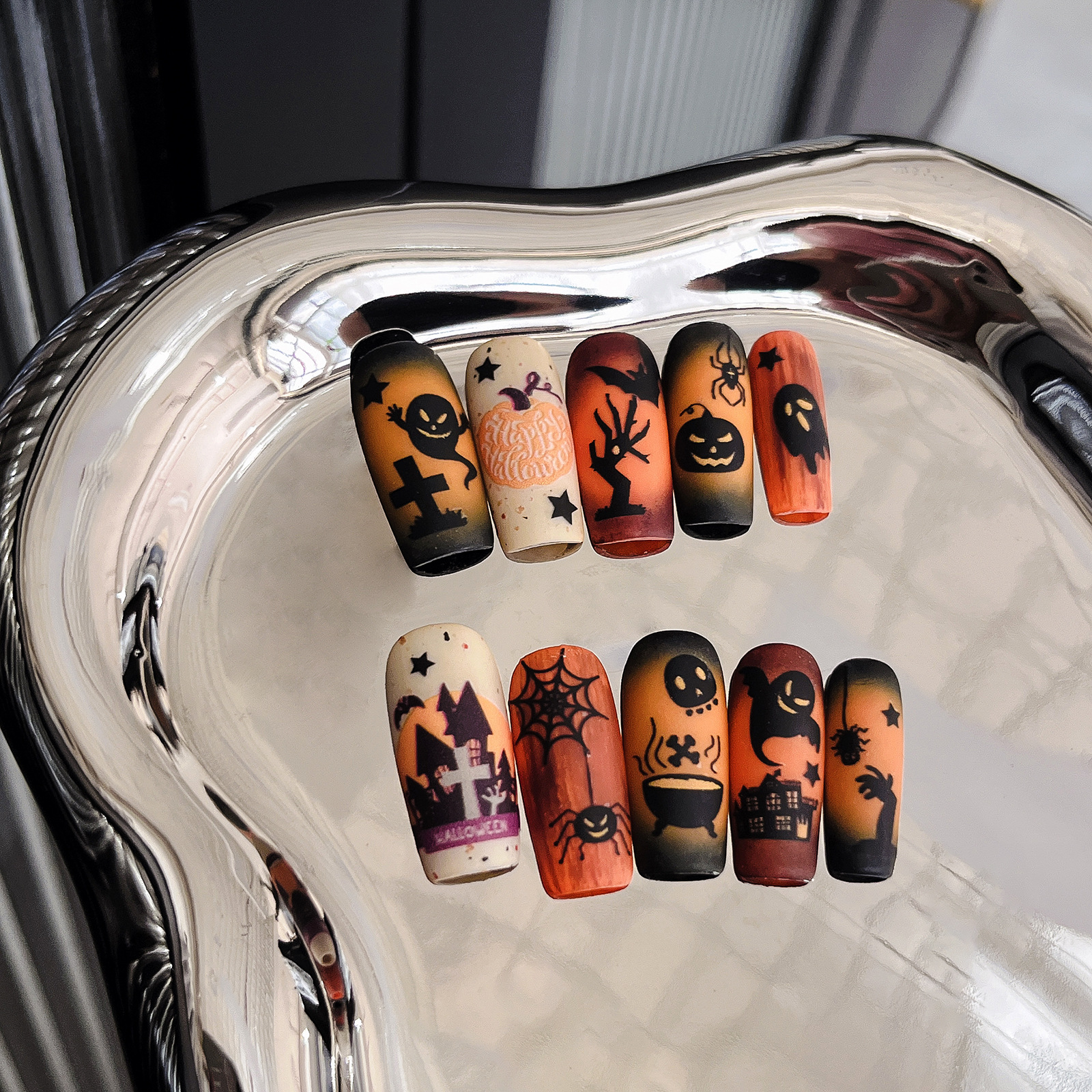할로윈 네일 아트 스티커 레트로 디아블로 시리즈 공포 유령 호박 헤드 박쥐 플랫 백 접착 스티커 도매