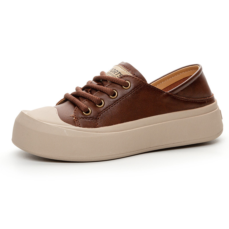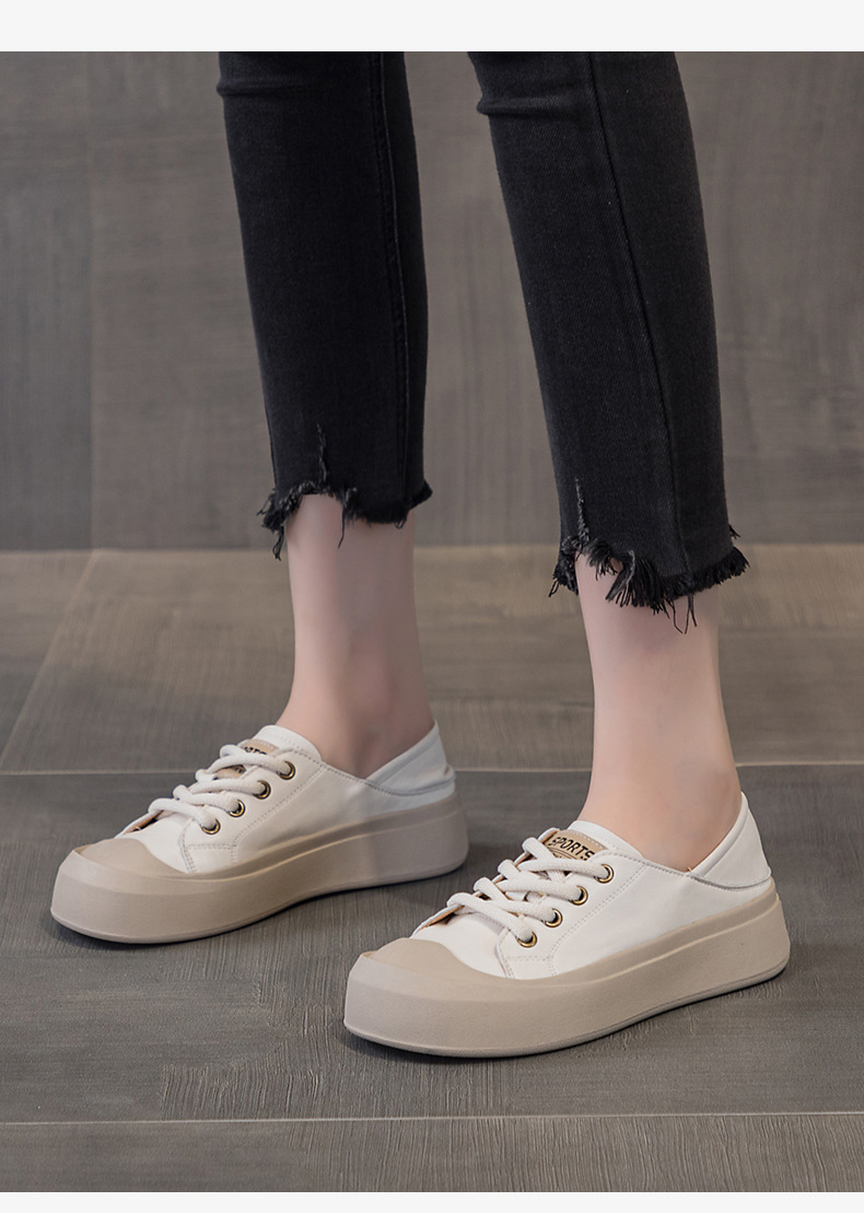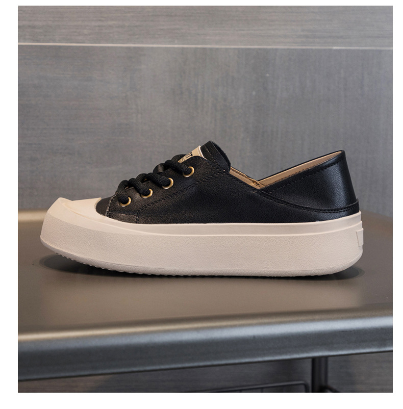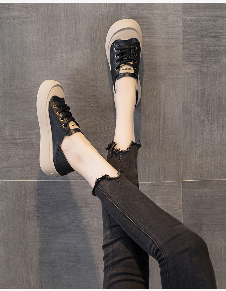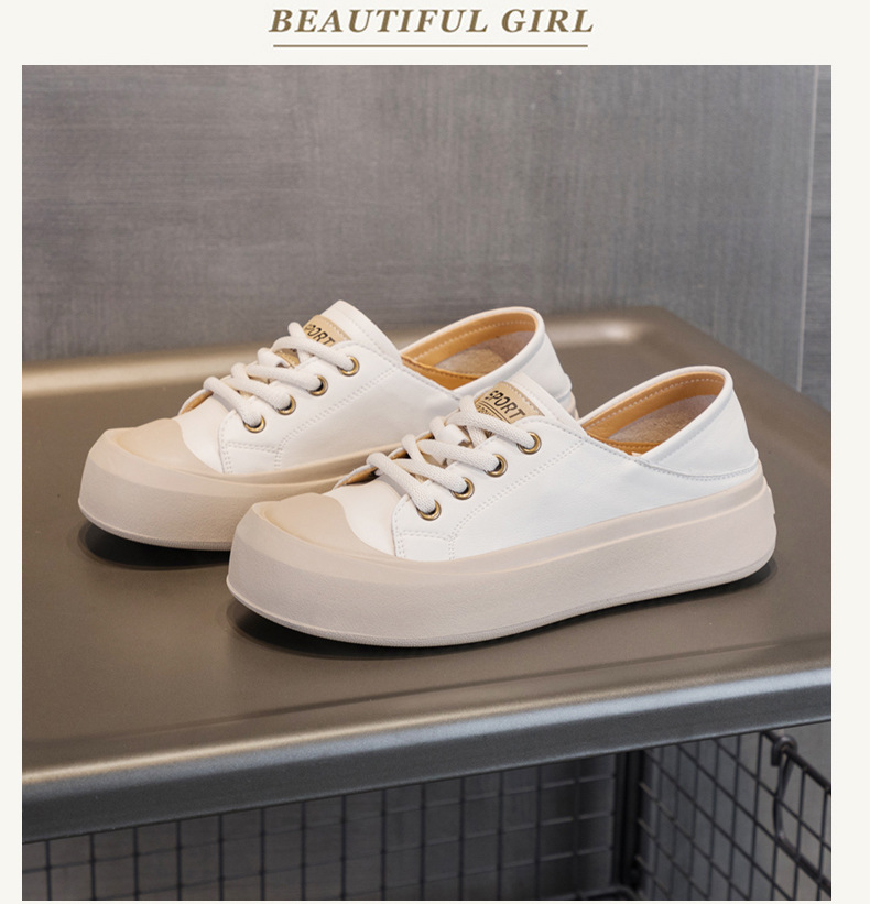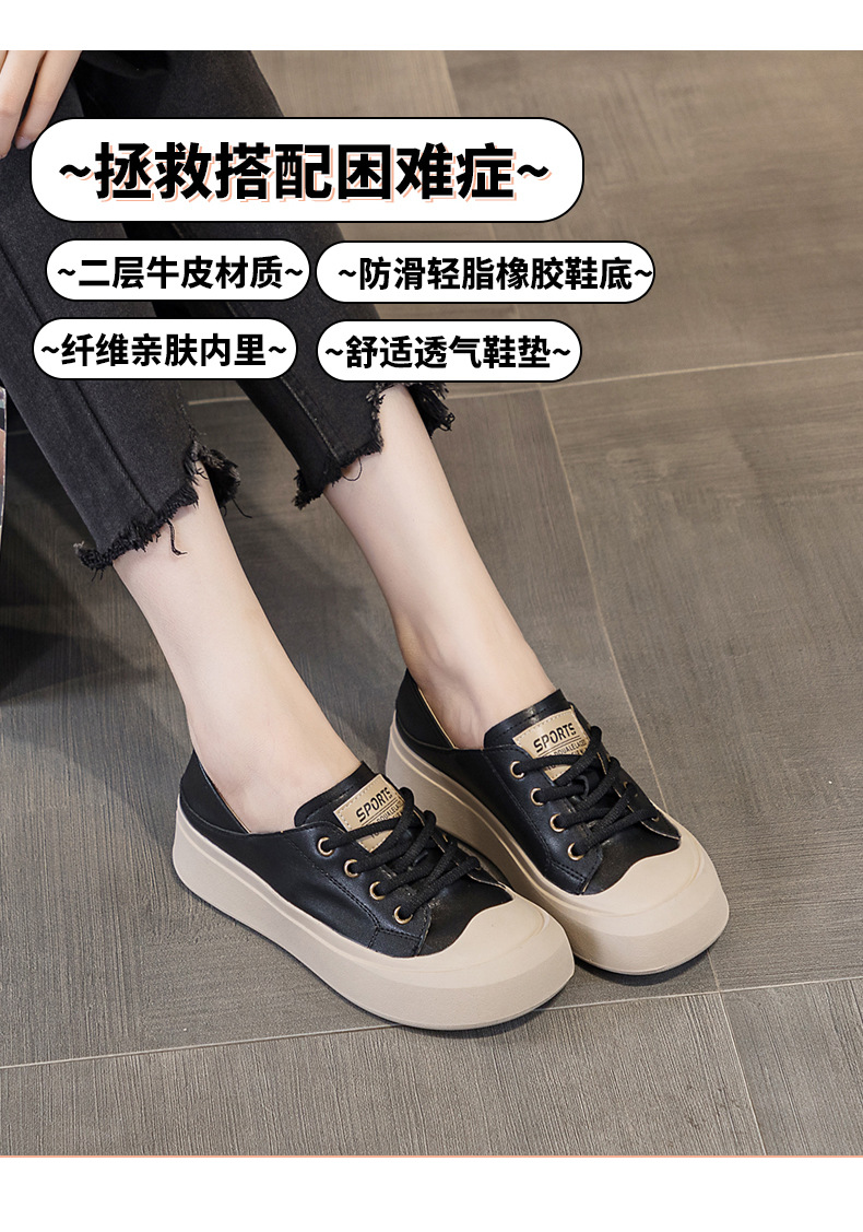 정품 가죽 흰색 신발 여성의 2024 가을 새로운 복고풍 플랫폼 신발 캐주얼 운동화 모든 매치 플러스 사이즈 신발 4143