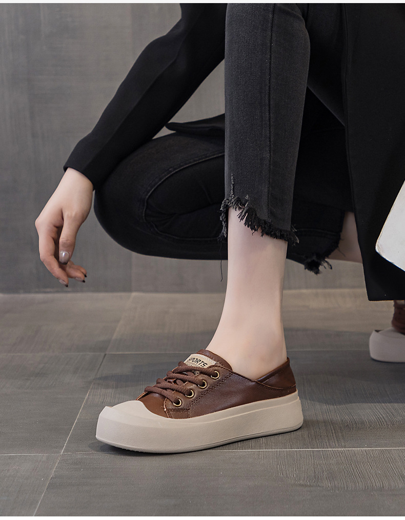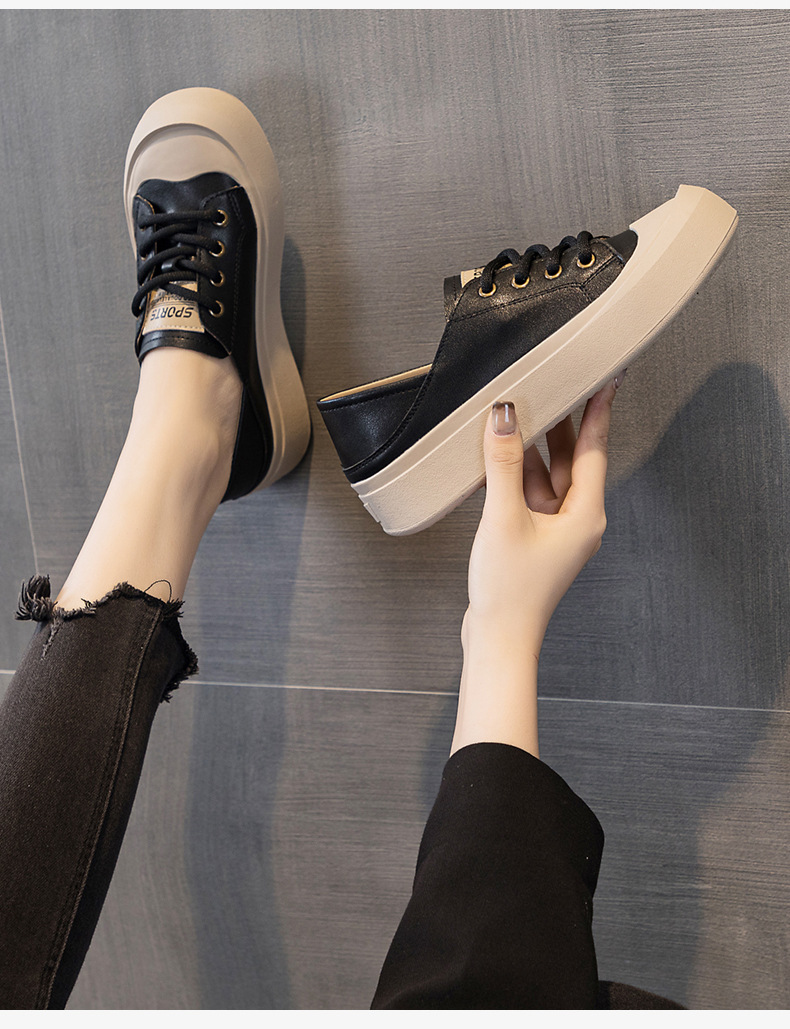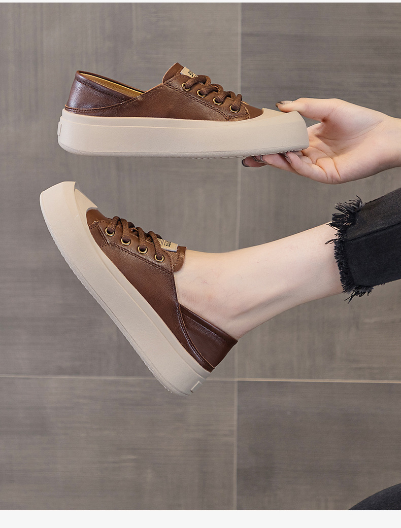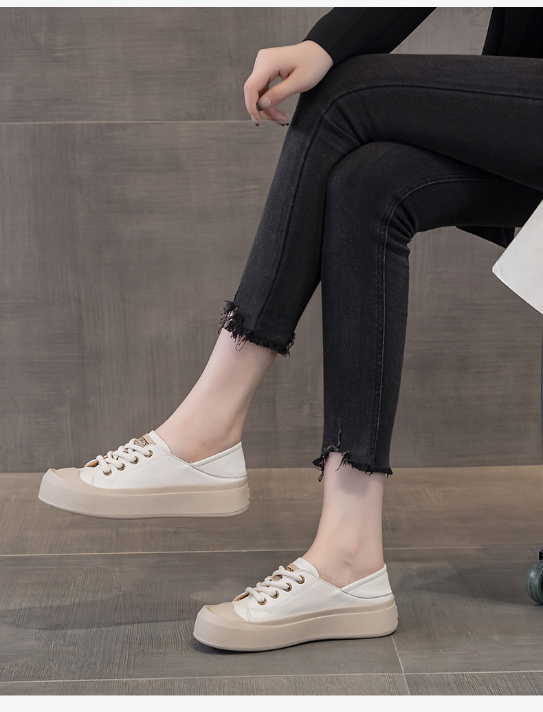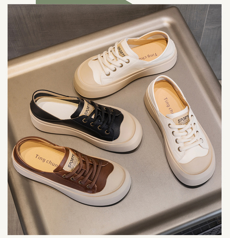 정품 가죽 흰색 신발 여성의 2024 가을 새로운 복고풍 플랫폼 신발 캐주얼 운동화 모든 매치 플러스 사이즈 신발 4143