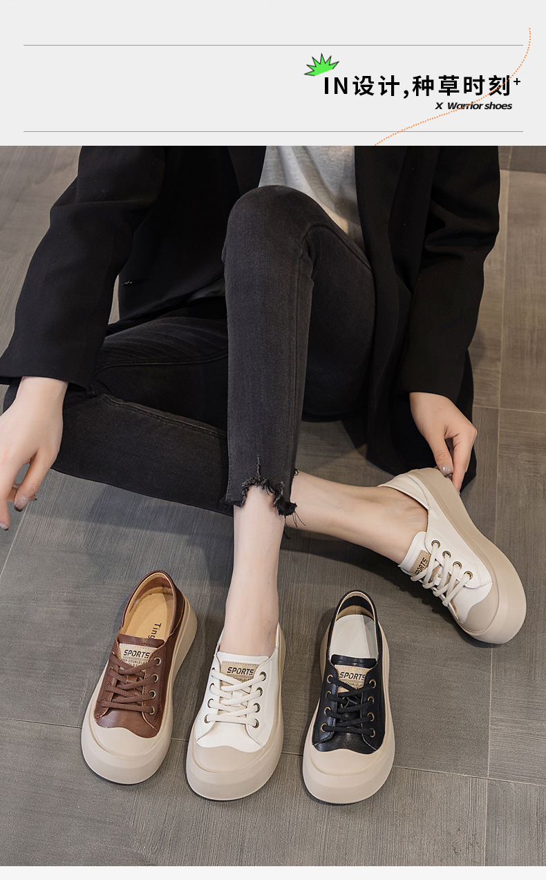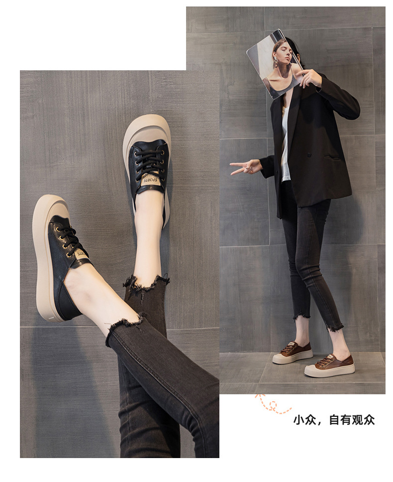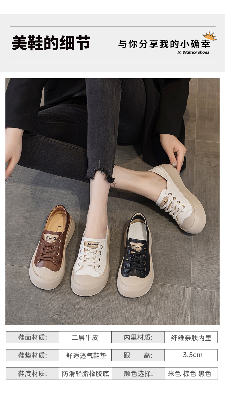 정품 가죽 흰색 신발 여성의 2024 가을 새로운 복고풍 플랫폼 신발 캐주얼 운동화 모든 매치 플러스 사이즈 신발 4143스토어 가기