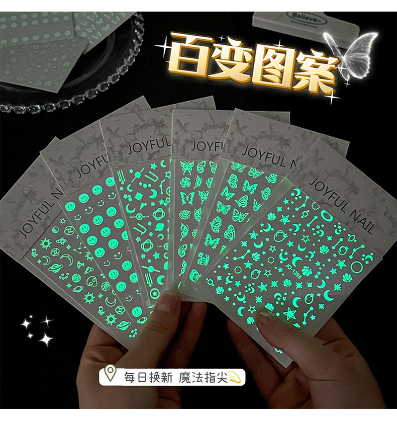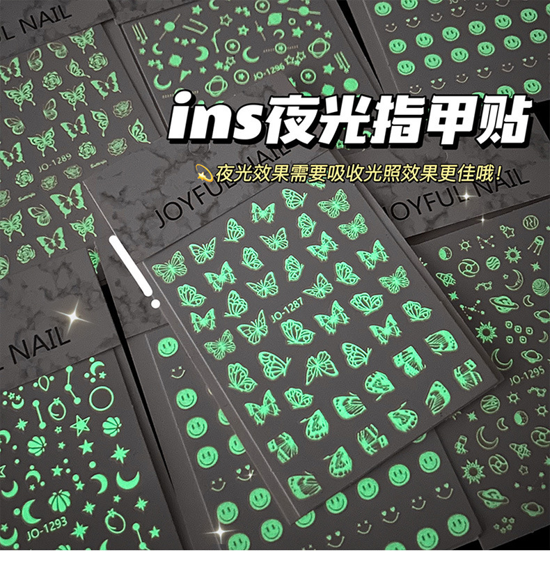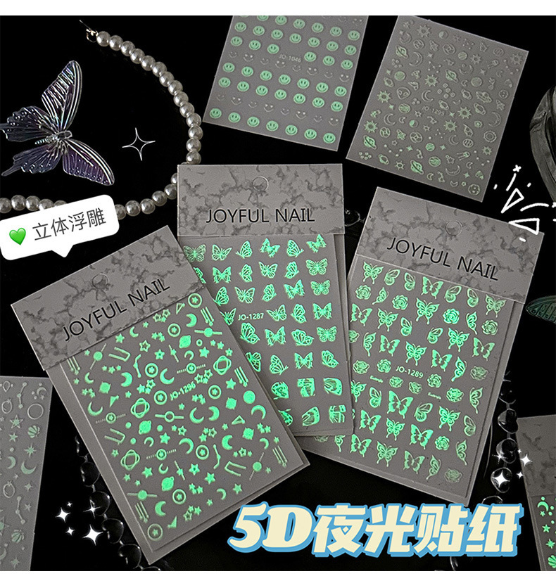 어린이 빛나는 네일 스티커 만화 소녀 귀여운 나비 형광 네일 스티커 높은 색상 가치 빛나는 방수 스티커스토어 가기