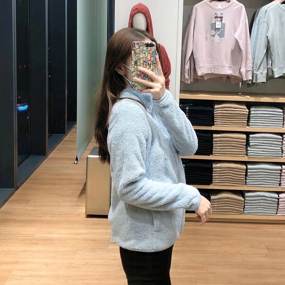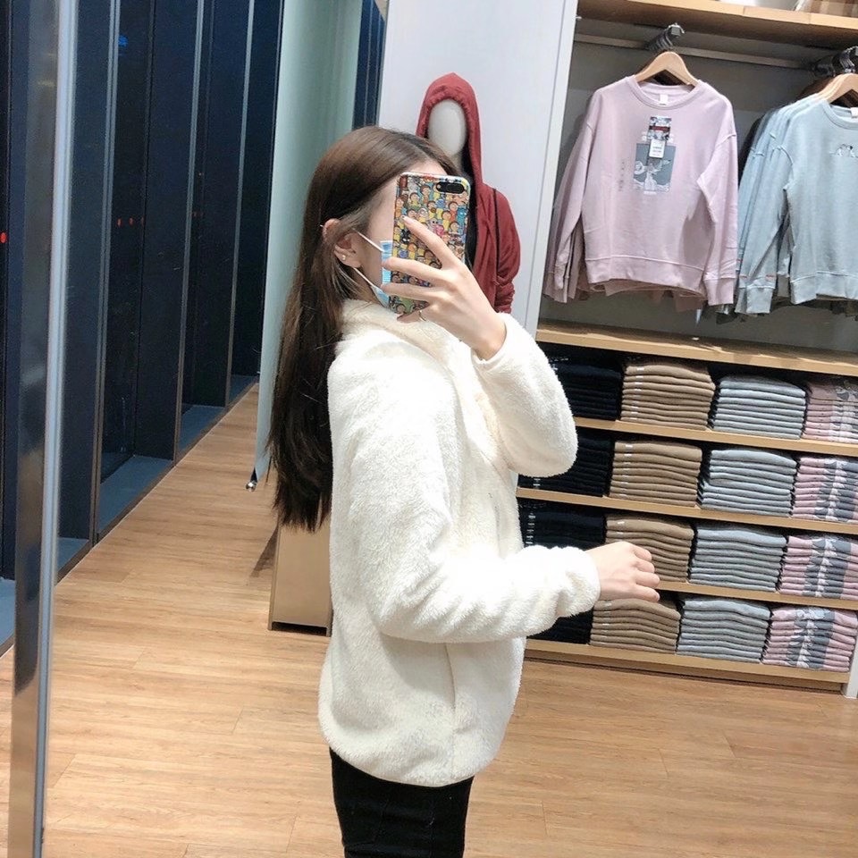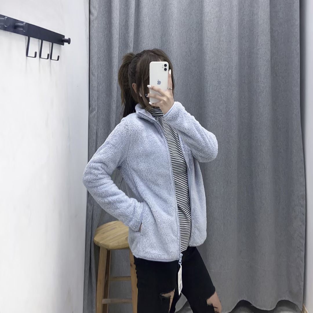 일본 싱글 가을, 겨울 여성 긴 벨벳 폴라 플리스 자켓 긴팔 카디건 스탠드 칼라 따뜻한 자켓 428330 449753스토어 가기