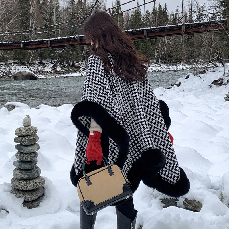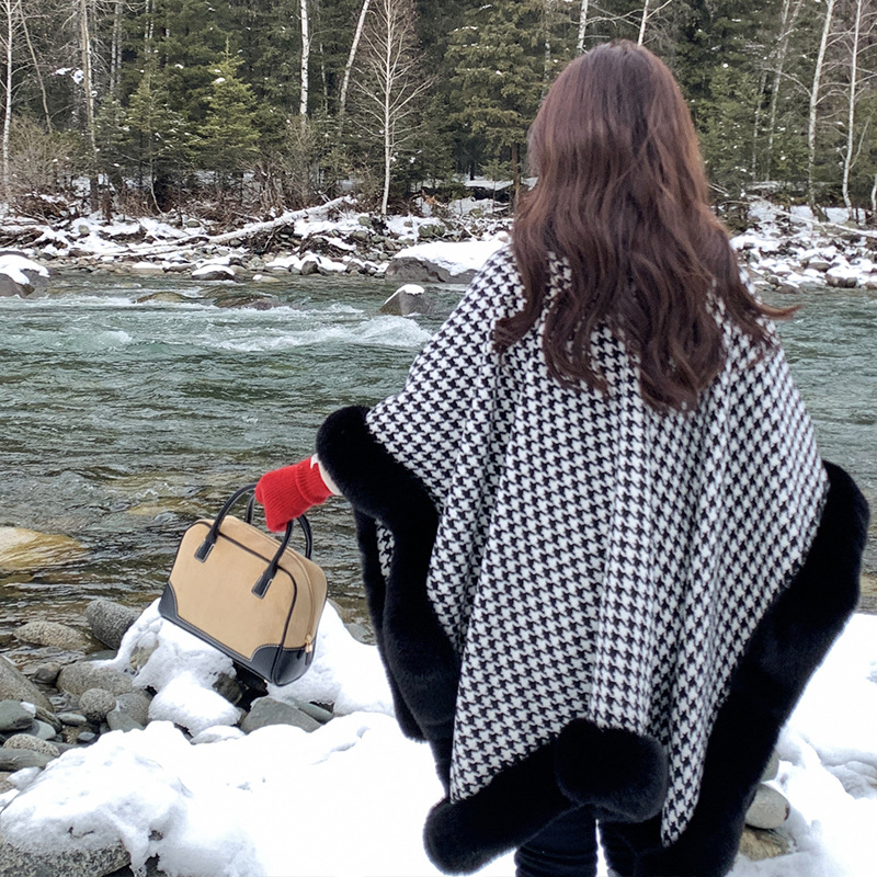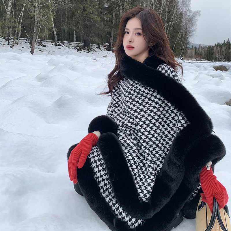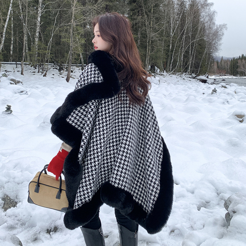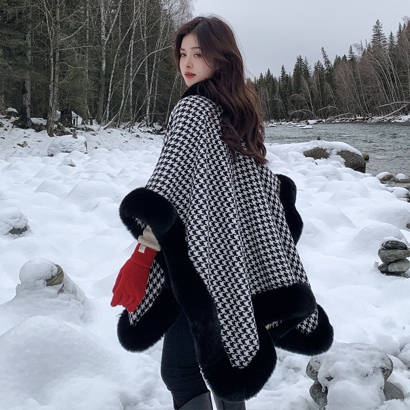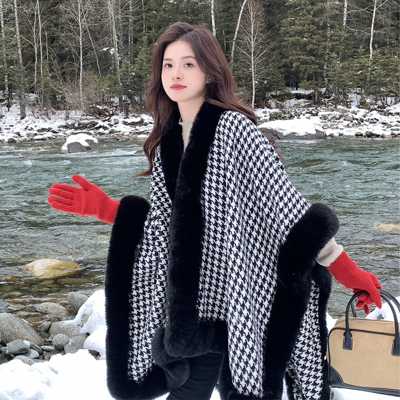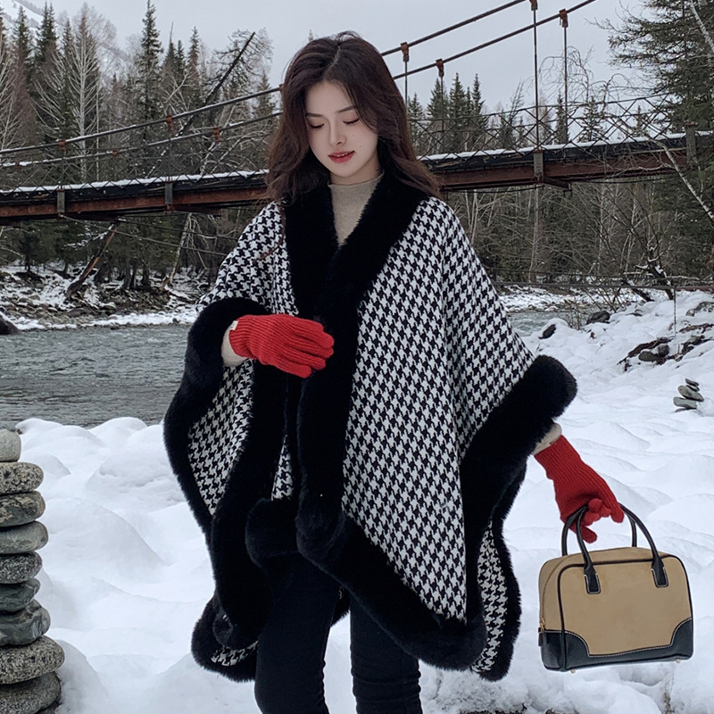 가을과 겨울 따뜻한 판초 모방 렉스 토끼 모피 모피 목걸이 양모 목도리 스카프 판초 여성 판초 코트스토어 가기