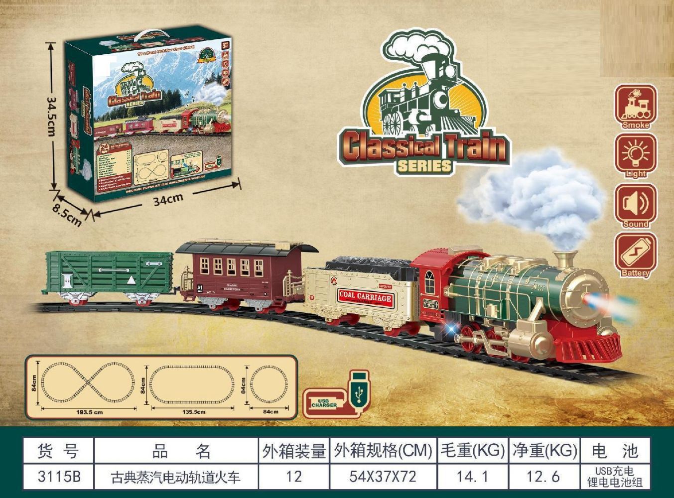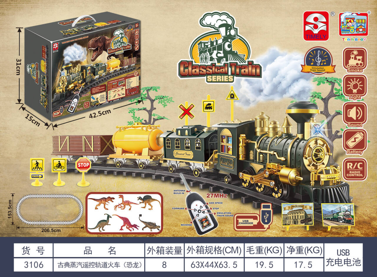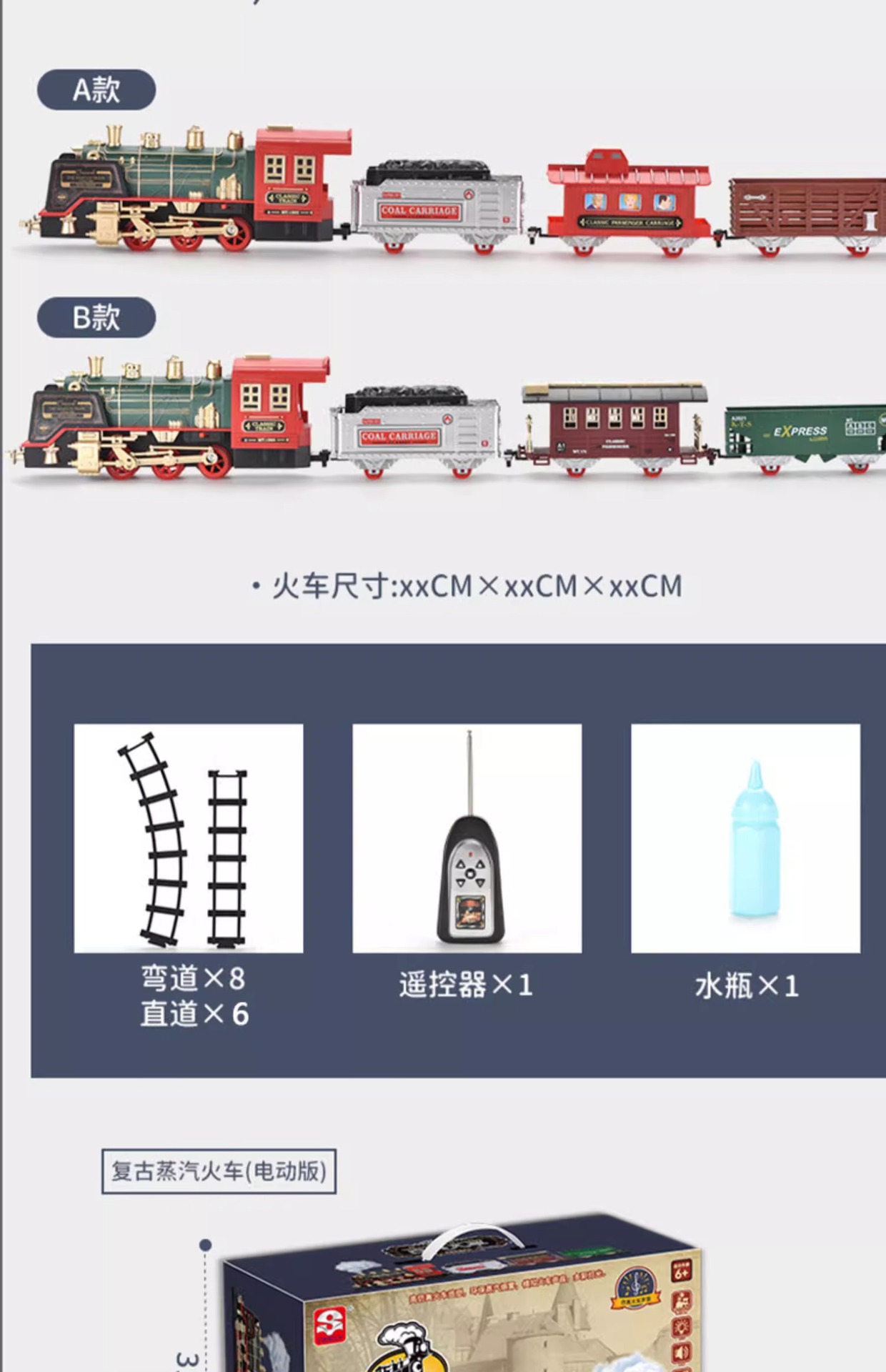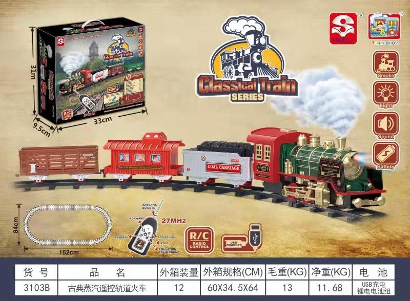 • 3103B 전자상거래 상자 [리튬 배터리가 장착된 원격 제어 트랙] 고전적인 증기, 조명, 음악, 물과 연기