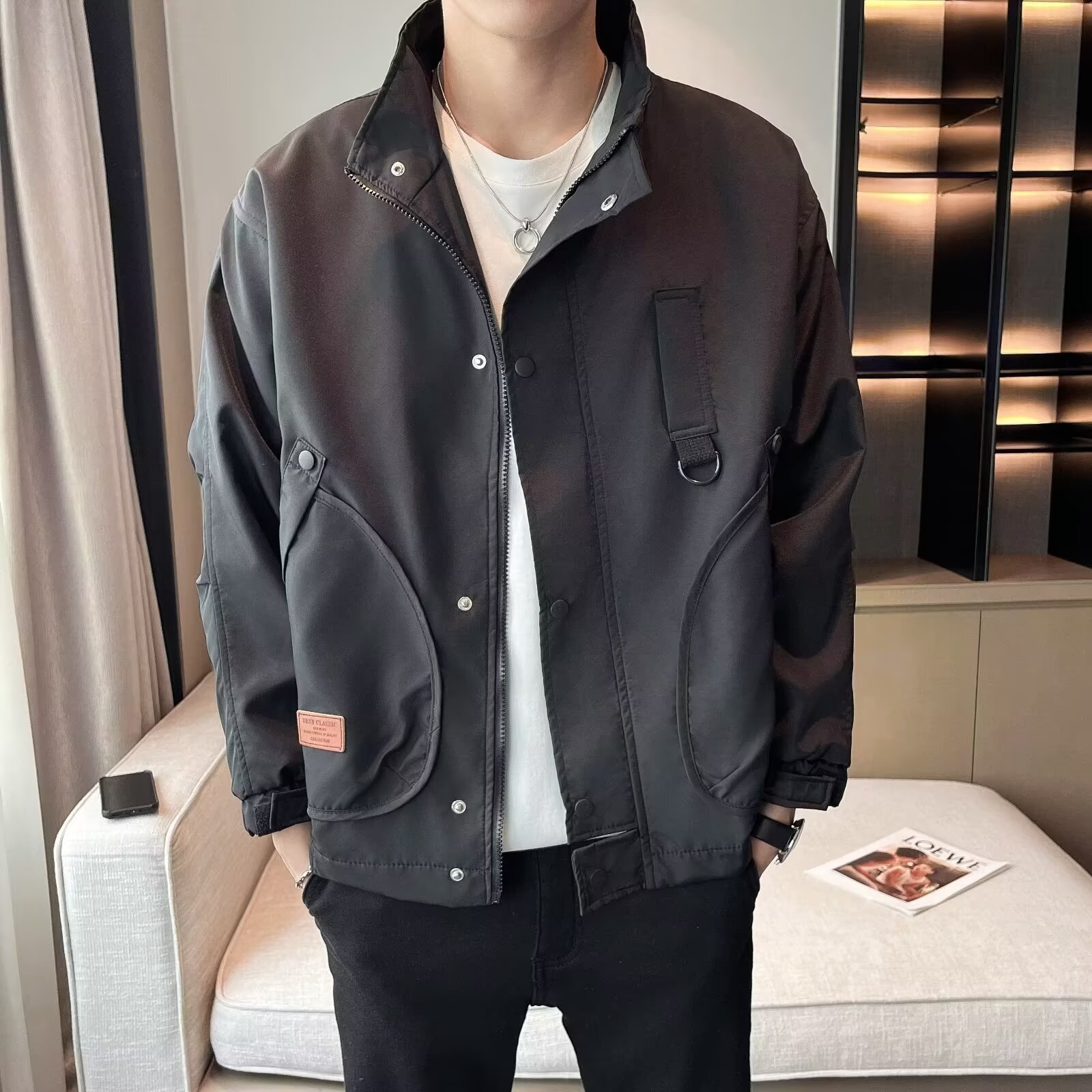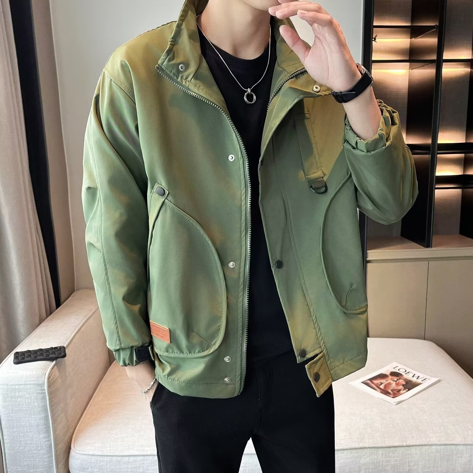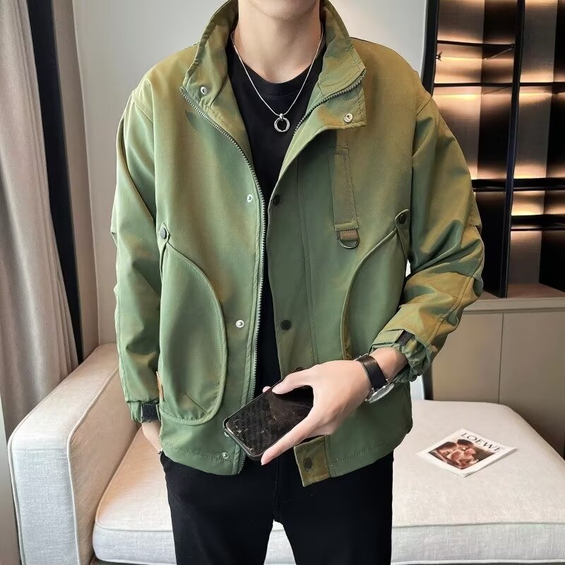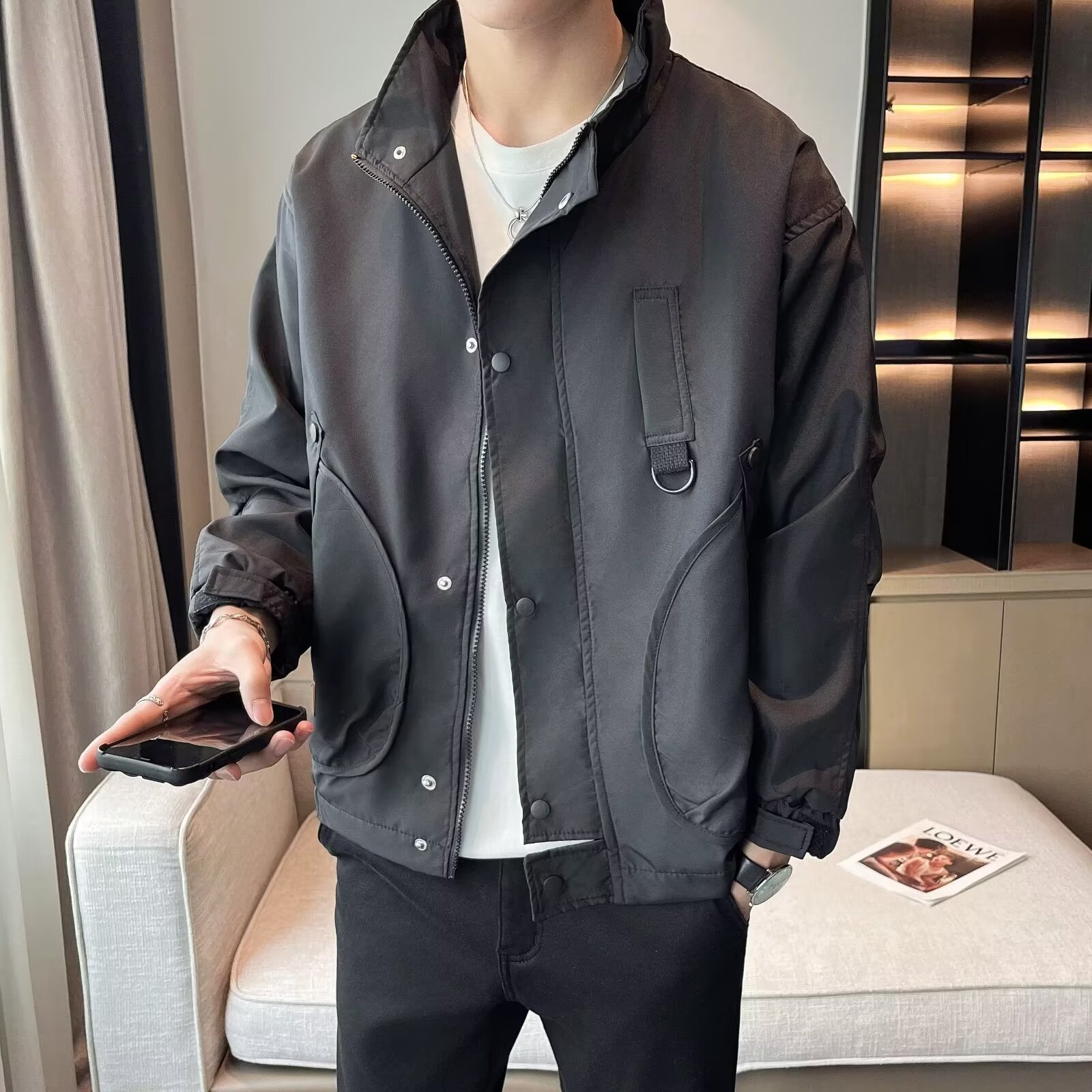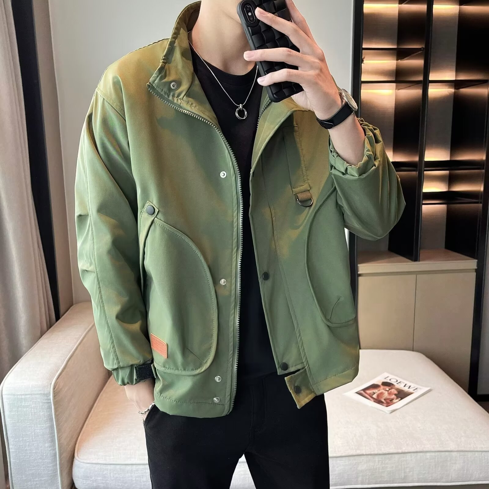 2024 새로운 솔리드 컬러 작업 재킷 남자 봄 가을 패션 재킷 올 매치 슬림핏 한국 스타일 칼라 탑 옷스토어 가기