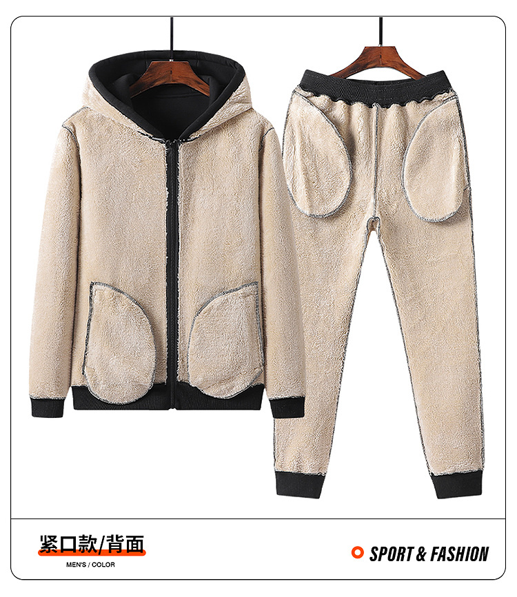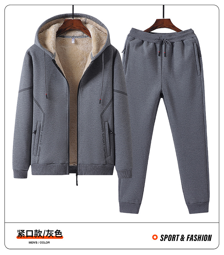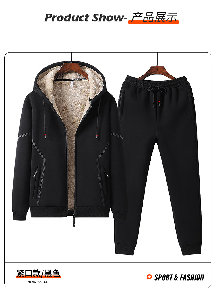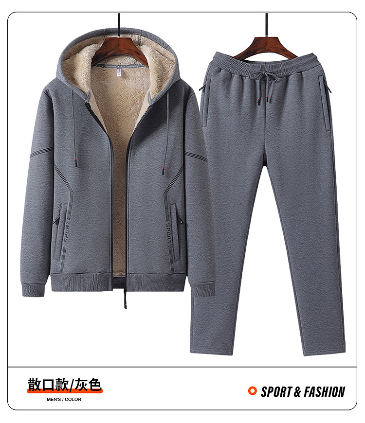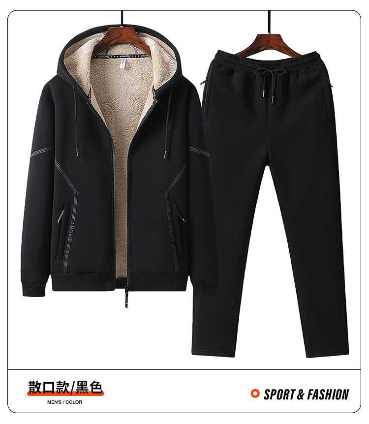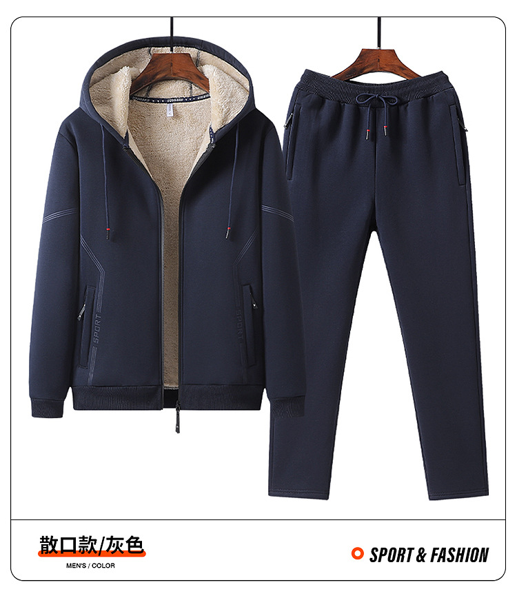 2024 년 새로운 캐시미어 두꺼운 스포츠 세트 가을과 겨울 남자 플러스 사이즈 기모 카디건 투피스 스웨트 셔츠