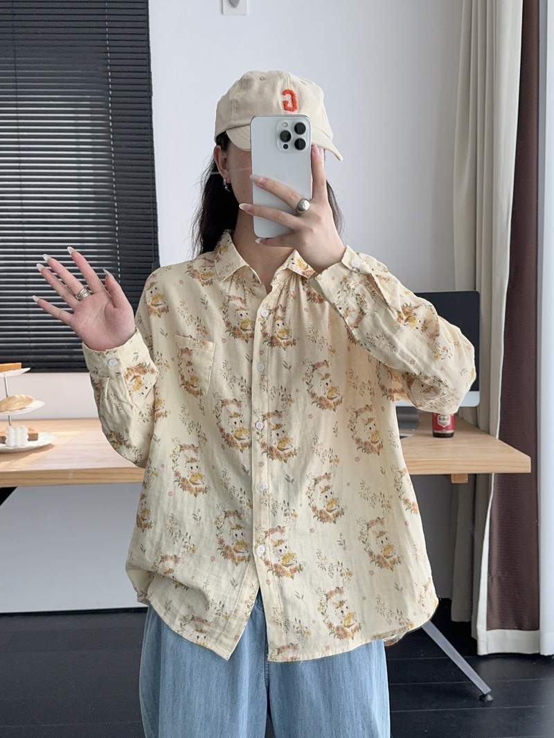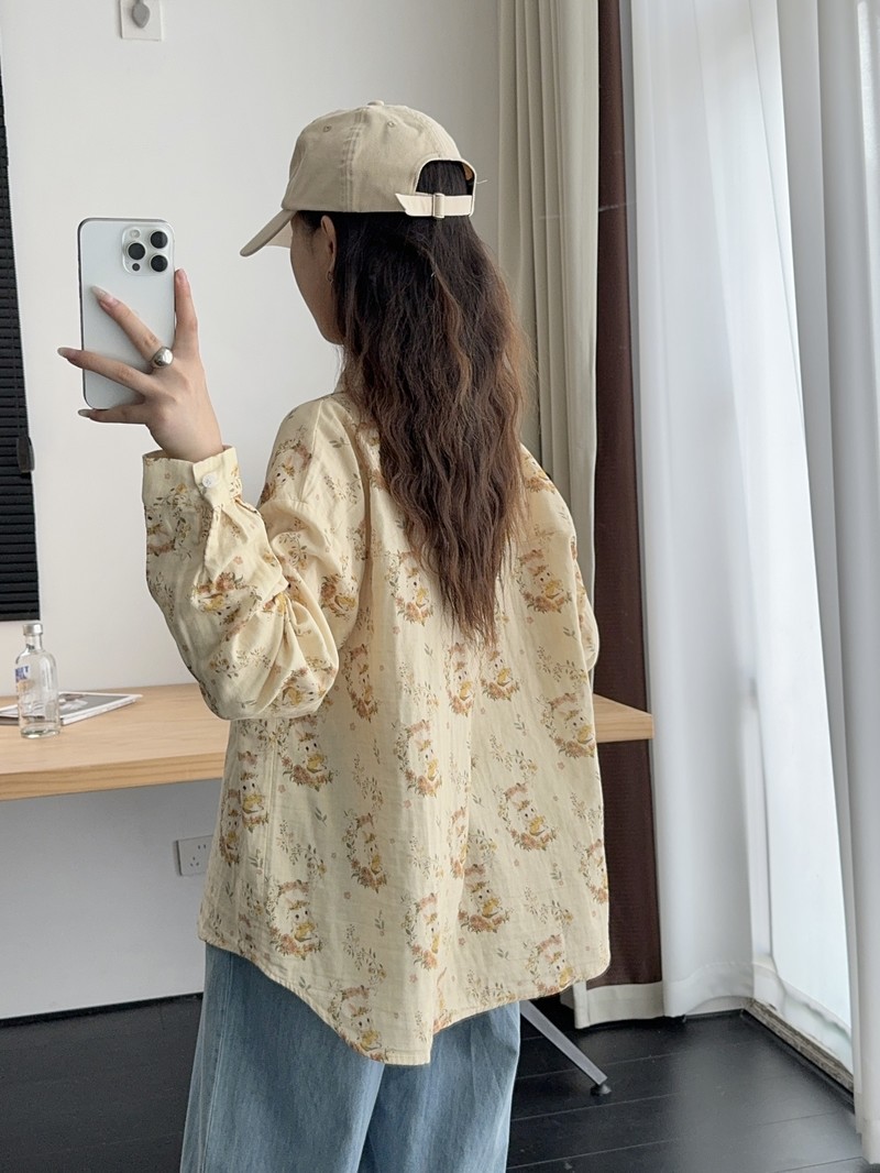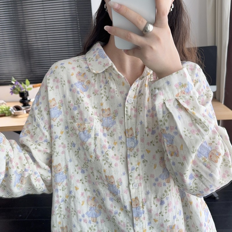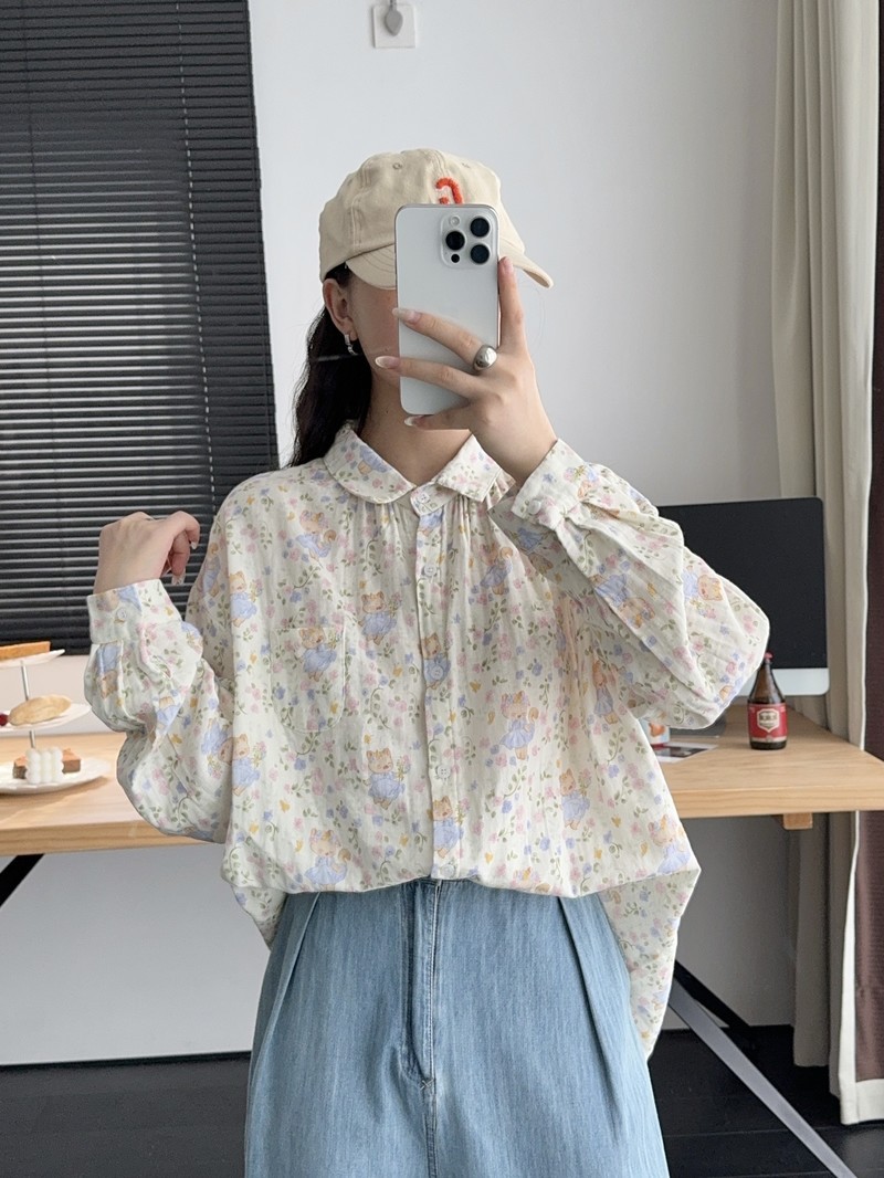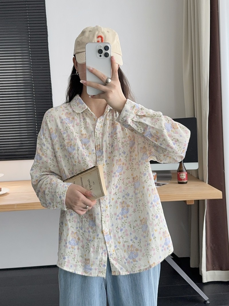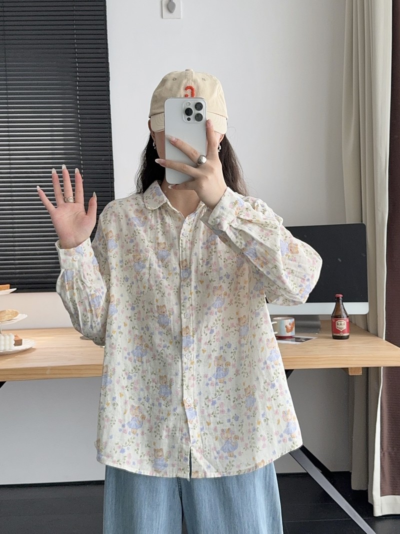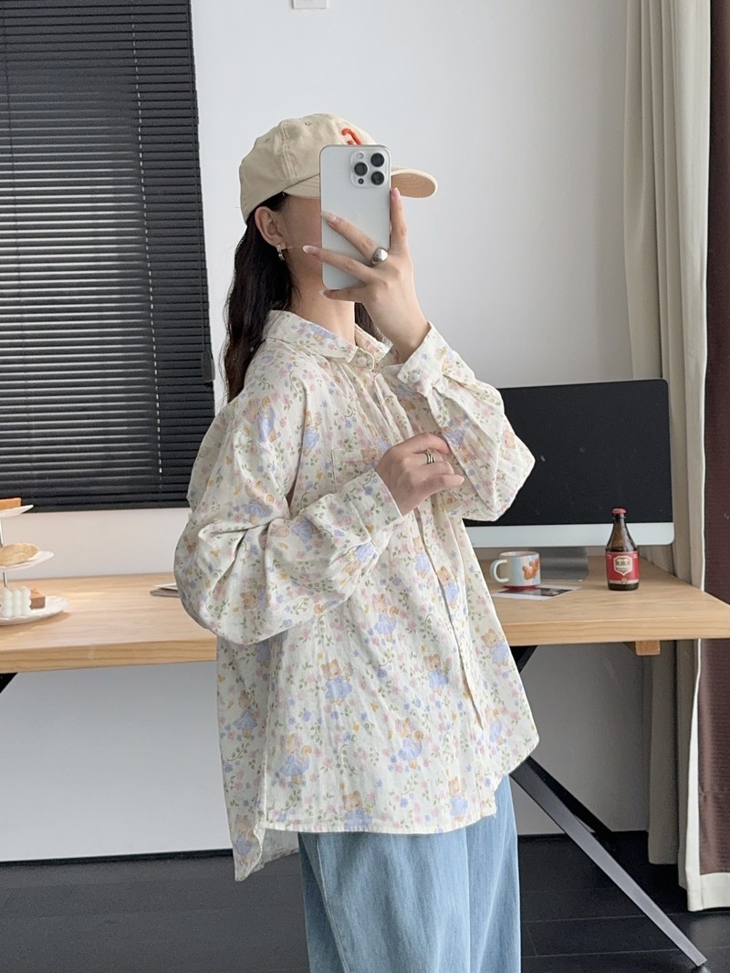 가을 새로운 만화 인쇄 곰 느슨한 여성의 긴 소매 셔츠 가을 탑 베이스 셔츠스토어 가기