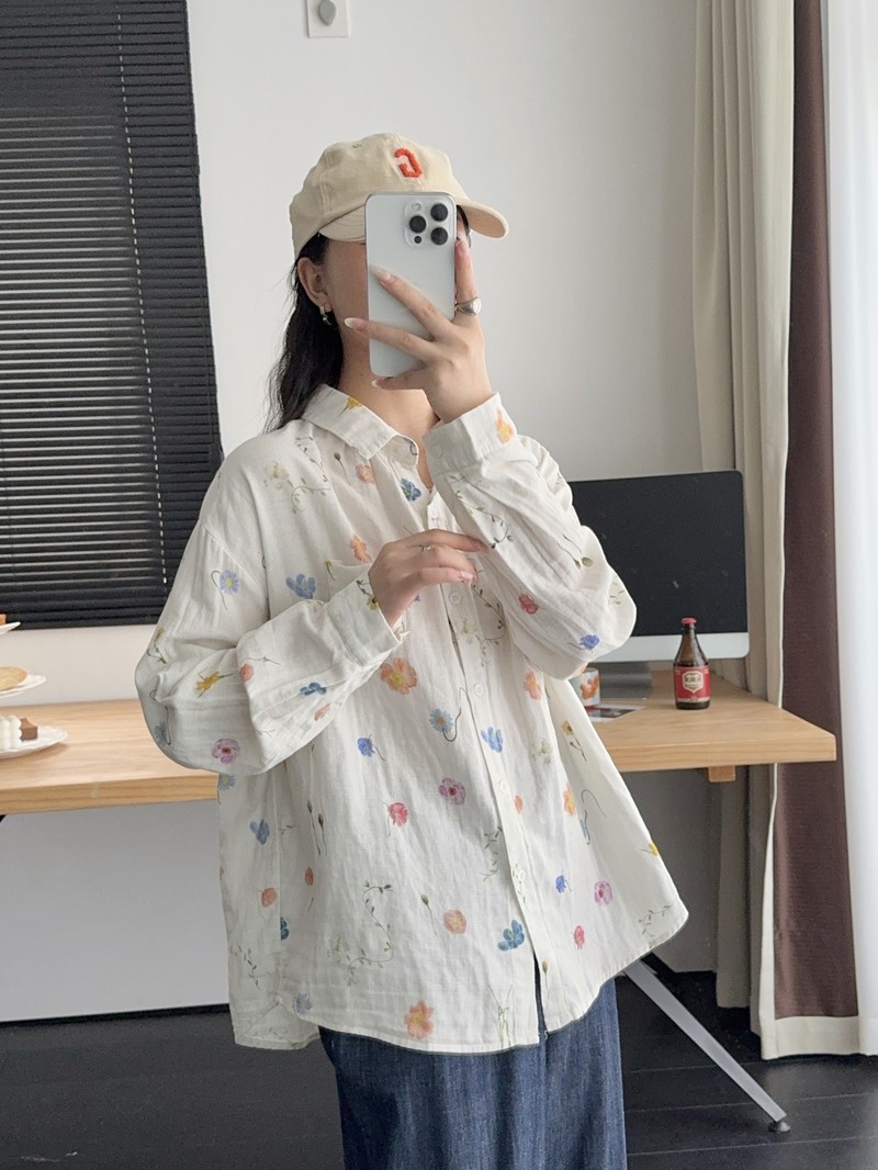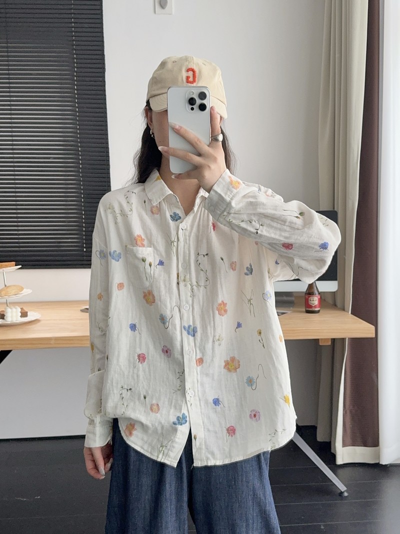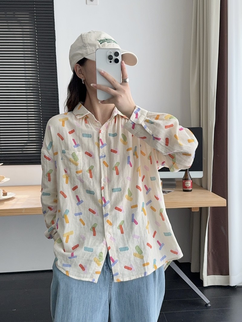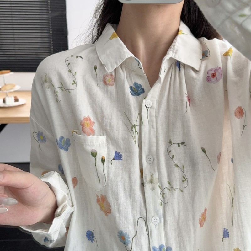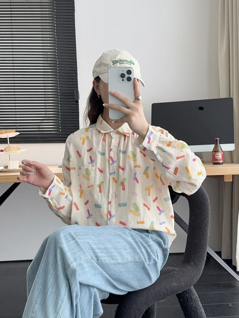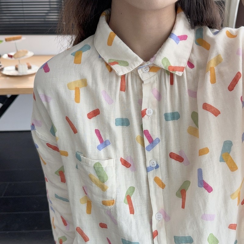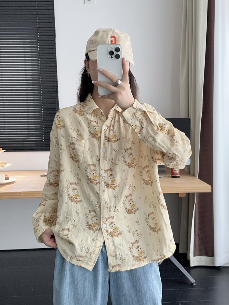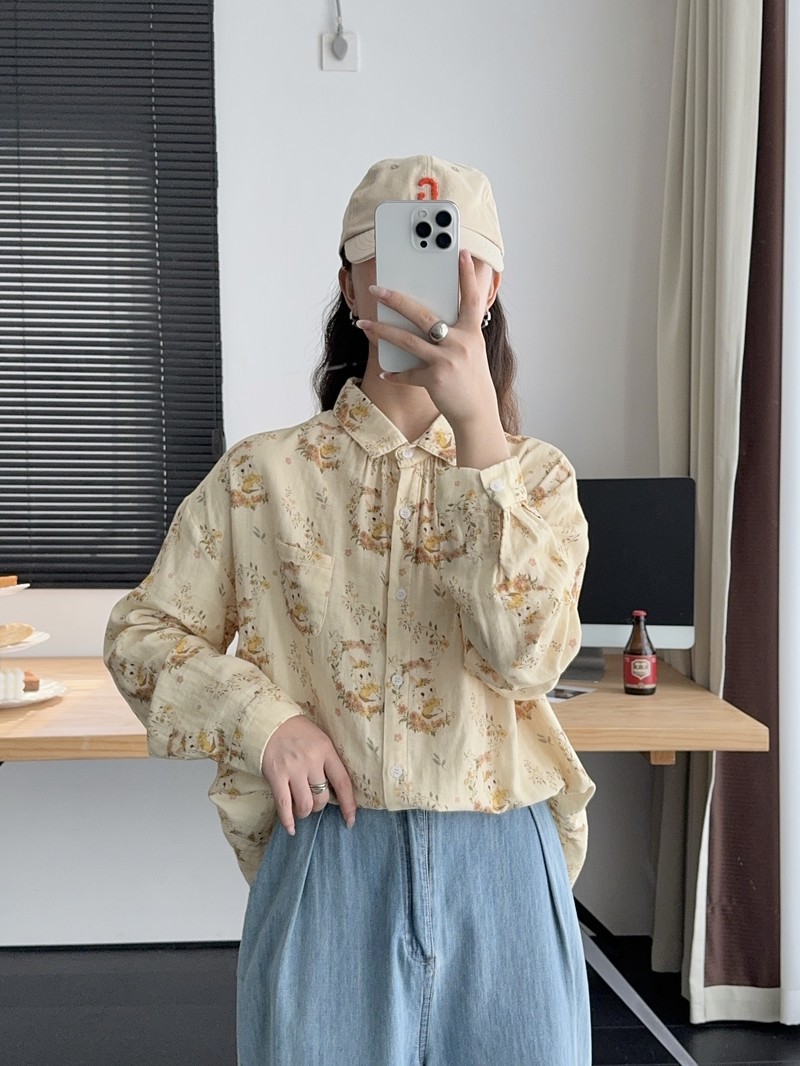 가을 새로운 만화 인쇄 곰 느슨한 여성의 긴 소매 셔츠 가을 탑 베이스 셔츠스토어 가기