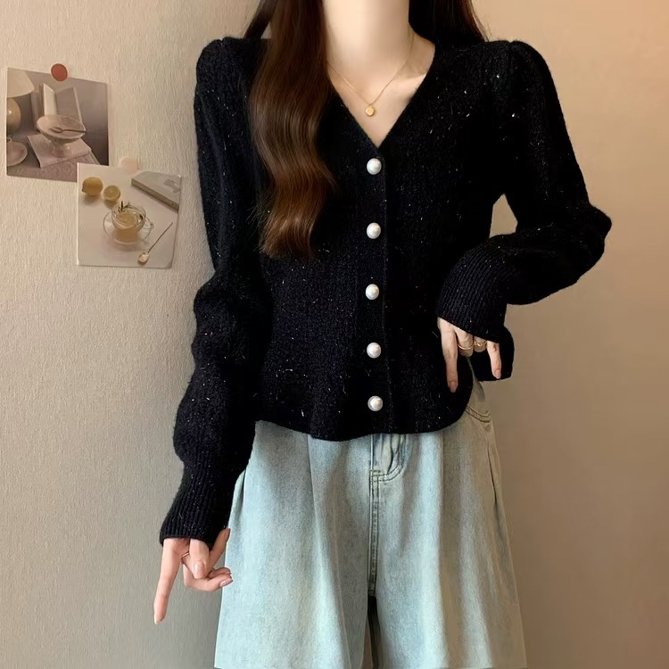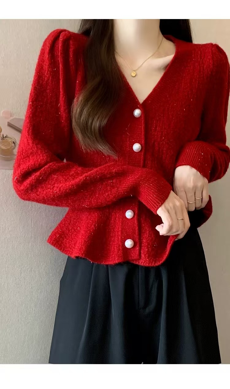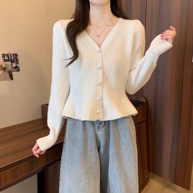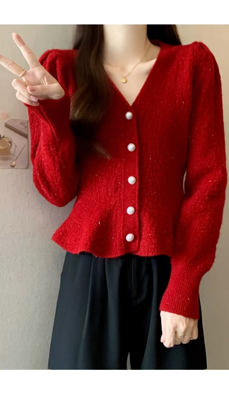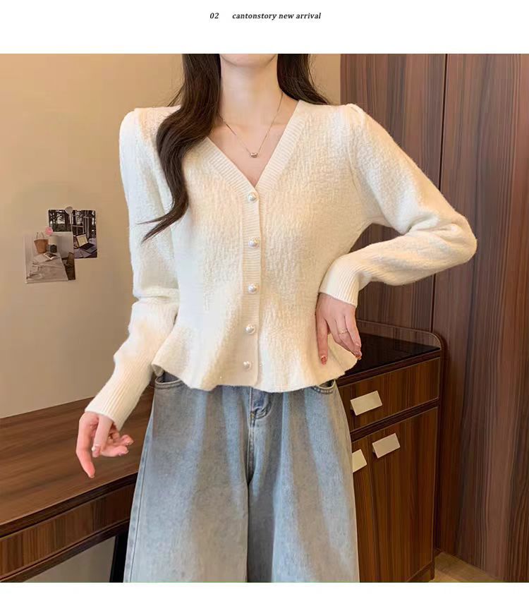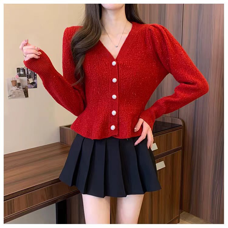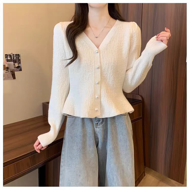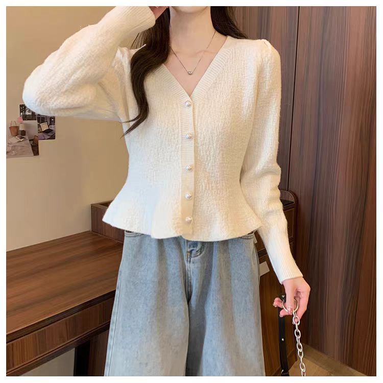 캐시미어 스웨터 코트 여성용 2024 새로운 도착 타이트 허리 우아한 V-넥 샤넬 스타일 니트 카디건 긴팔 슬림 탑스토어 가기