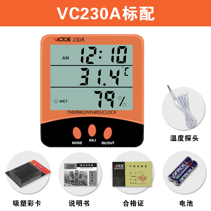 승리 VC230 전자 온도계 가정용 디지털 디스플레이 높은 정밀도 온도 및 습도 측정기 외부 온도 프로브스토어 가기