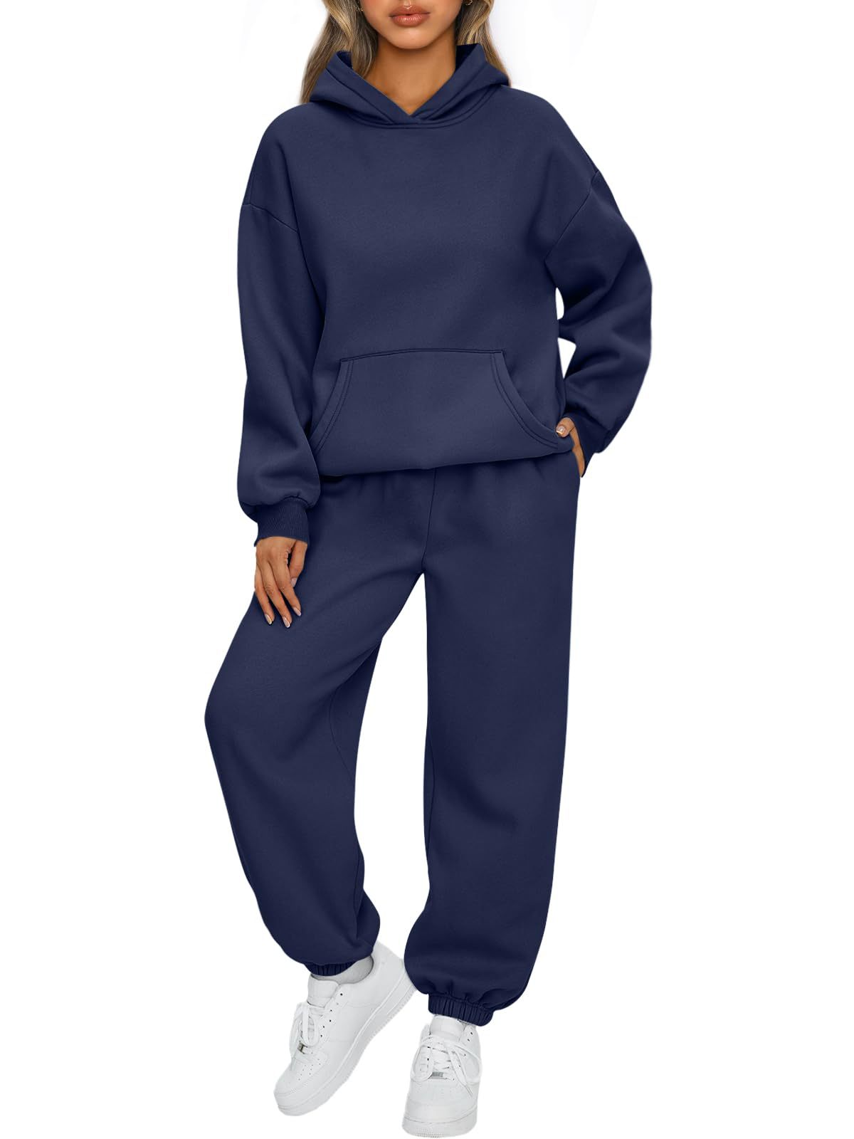 새로운 유럽과 미국의 대외 무역 가을과 겨울 새로운 아마존 남녀 2 피스 캐주얼 후디 운동복 바지 세트스토어 가기