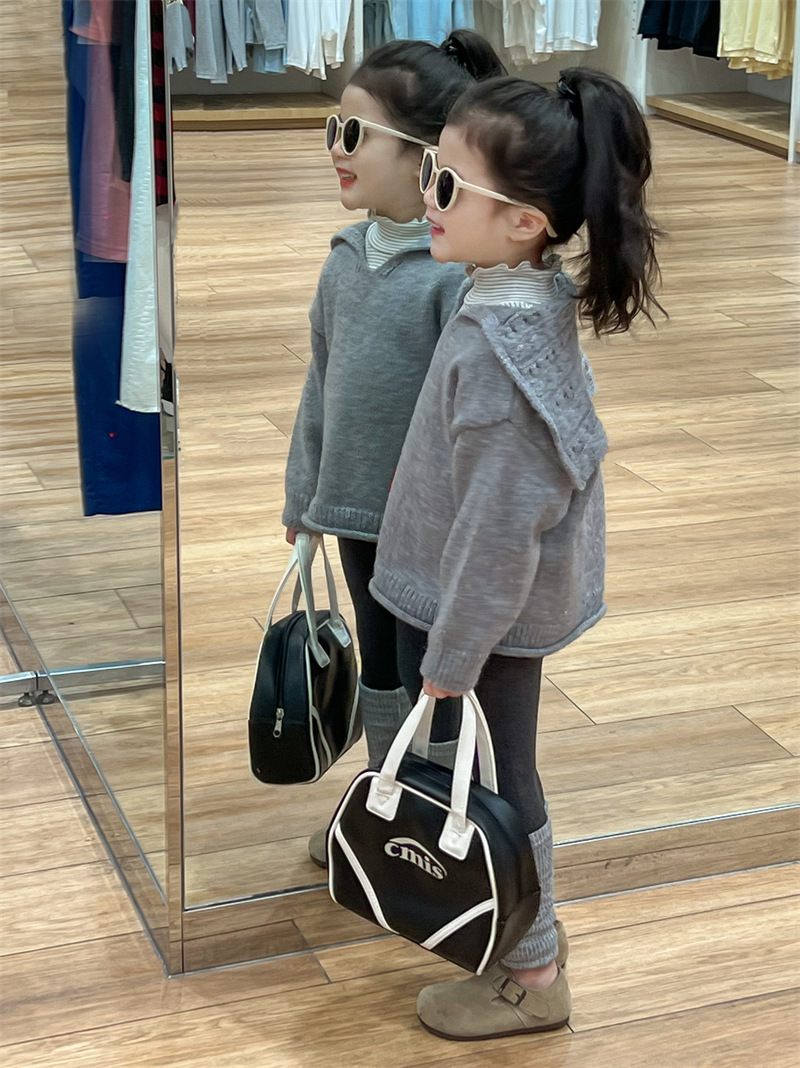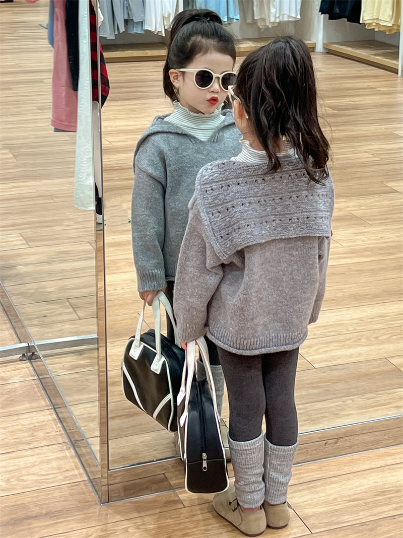 한국 스타일 여자 울 스웨터 2024 가을 새 스타일 그레이 라펠 목도리 스웨터 탑스토어 가기