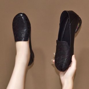 봄과 가을 2024 새로운 레트로 라운드 헤드 수 놓은 어머니 신발 낮은 발 사계절 싱글 신발 작은 가죽 신발스토어 가기