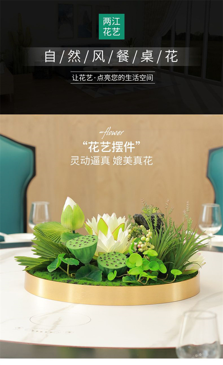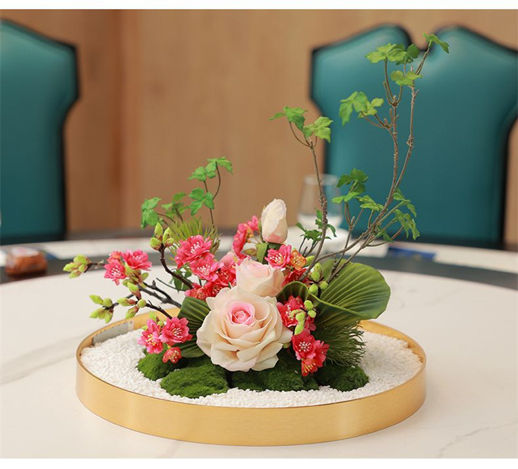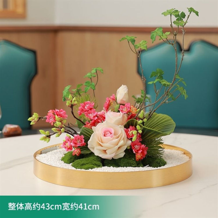 호텔 라운드 테이블 중간 턴테이블 꽃 장식 홈 거실 시뮬레이션 꽃 호텔 레스토랑 테이블 장식 장식품스토어 가기