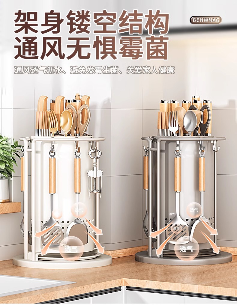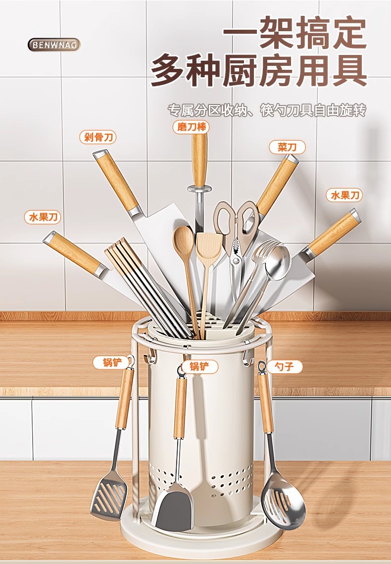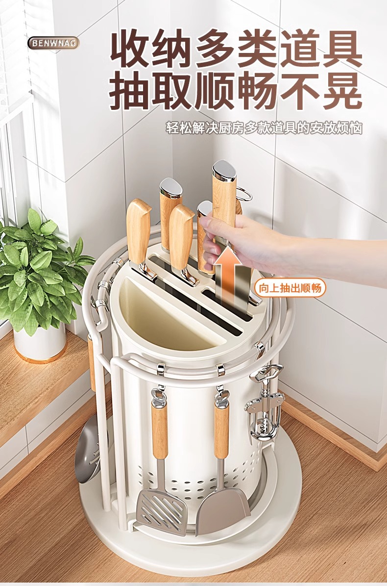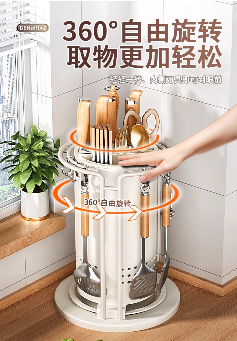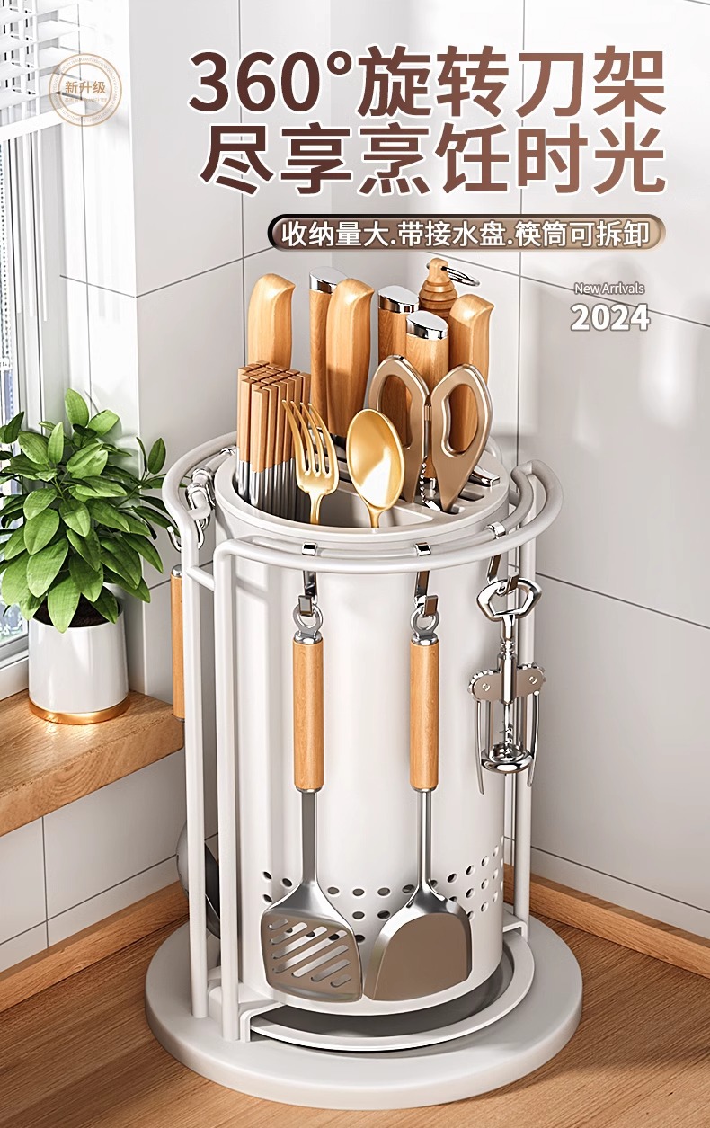 주방 회전 칼 랙 스토리지 랙 주걱 스푼 젓가락 튜브 주방 칼 홀더 통합 스토리지 박스 다기능 홈 아티팩트스토어 가기