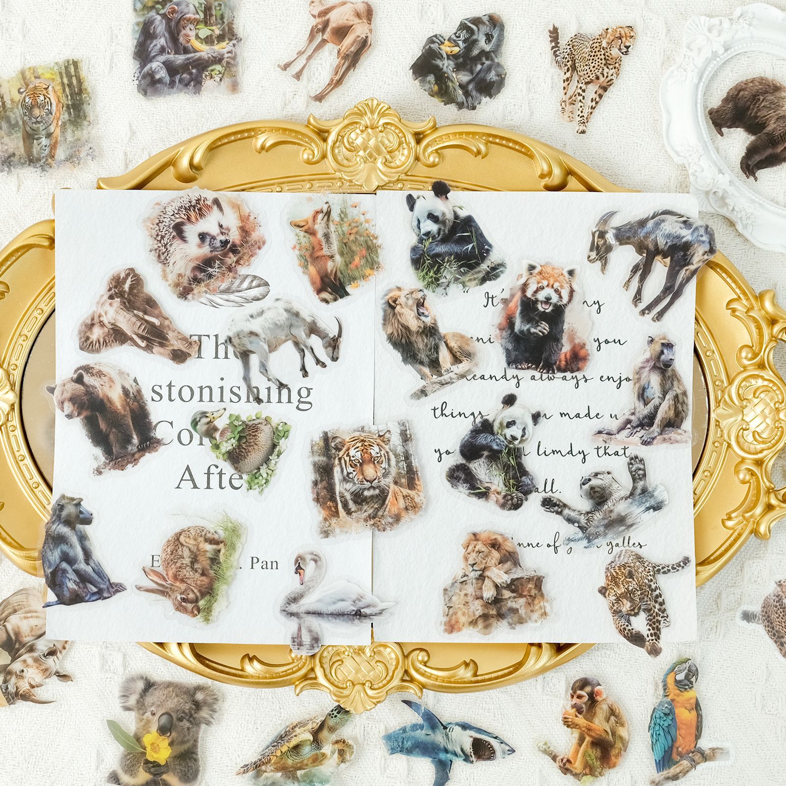 50 현실적인 동물 스티커 투명 방수 비 반복 장식 스티커 어린이 계몽 스티커 창조적 인 손 계정스토어 가기