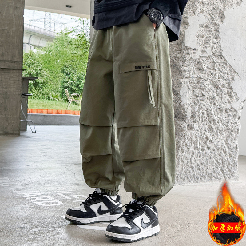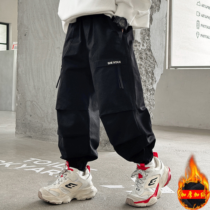남아용 두꺼운 기모 작업복 바지, 아동용 겨울 스포츠 바지, 스타일리쉬한 2025년 신상 남아용 긴바지, 캐주얼 바지, 트렌디스토어 가기
