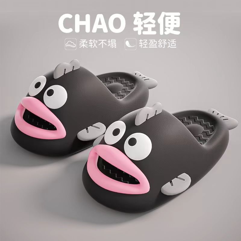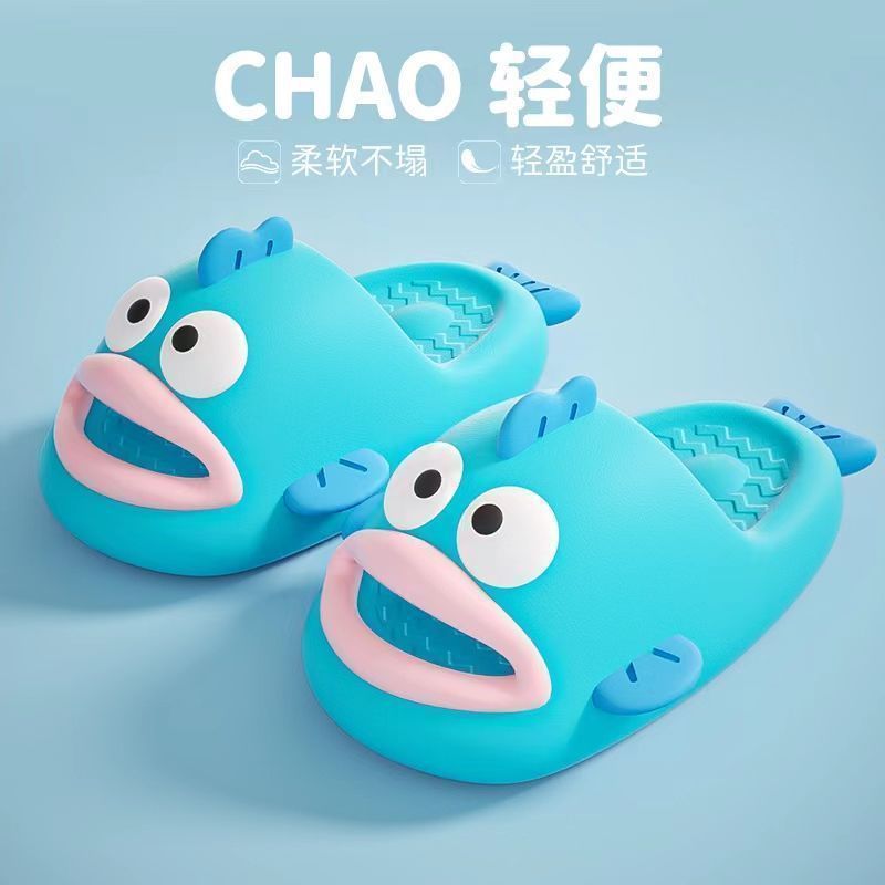 Chan Mei의 여름 미운 생선 슬리퍼 여성의 똥 느낌 홈 슬리퍼는 귀여운 재미있는 부모-자식 샌들을 입을 수 있습니다.스토어 가기