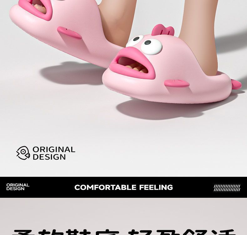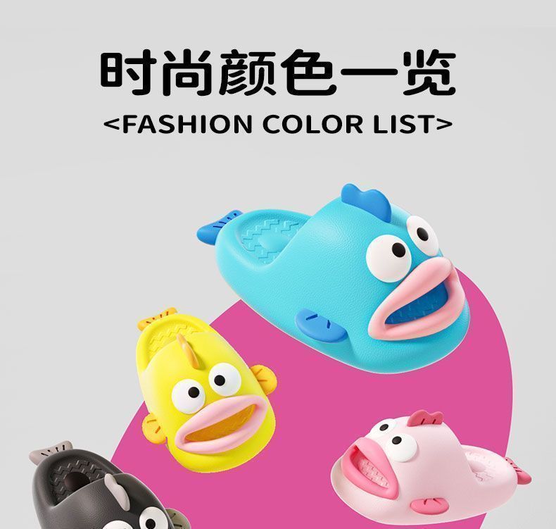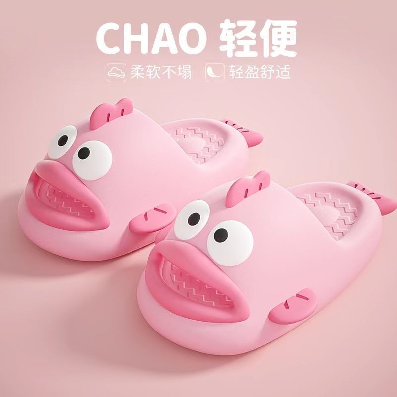 Chan Mei의 여름 미운 생선 슬리퍼 여성의 똥 느낌 홈 슬리퍼는 귀여운 재미있는 부모-자식 샌들을 입을 수 있습니다.