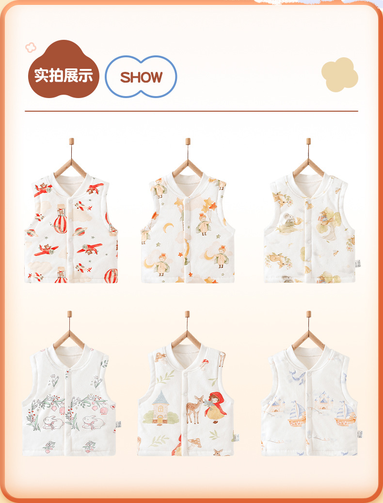 아기 조끼, A급 40g 순면 봄, 가을 신생아 의류, 남녀 아기들이 밖에서 입을 수 있는 퀼팅 따뜻한 조끼스토어 가기