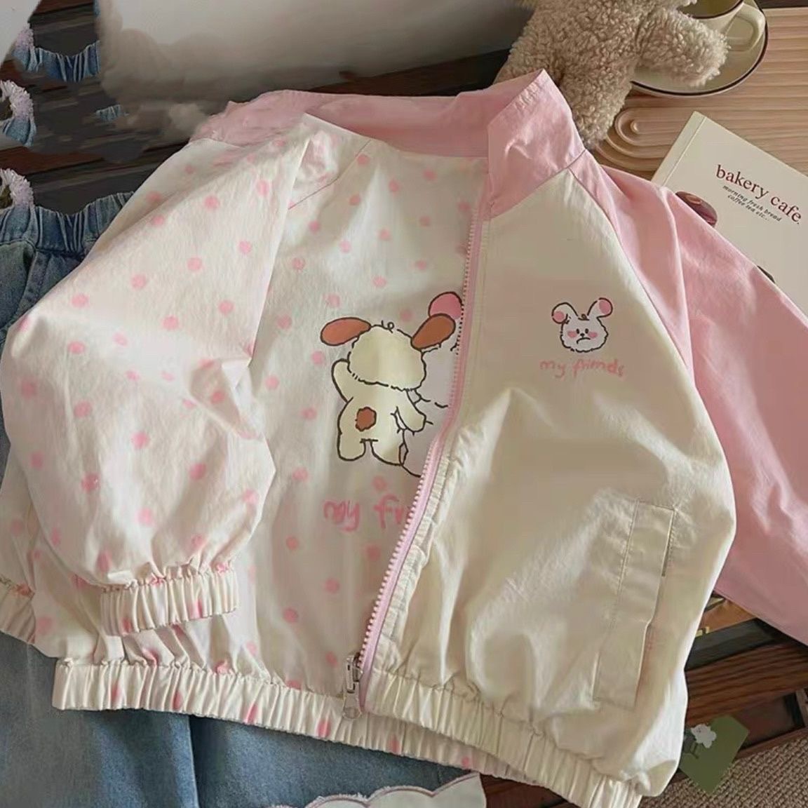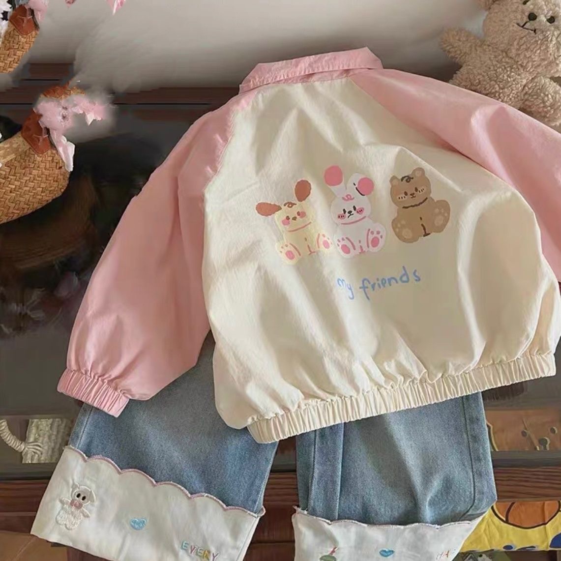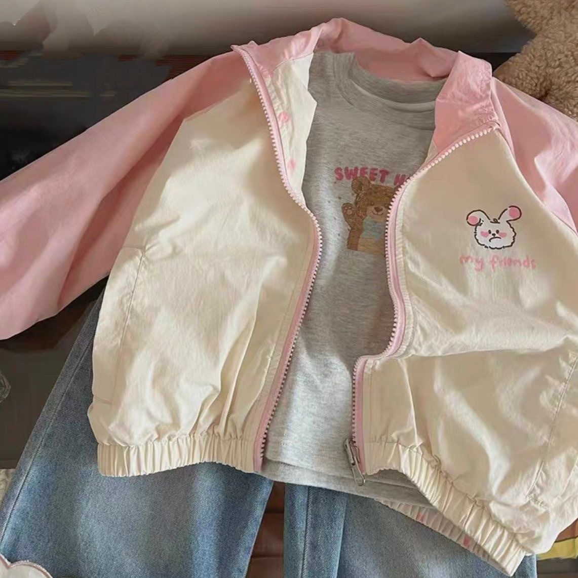 한국 아동복 소녀 핑크 코트 가을 새로운 어린이 패션 세련된 아기 귀여운 콘트라스트 카디건 트렌디