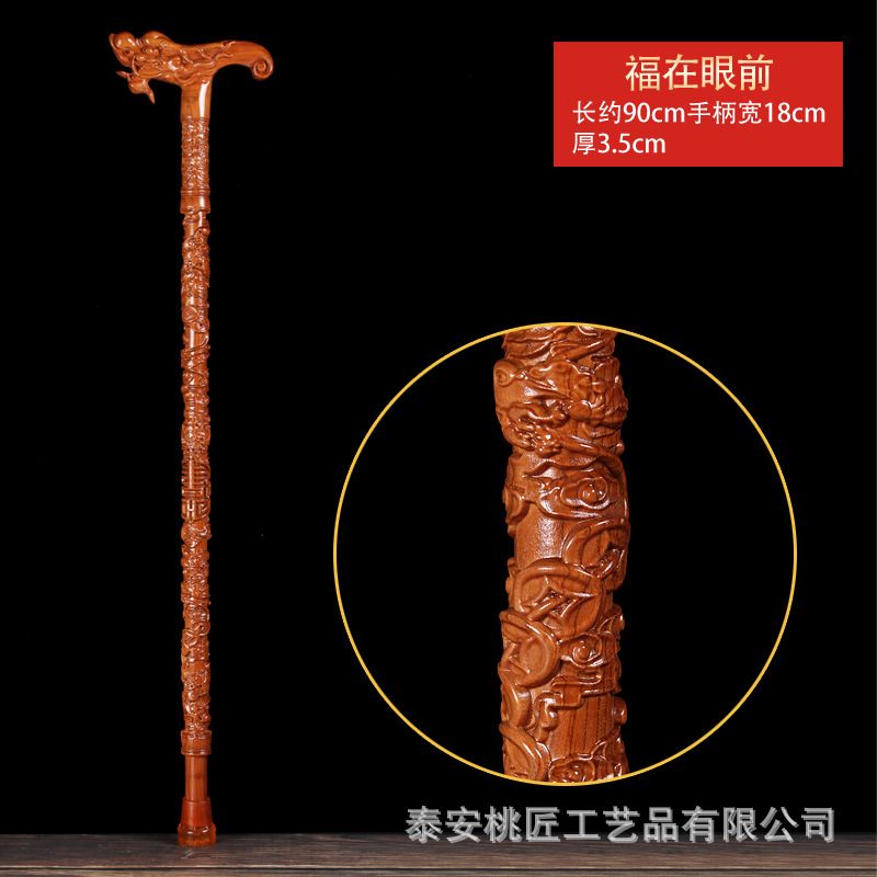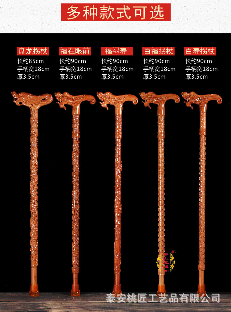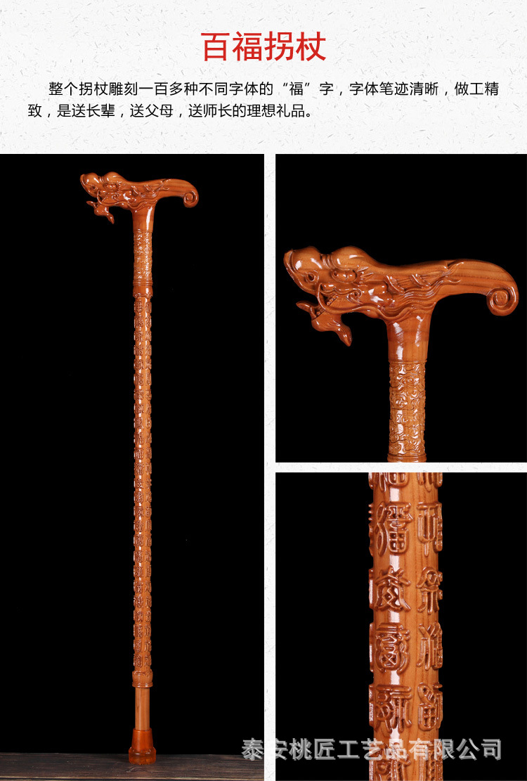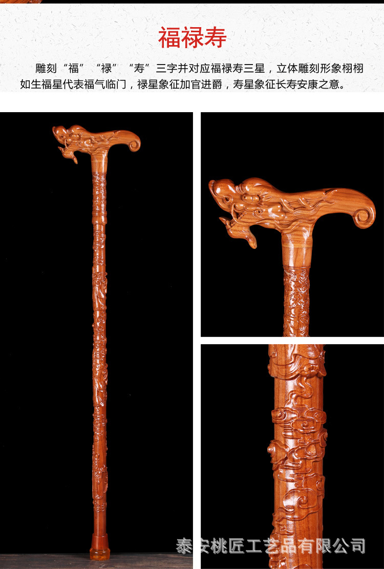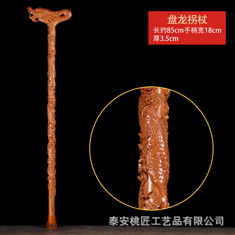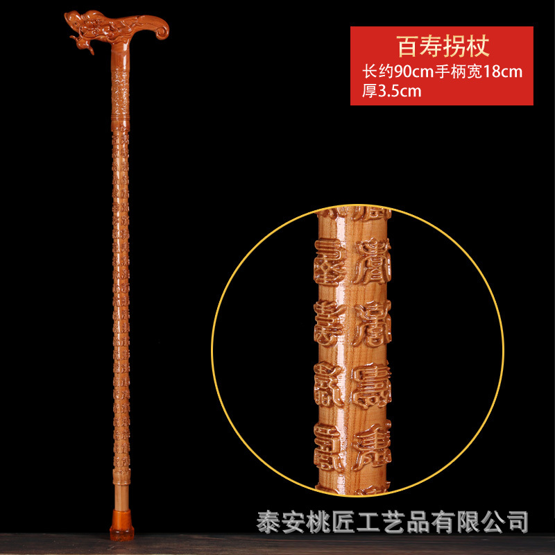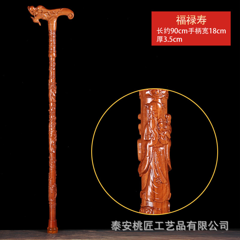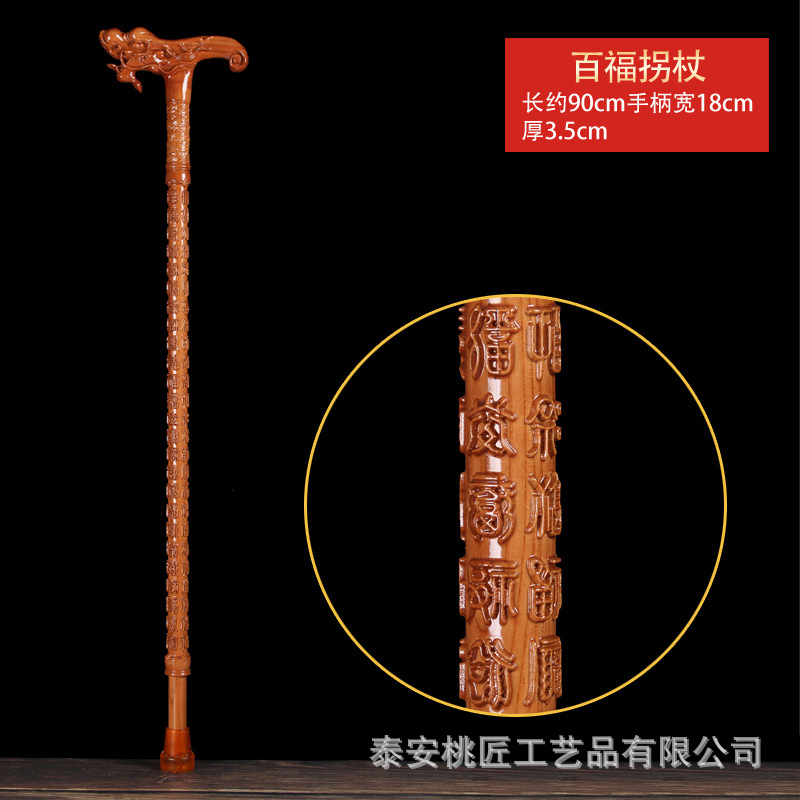 노인 단단한 나무 복숭아 나무 조각 공예품 Fu Lu Shou Panlong 제조업체를위한 복숭아 나무 꼭지 목발 목발 지팡이스토어 가기